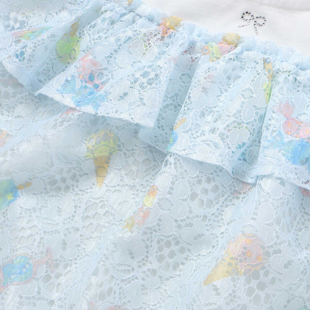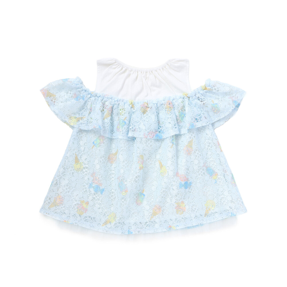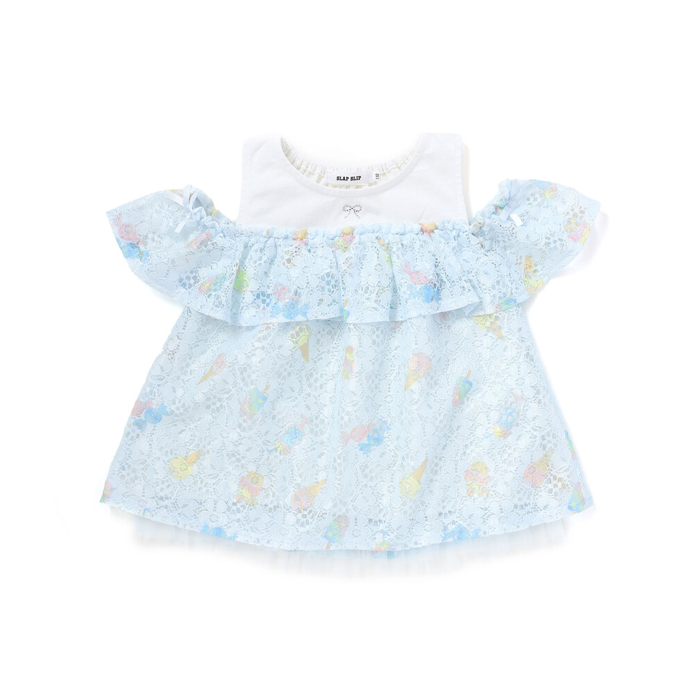 花柄レースの上に、ころんと可愛いアイスモチーフを散りばめた、夢のあるデザインの女の子用チュニック。