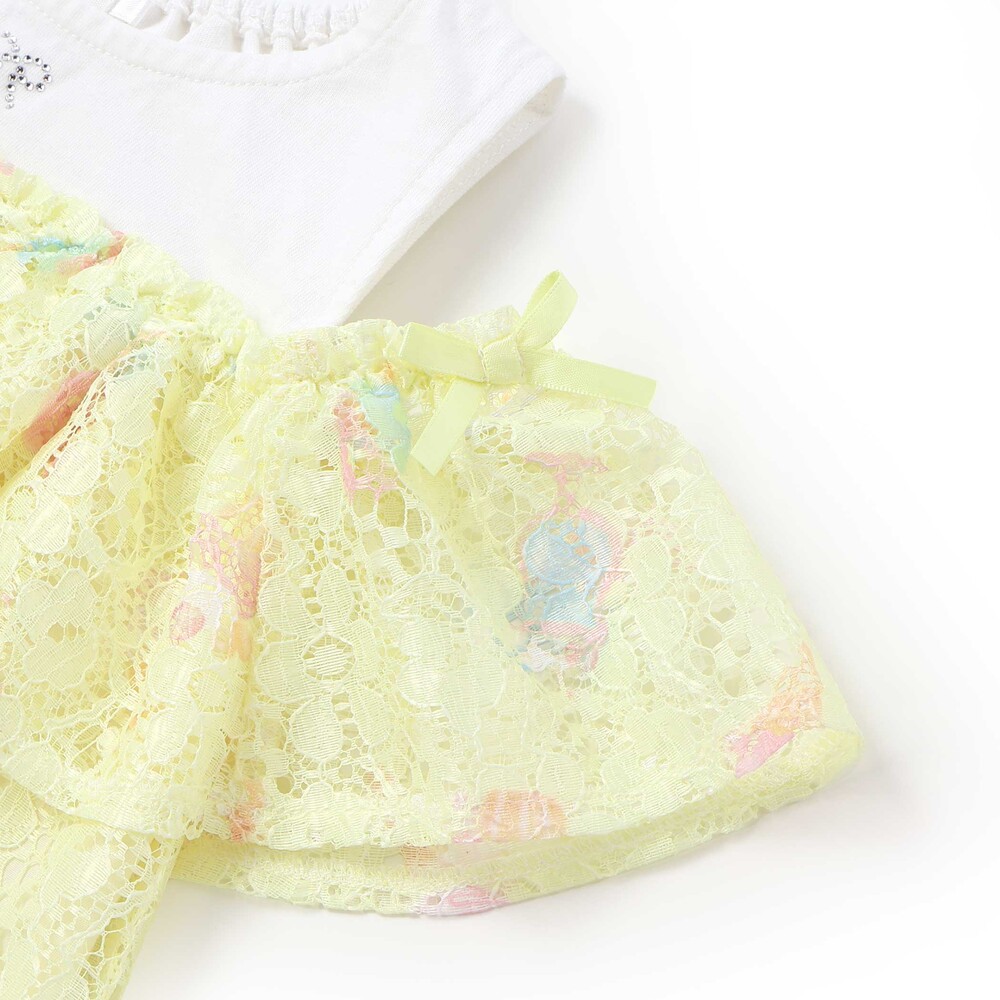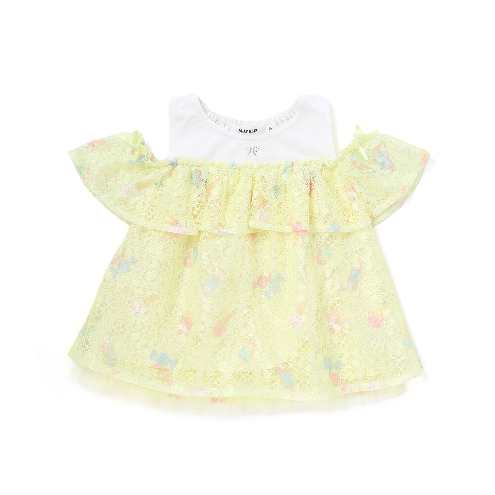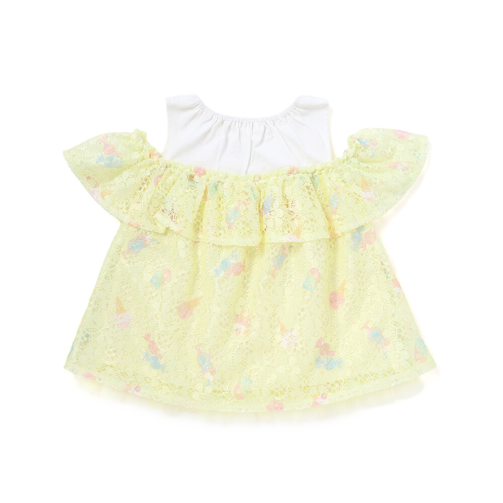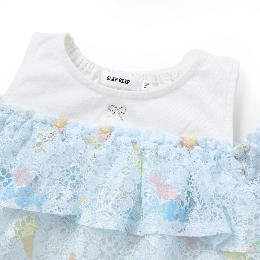 花柄レースの上に、ころんと可愛いアイスモチーフを散りばめた、夢のあるデザインの女の子用チュニック。