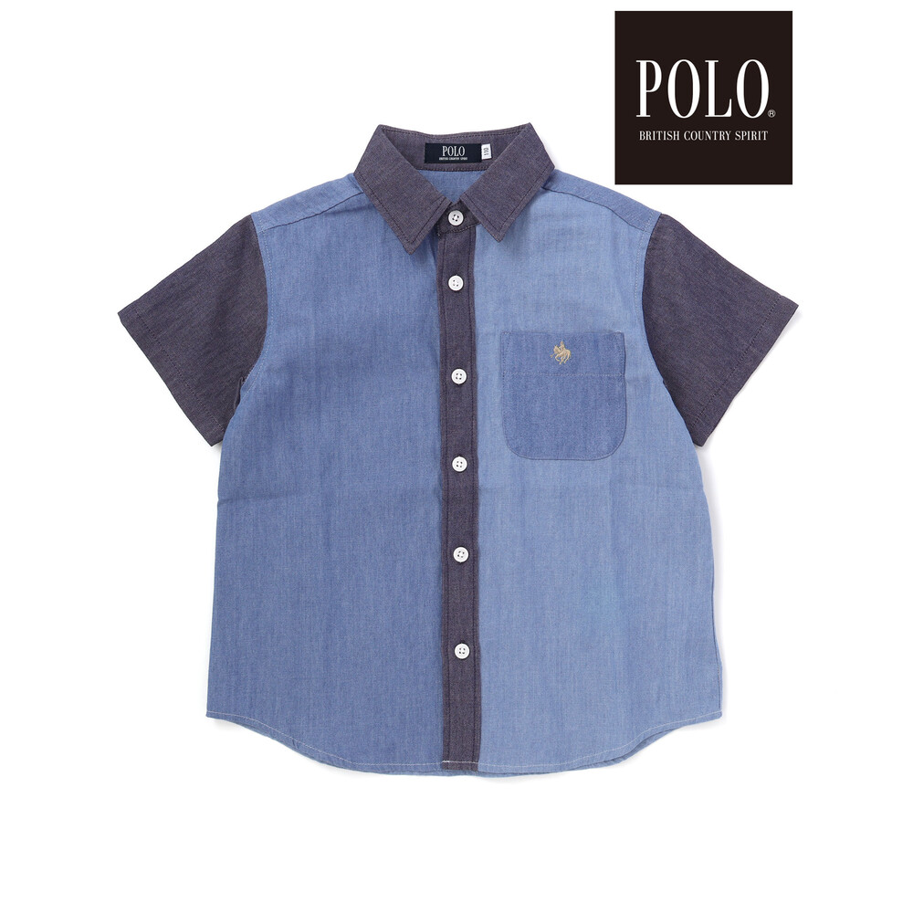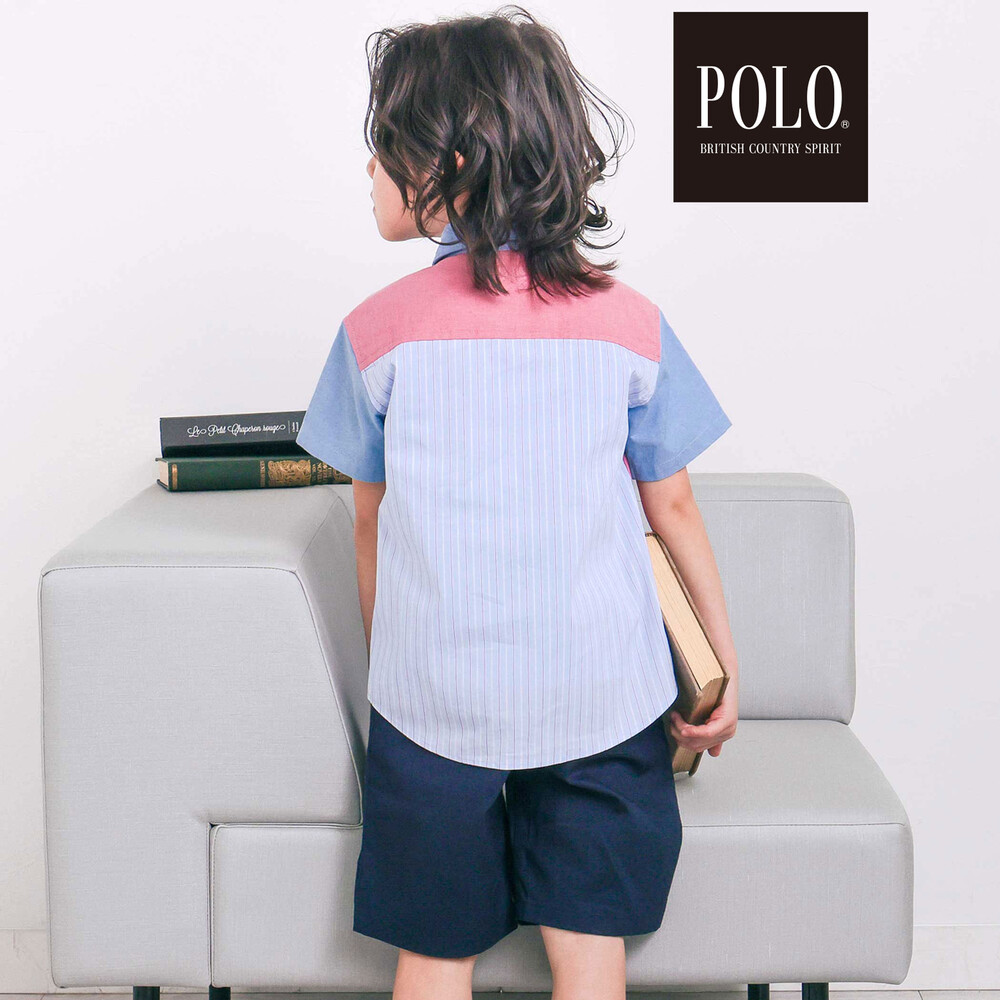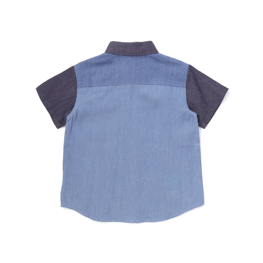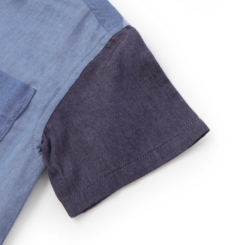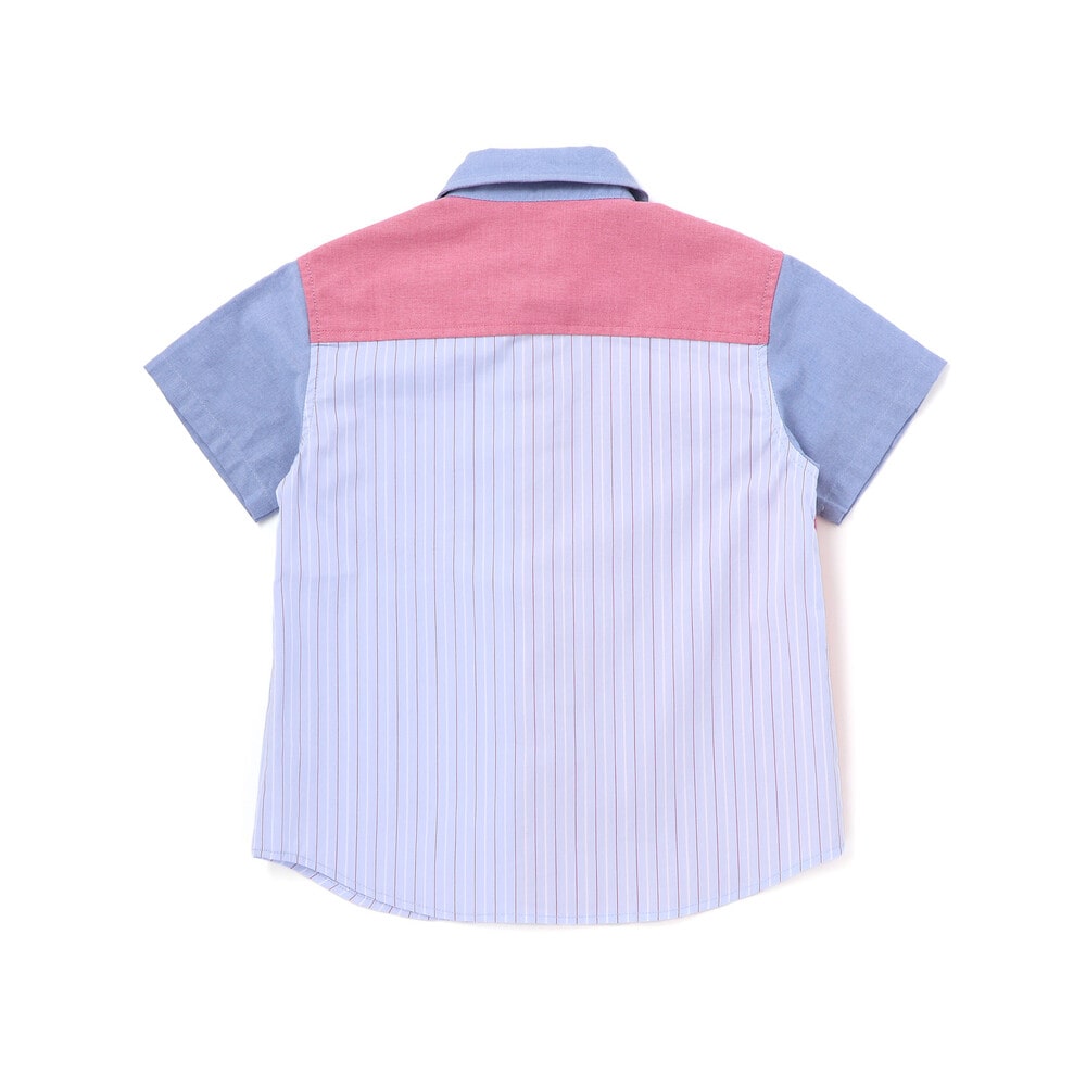 カラー切り替えデザインが目を引く、男の子用半袖シャツ。