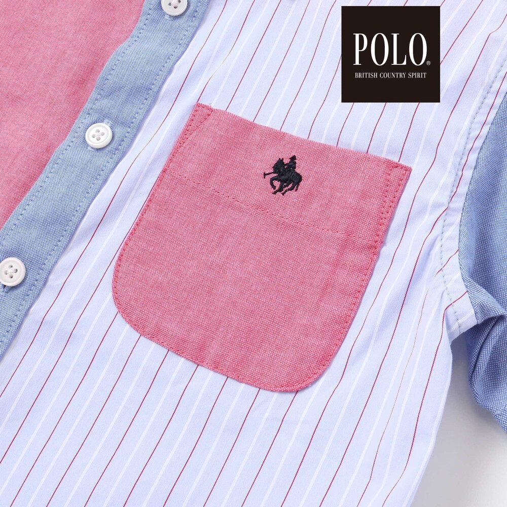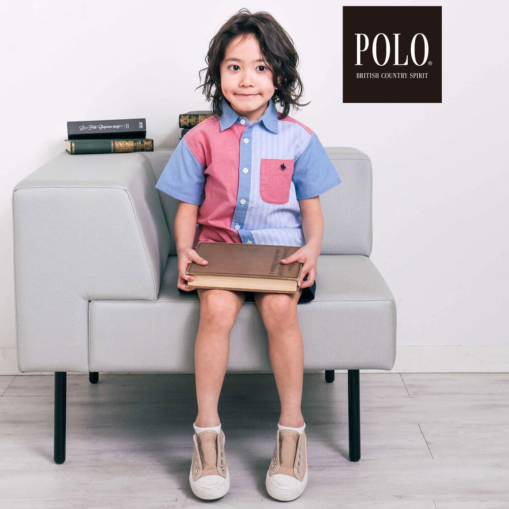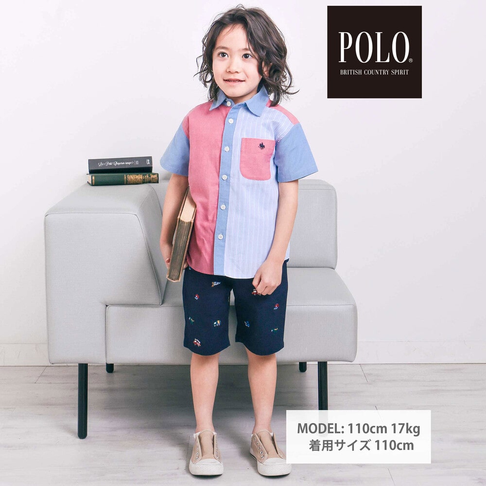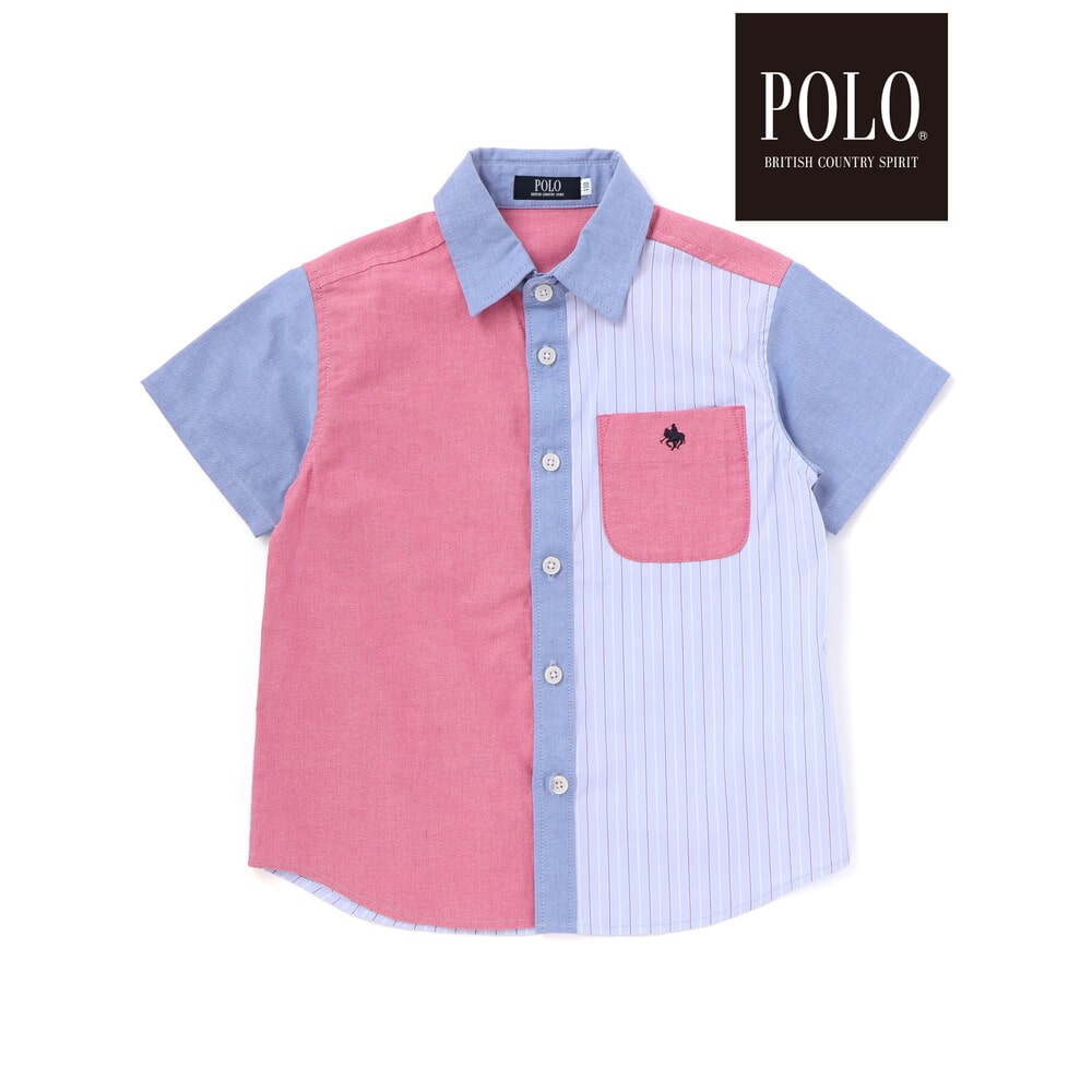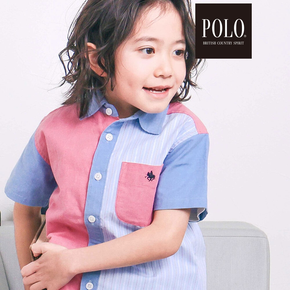 カラー切り替えデザインが目を引く、男の子用半袖シャツ。