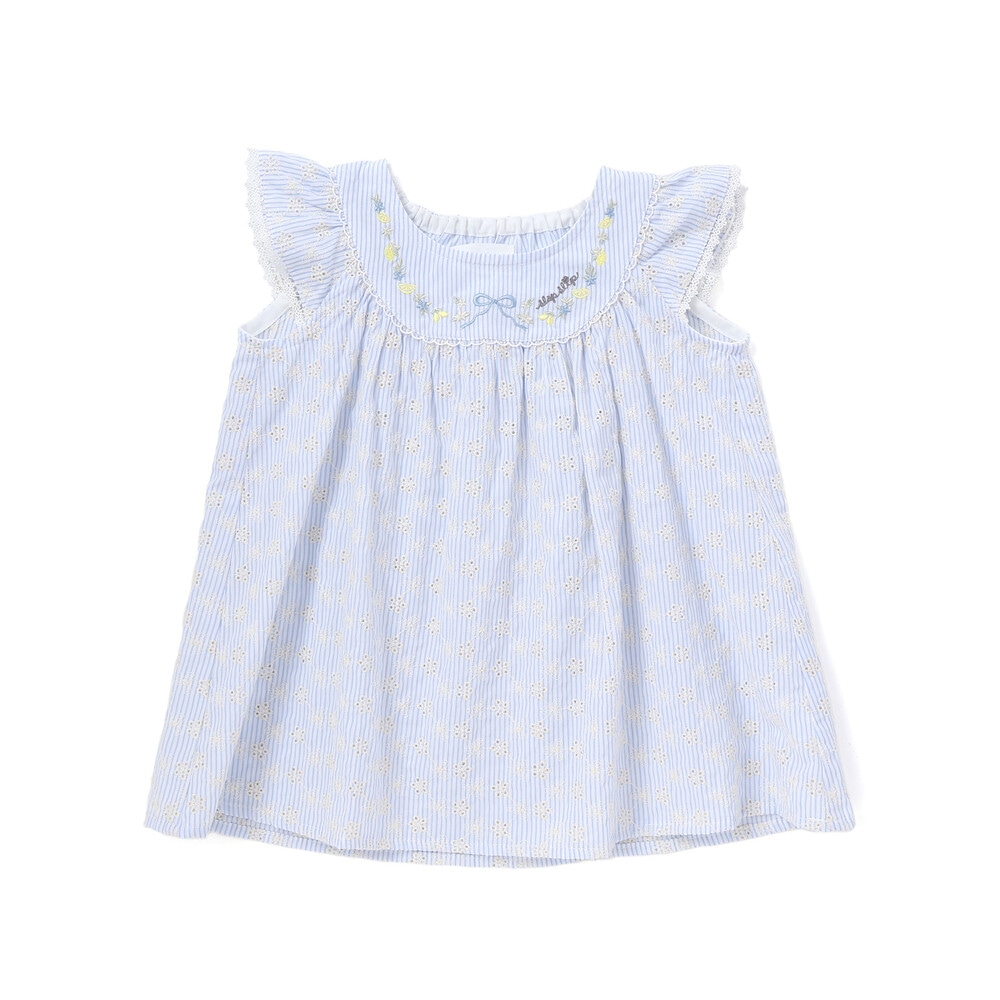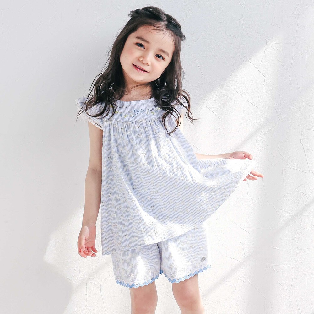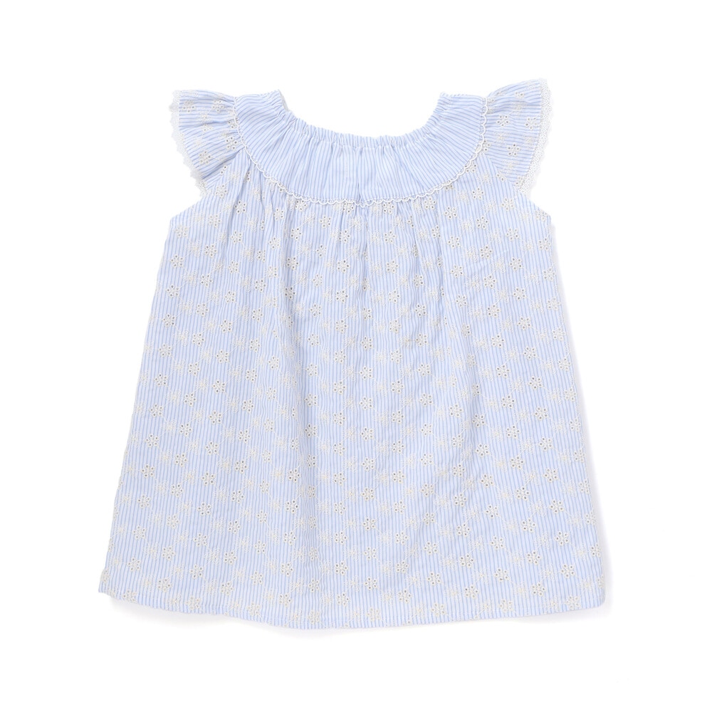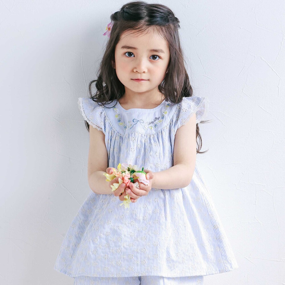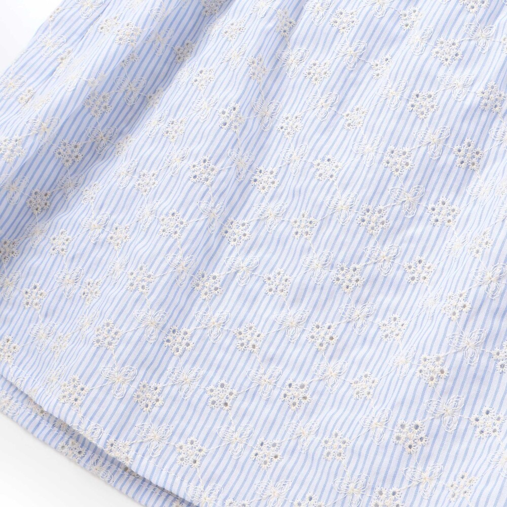 ブルー系は爽やかなストライプ柄に、透け感のあるお花レースを合わせ、軽やかで涼しげな印象です。