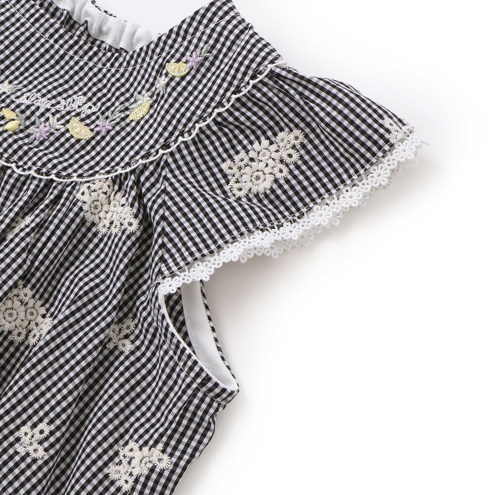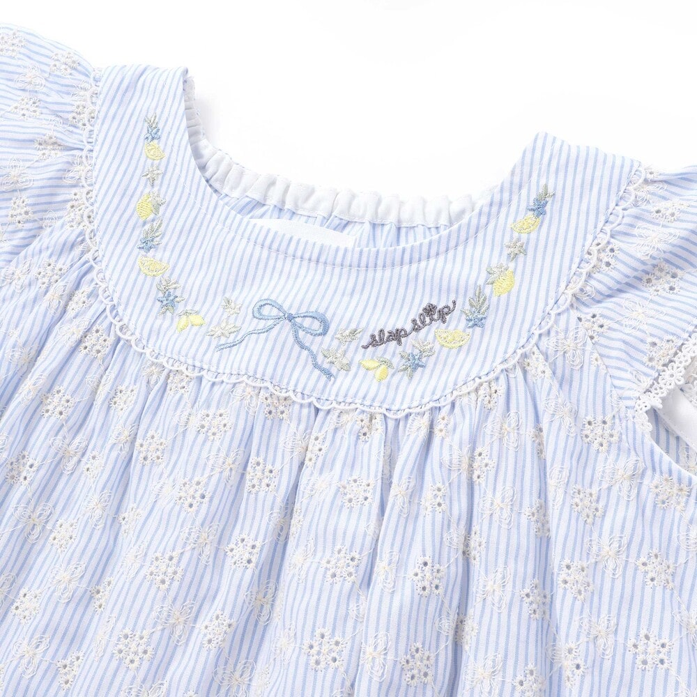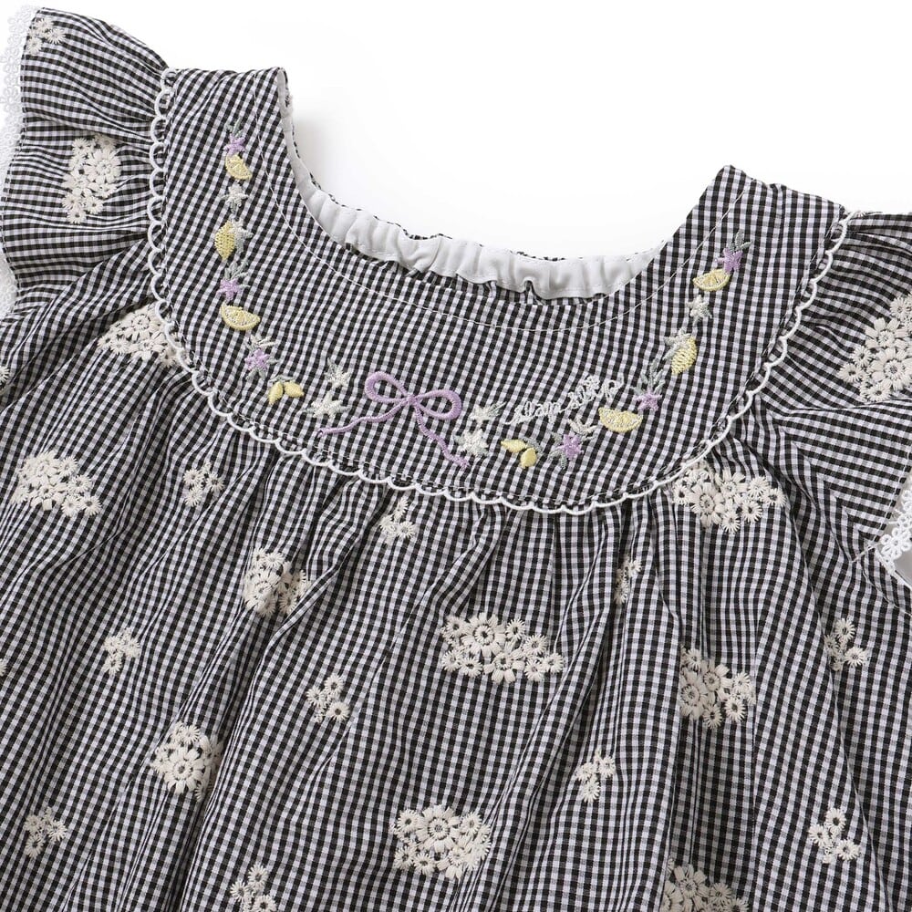 胸元にはレモンやお花、リボンの刺しゅうを入れ、さりげなくときめくアクセントにしています。