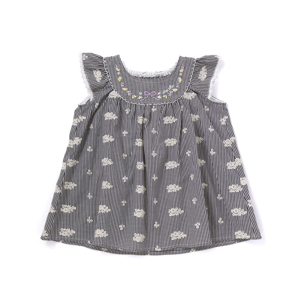 ストライプやチェック柄に、花模様のレースを散りばめた華やかな女の子用チュニック。
