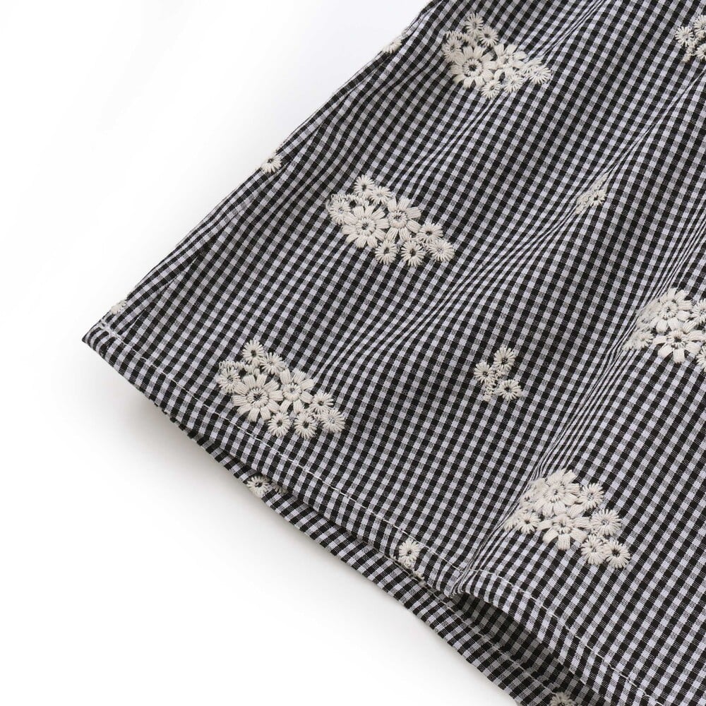 | 素材 | 【ブラック系】【本体】 (基布)綿100% (刺繍糸)綿100% (部分使)ポリエステル80% 綿20% (ヨーク)綿100% (レース)ポリエステル100%,【ブルー系】【本体】 (基布)綿80% ポリエステル20% (刺繍糸)綿100% (部分使)ポリエステル80% 綿20% (ヨーク)綿80% ポリエステル20% (レース)ポリエステル100% |