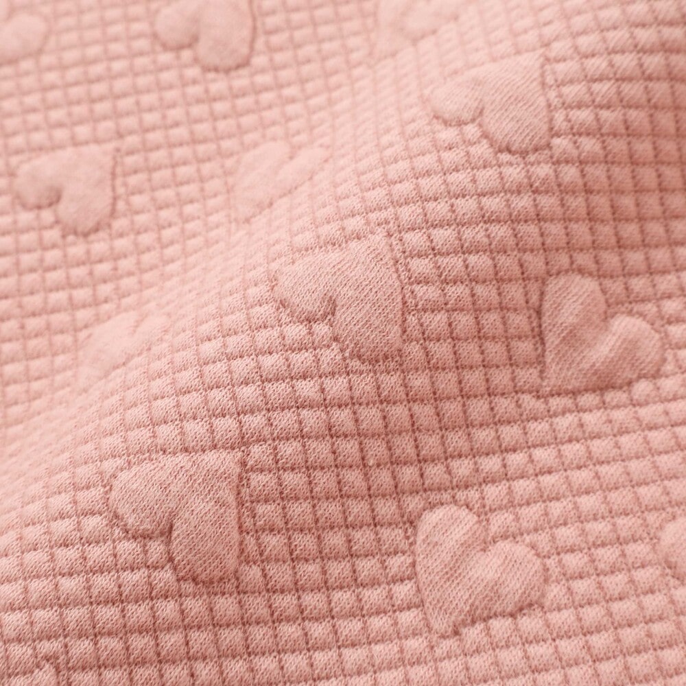 身生地には触って楽しいポコポコのハート柄を使用。