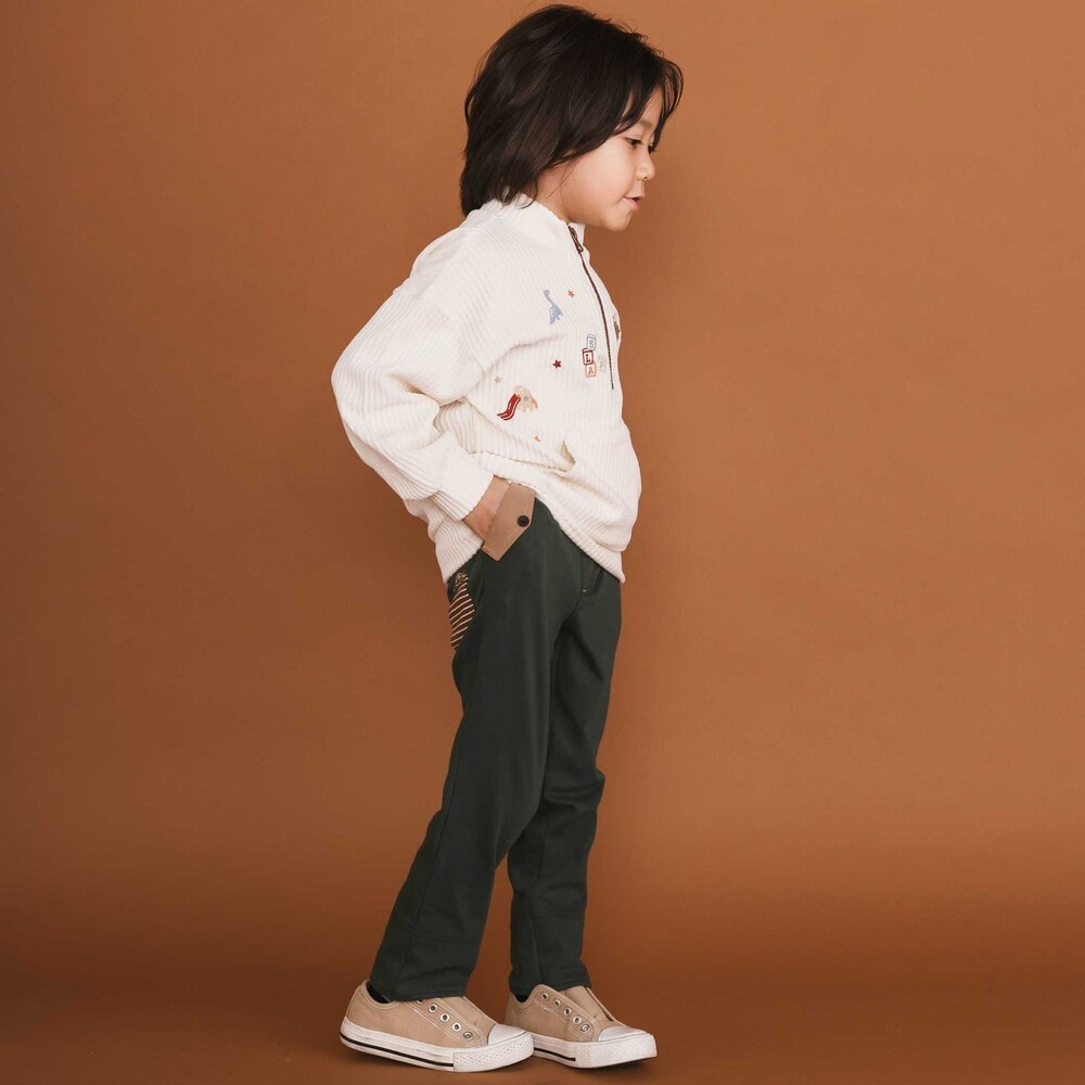 動きやすく着心地のいい素材とシルエットで秋の落ち葉の中や秋風吹く中でも思いっきり遊んで冒険しよう。