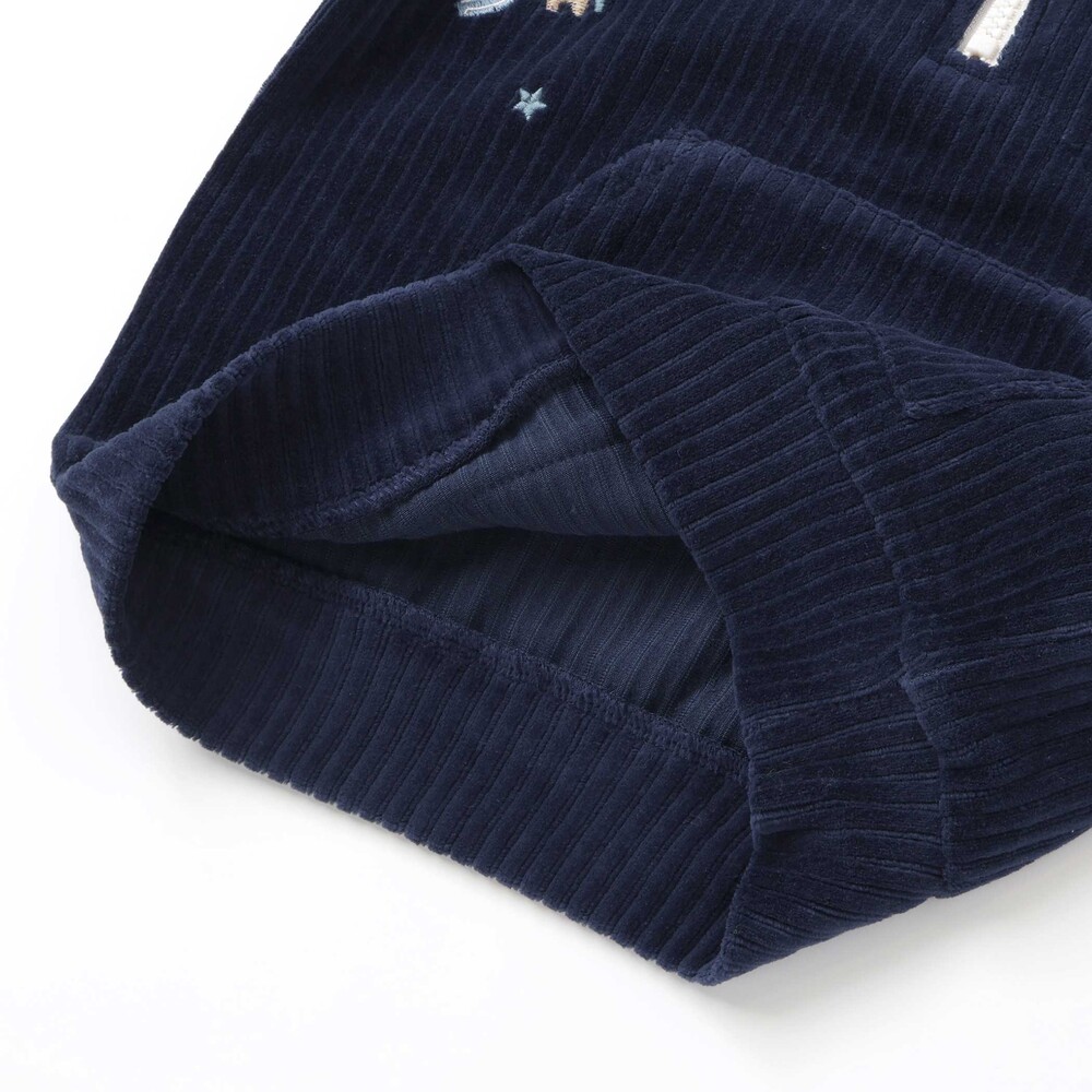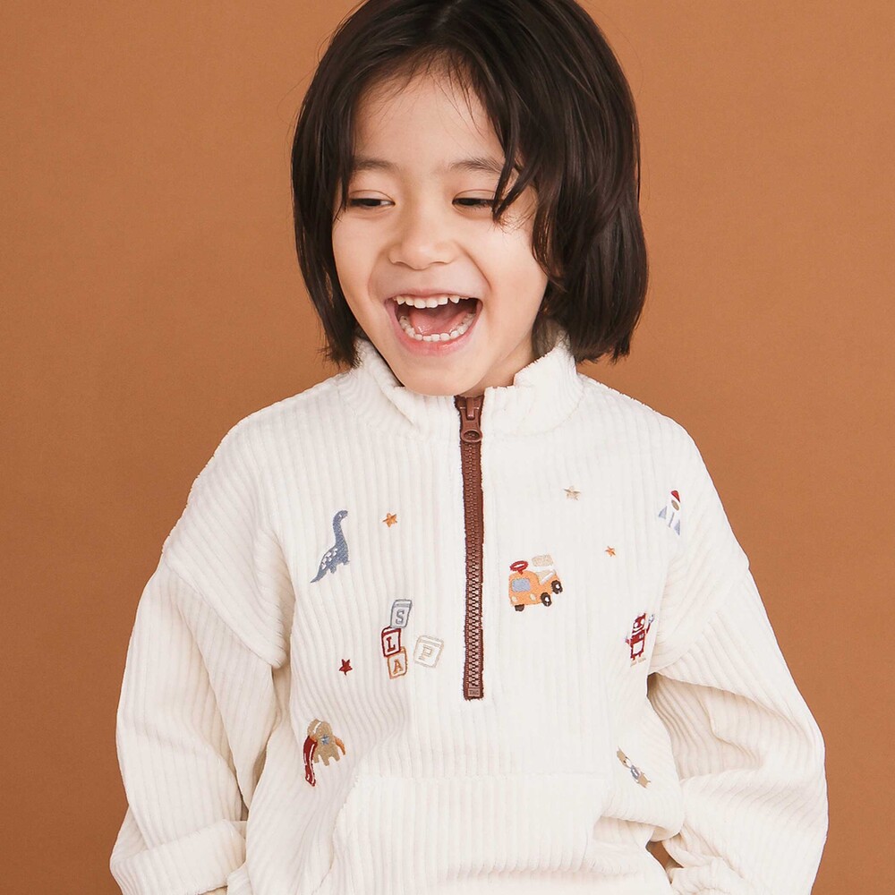 首元はハーフジップ仕様になっているから、お着替えが簡単で温度調節もしやすいデザインです。