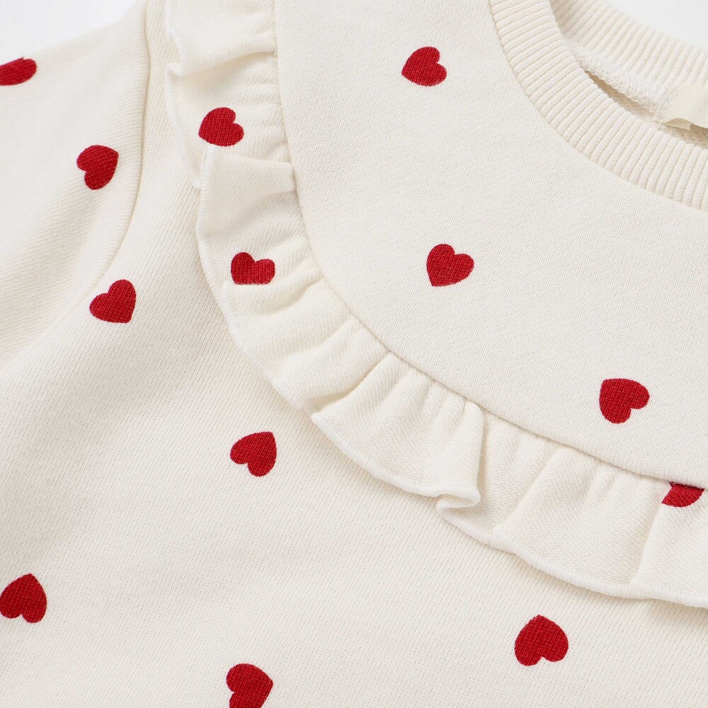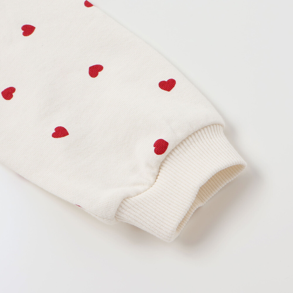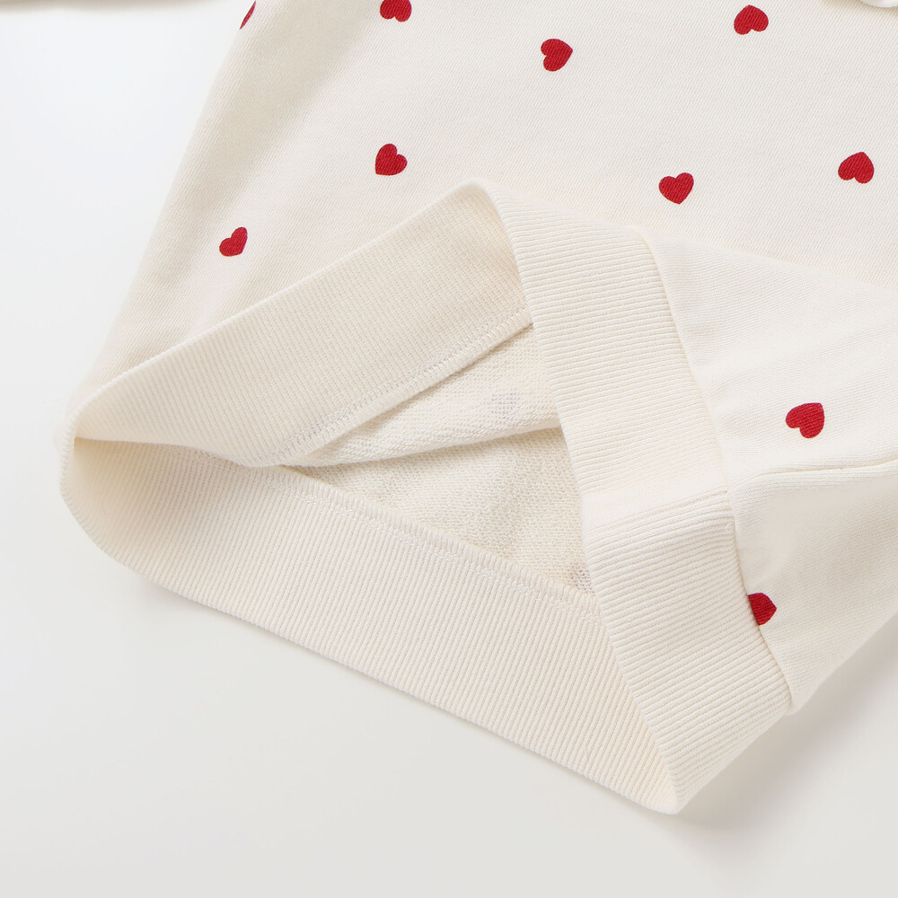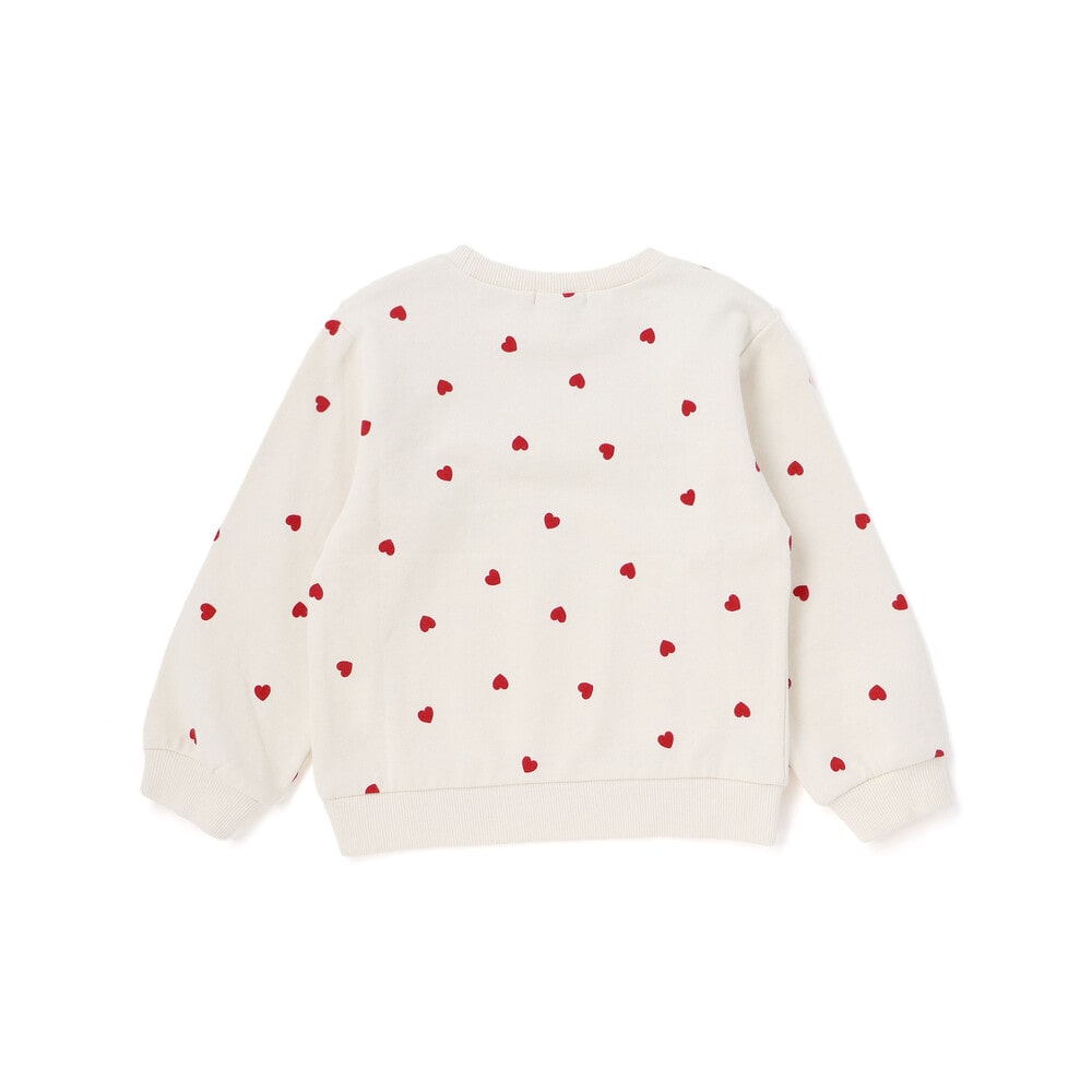 ハートの総柄が可愛らしい、女の子用長袖トレーナー。