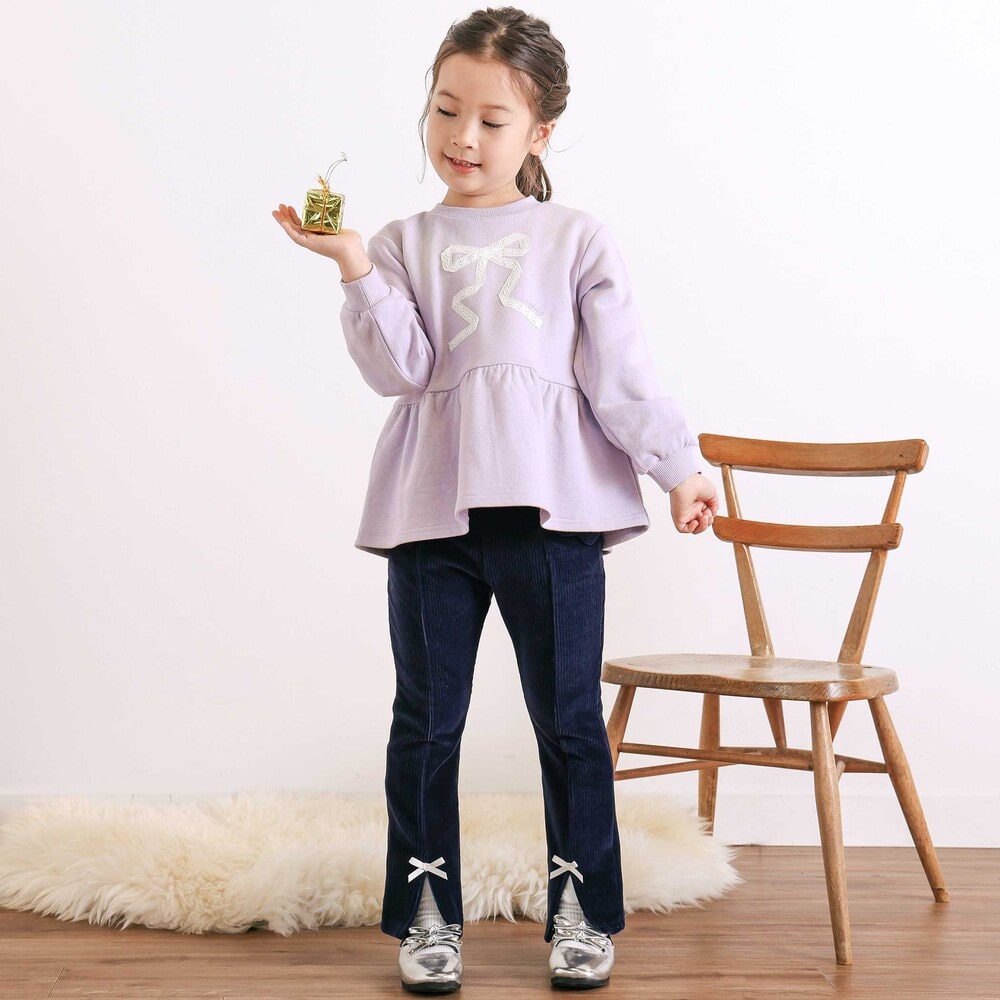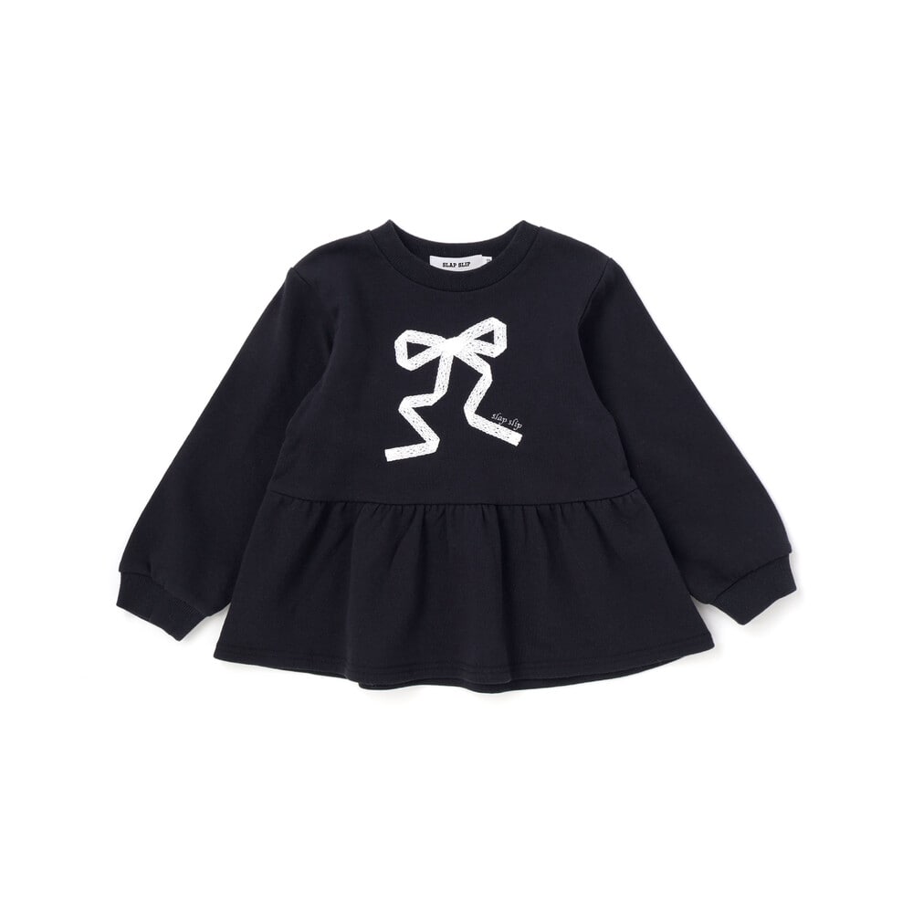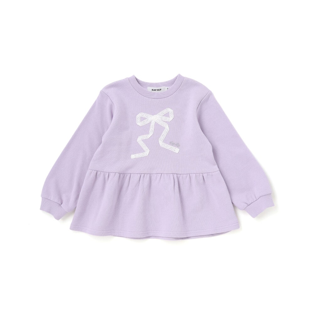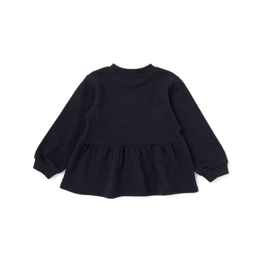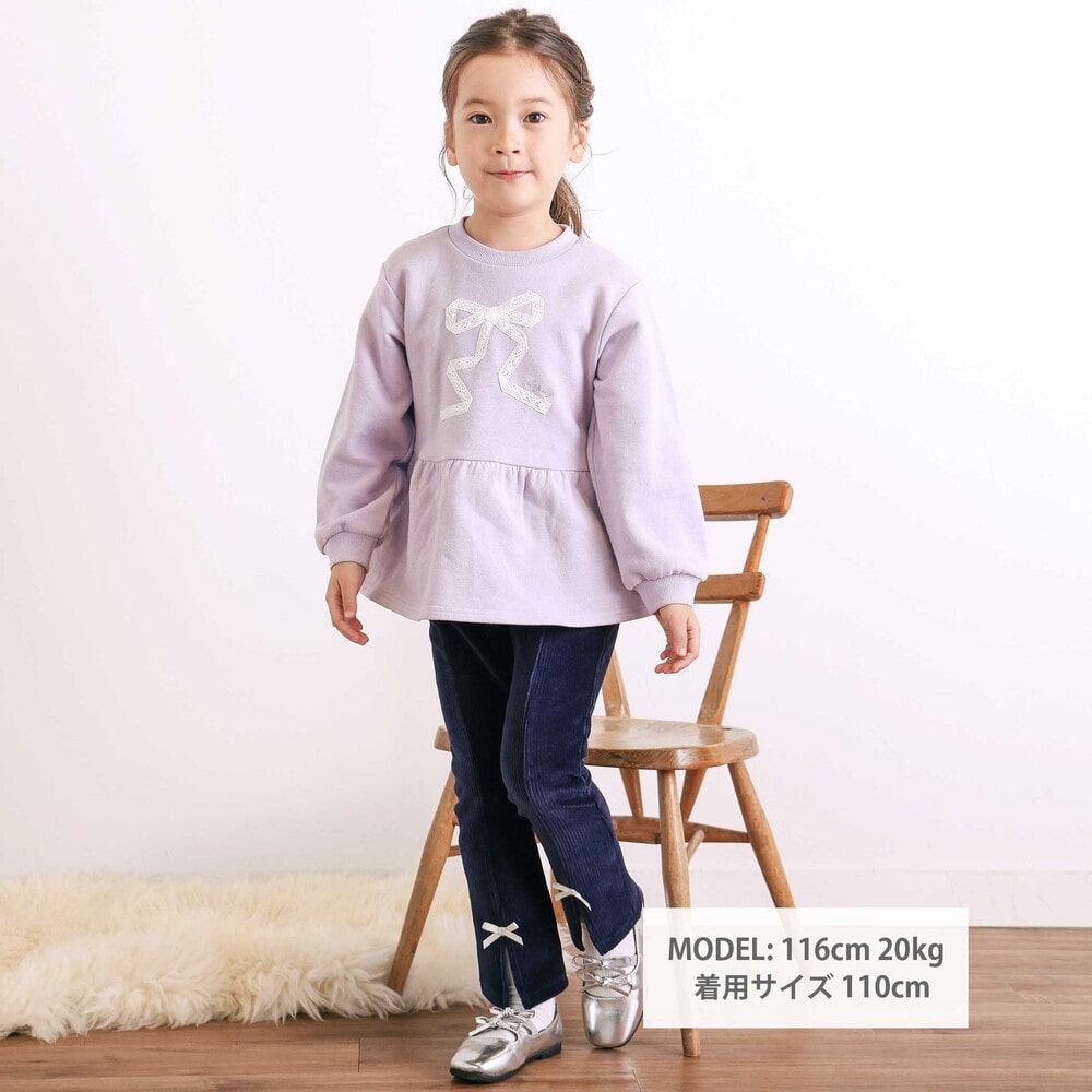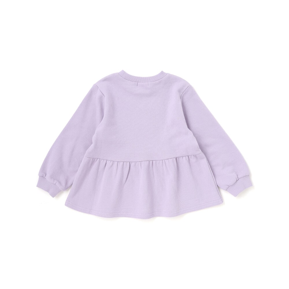 裾にかけてがふんわりと広がるペプラムデザインが女の子らしい、長袖トレーナー。