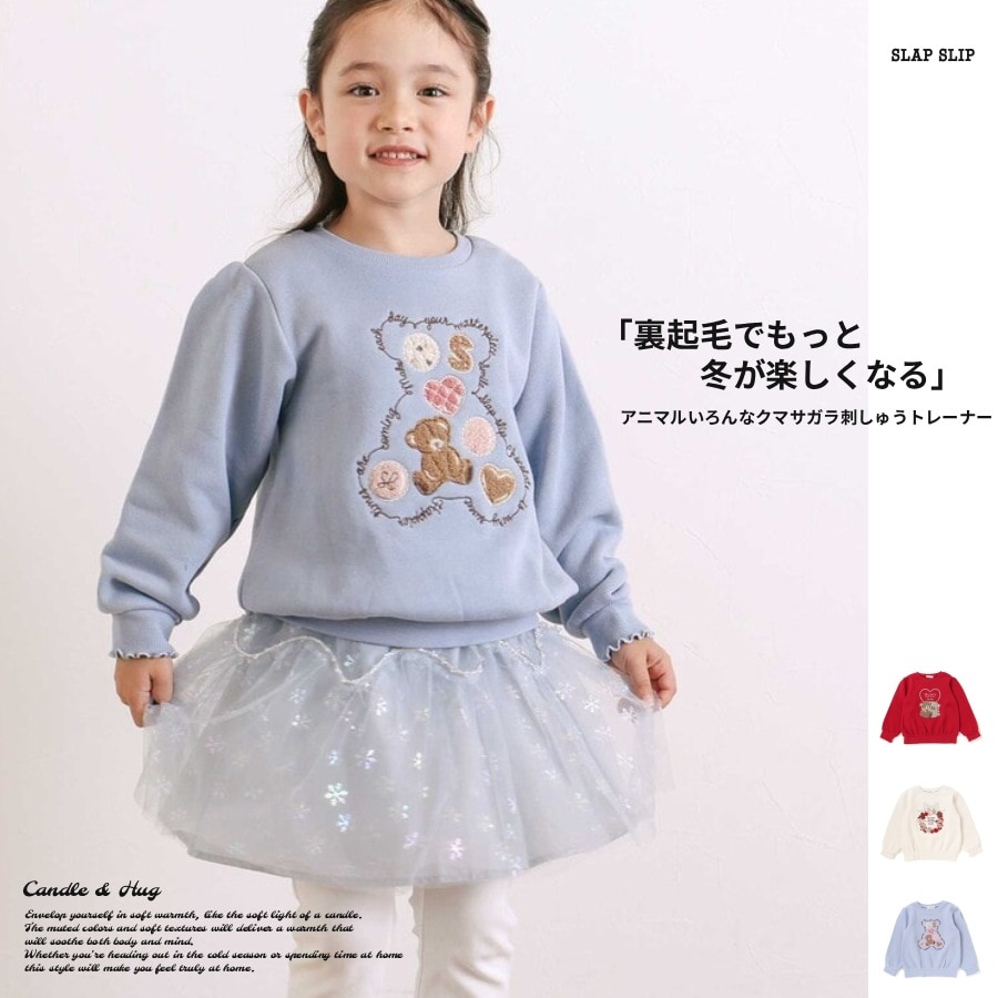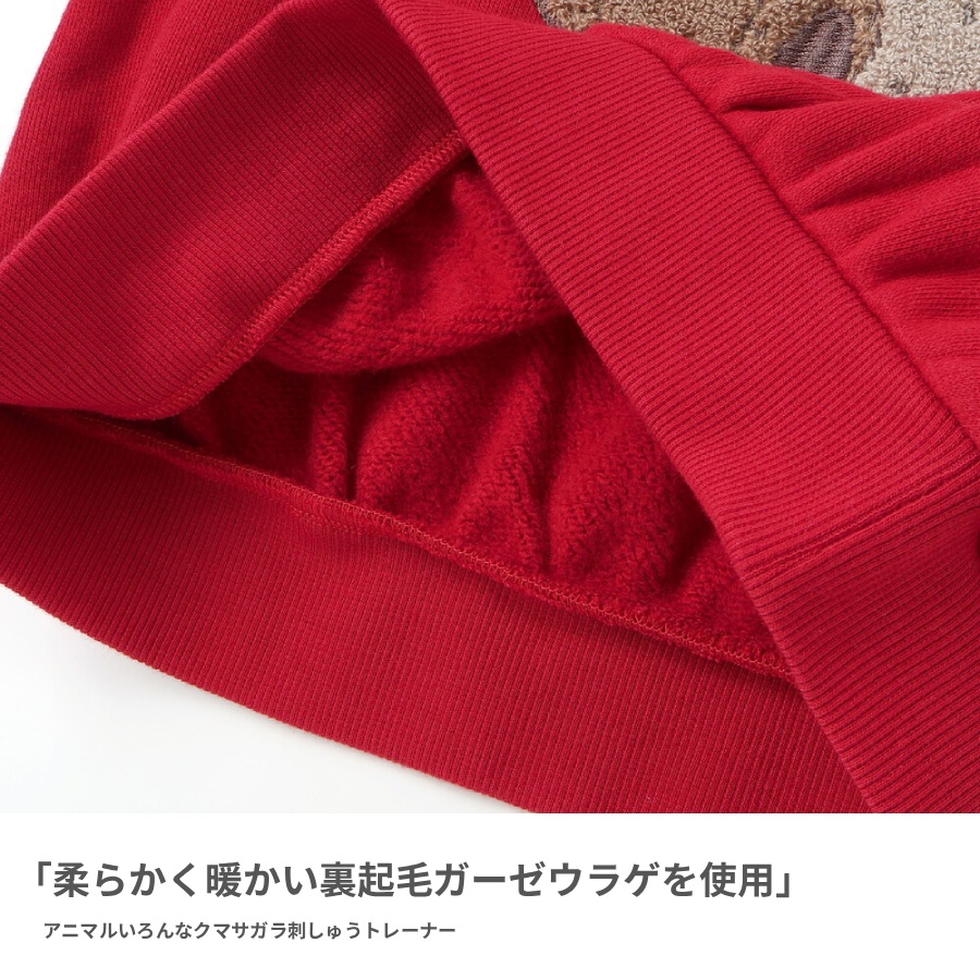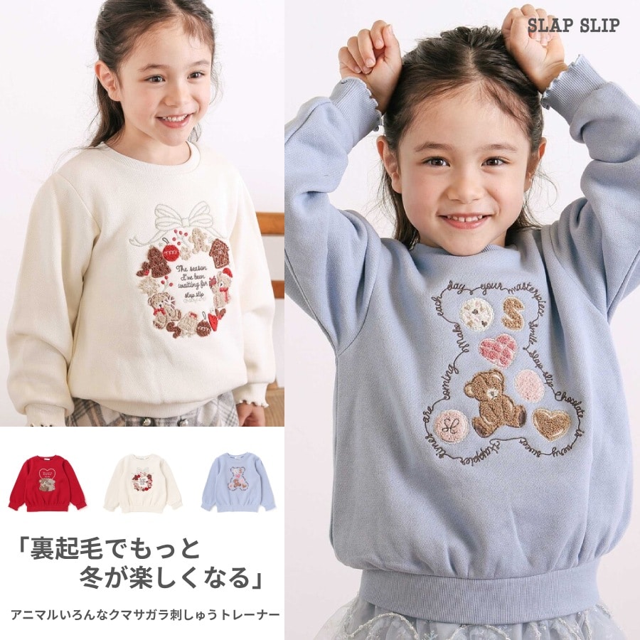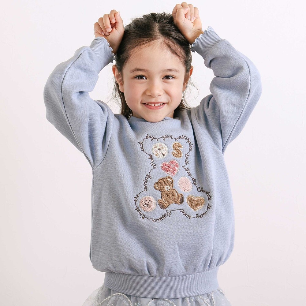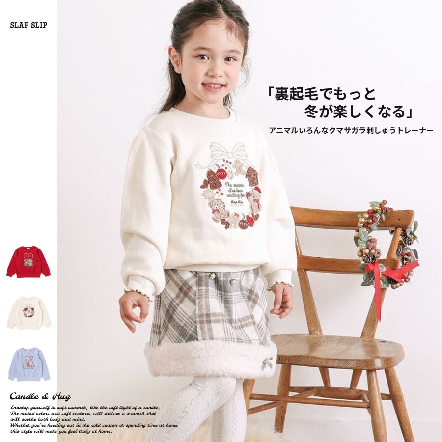柔らかく暖かい裏起毛ガーゼウラゲを使用した、女の子用トレーナー。