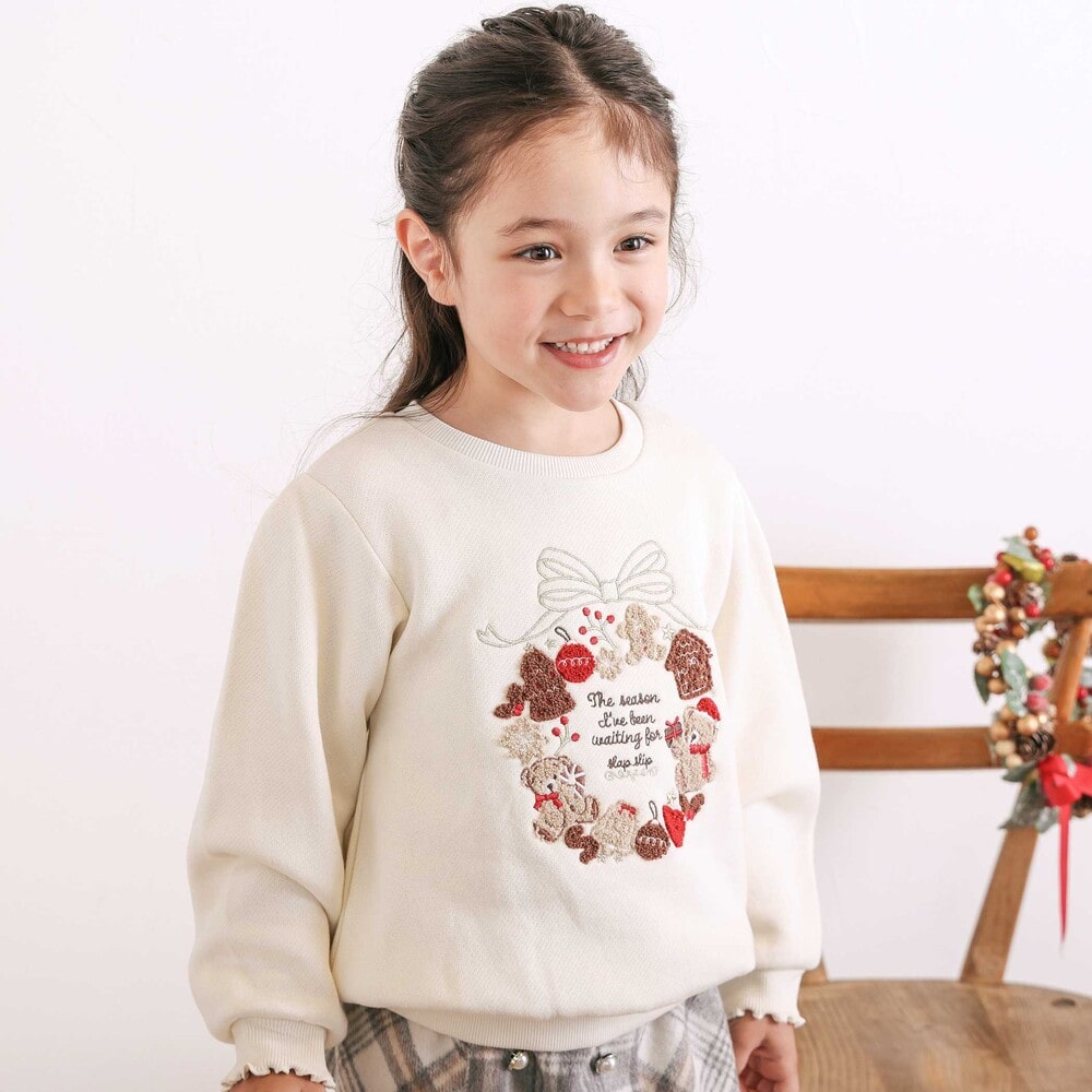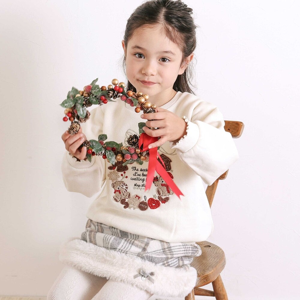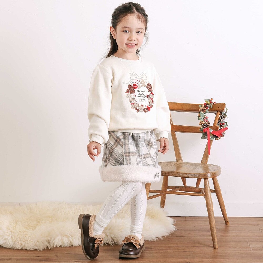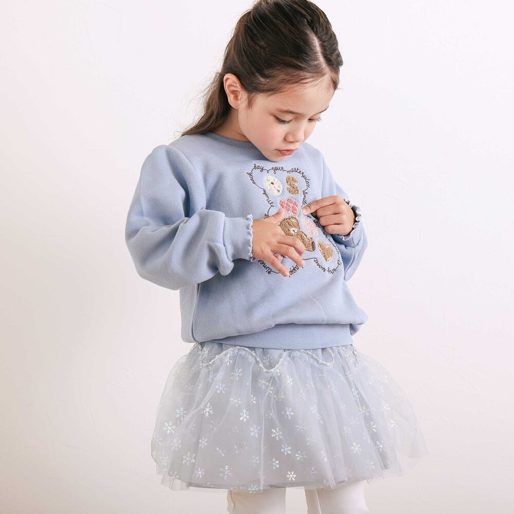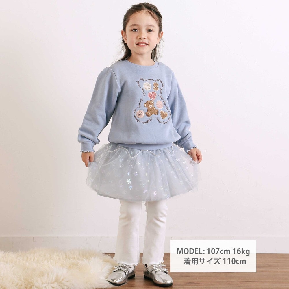 柔らかく暖かい裏起毛ガーゼウラゲを使用した、女の子用トレーナー。