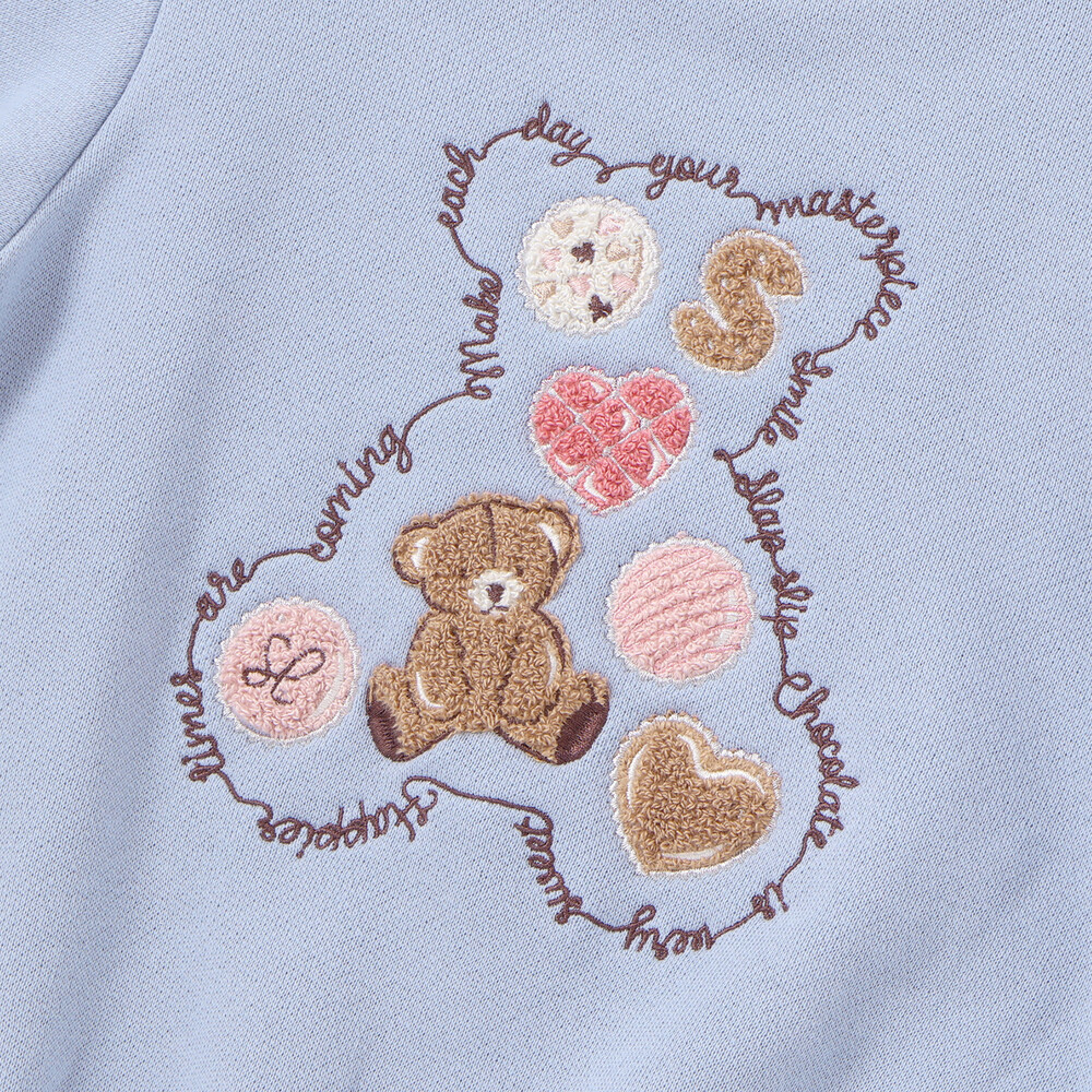ブルー:大きなクマさんのフレームの中には色とりどりのおいしそうなスイーツがガーリー