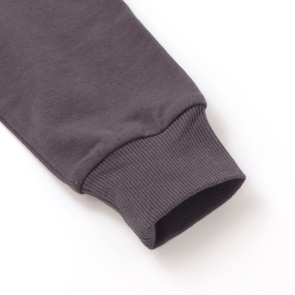 袖口と裾はリブ仕様で動きやすく、ラグランスリーブで肩の動きも快適。