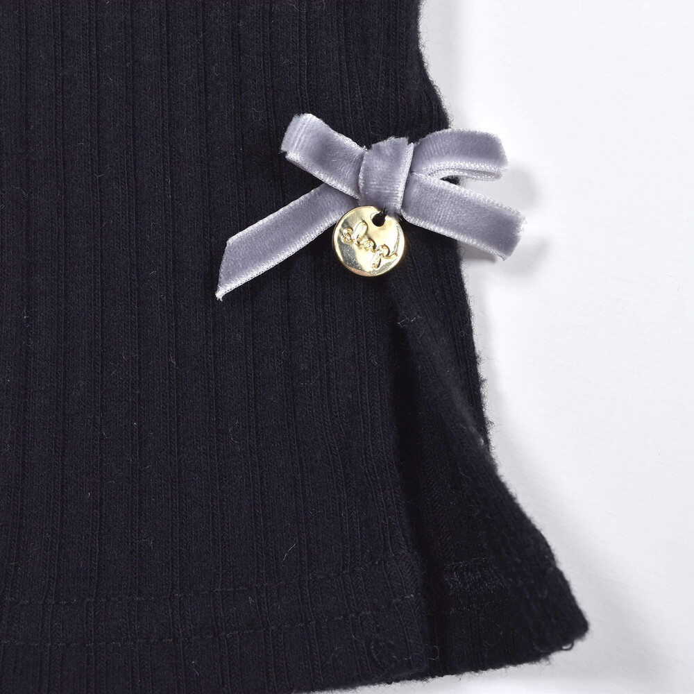 裾につけた配色リボンとゴールドのチャーム(左裾のみ)がポイント。
