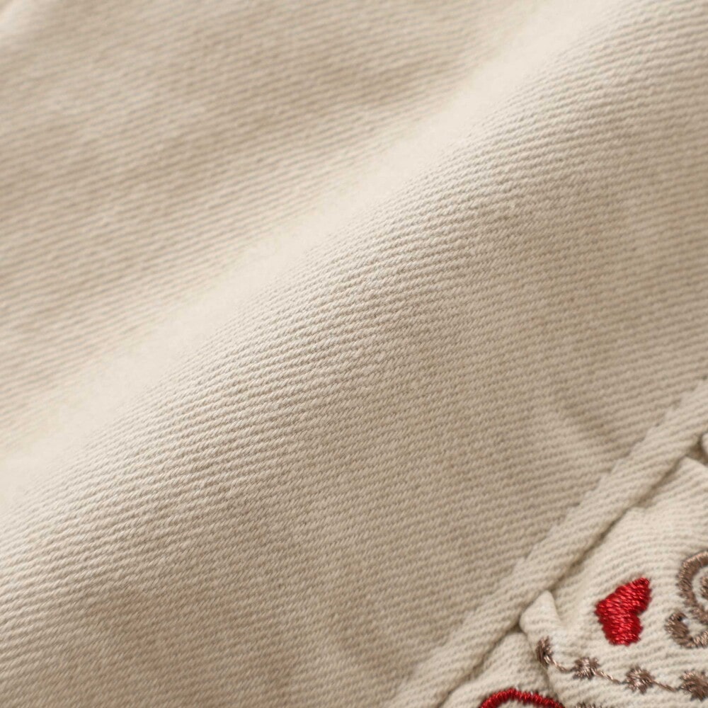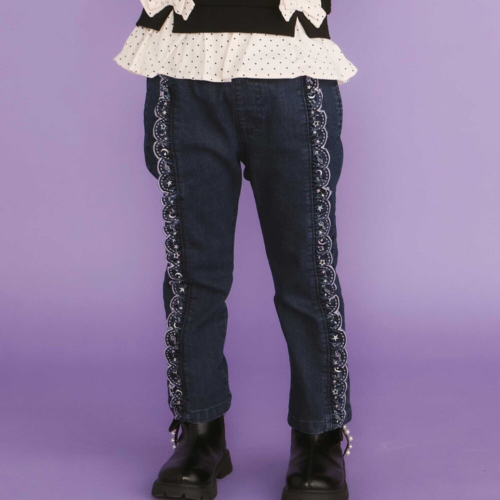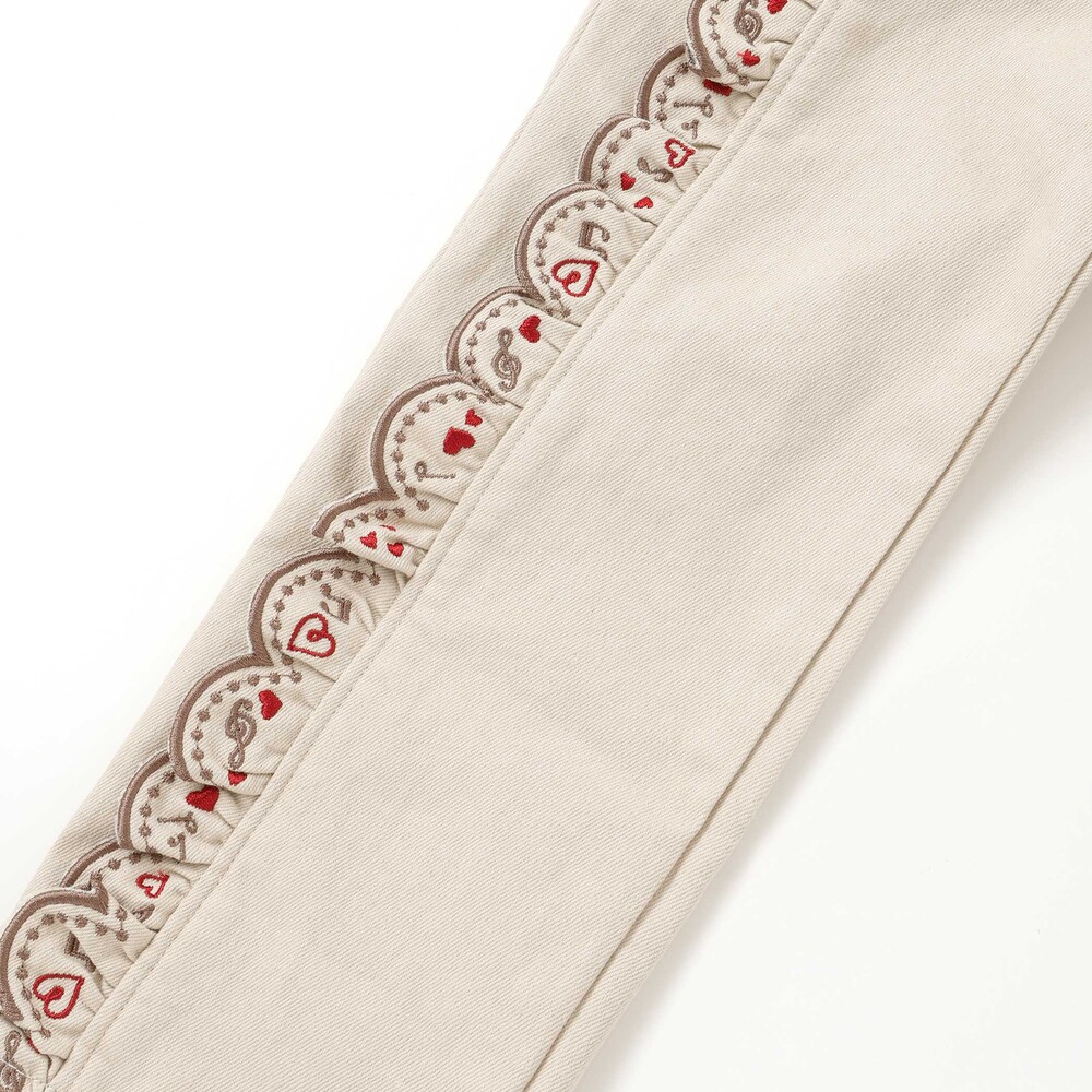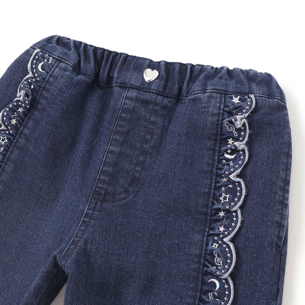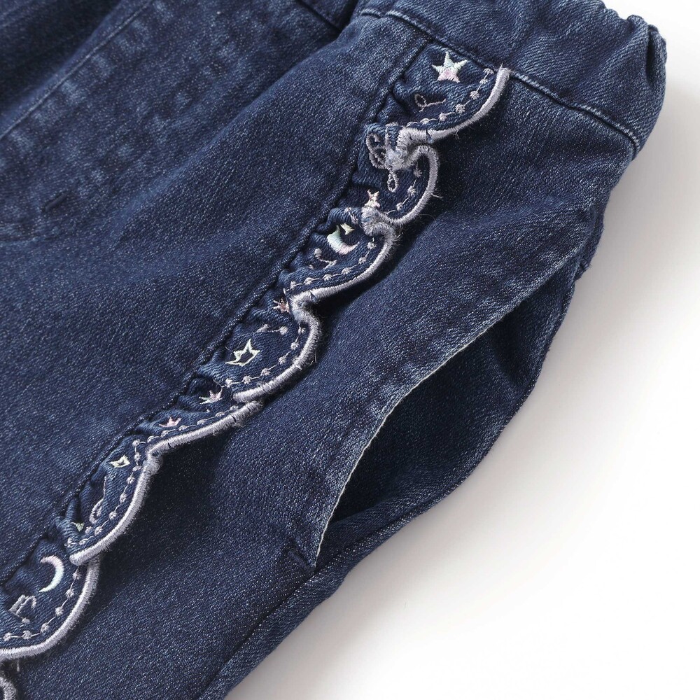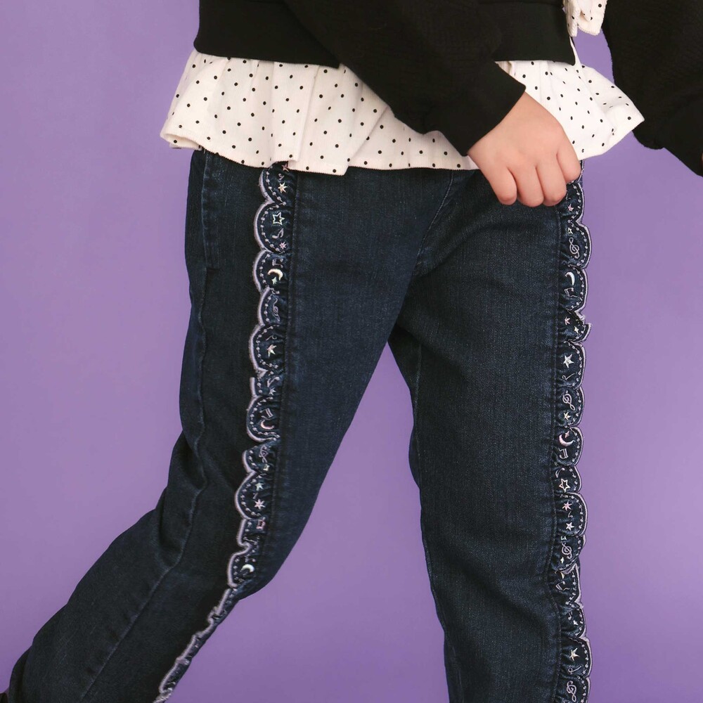 切り替えにスカラップのフリルをあしらい、カラーごとに異なる刺しゅうがちりばめられた、女の子心をくすぐるデザインです。