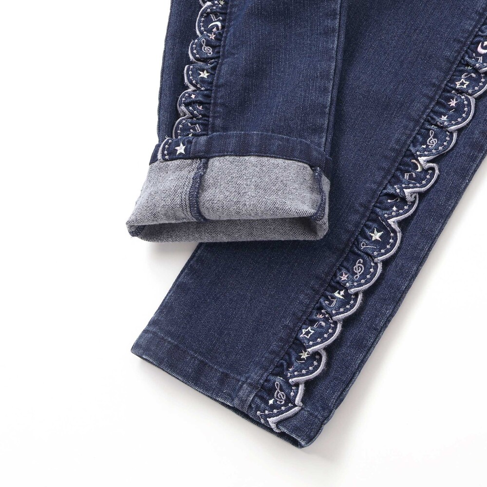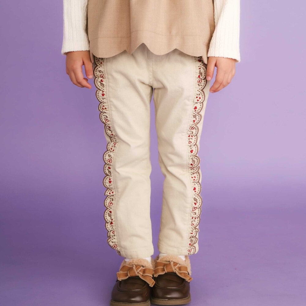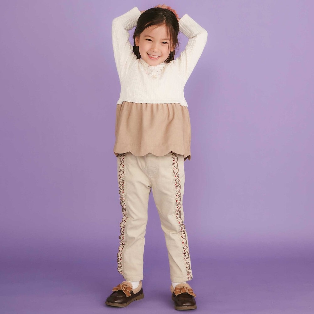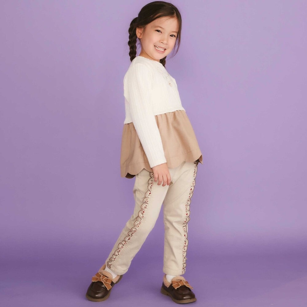 カラーごとに異なる素材で楽しめる、女の子用のロングパンツ。