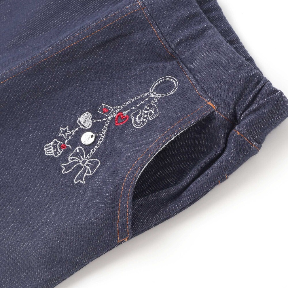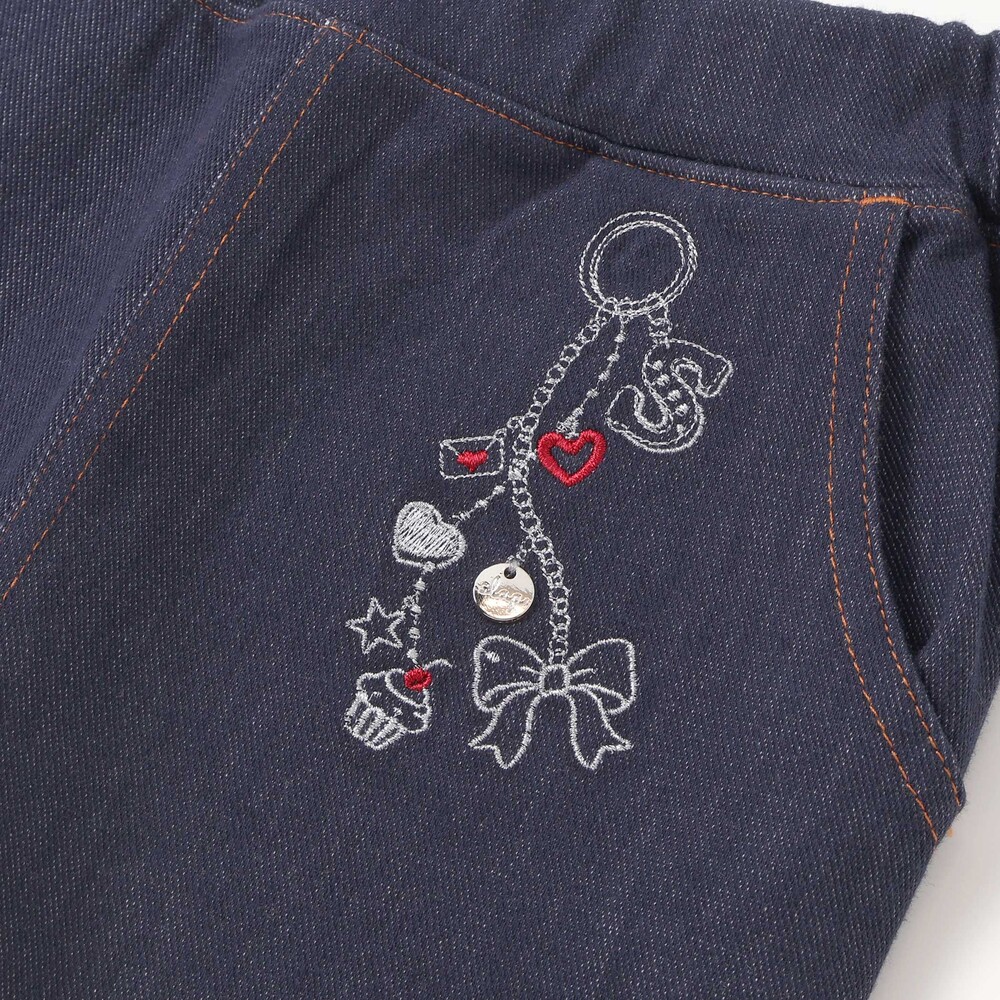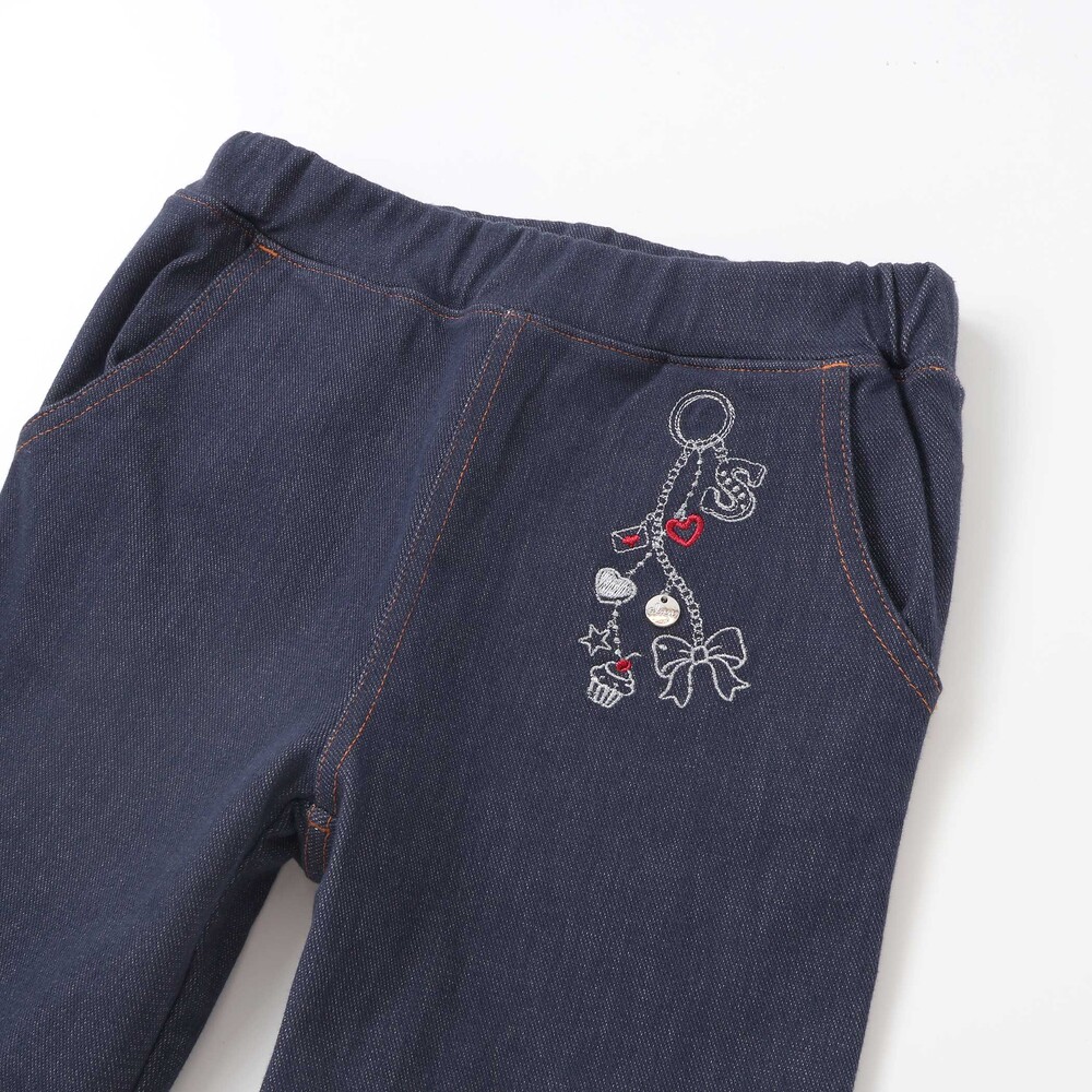 フロントの腰ポケット付近には、ハート・リボン・カップケーキをモチーフにしたキーチャーム風の刺しゅうをオン。