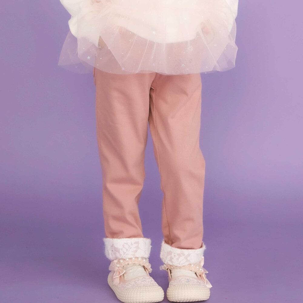 ガーリーなポイントがたっぷり詰まった女の子用ロングパンツ。