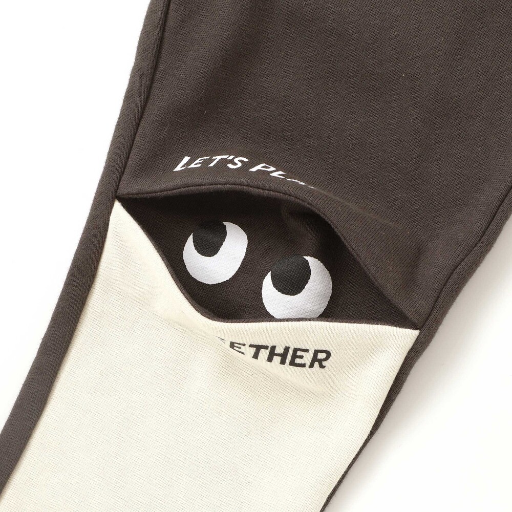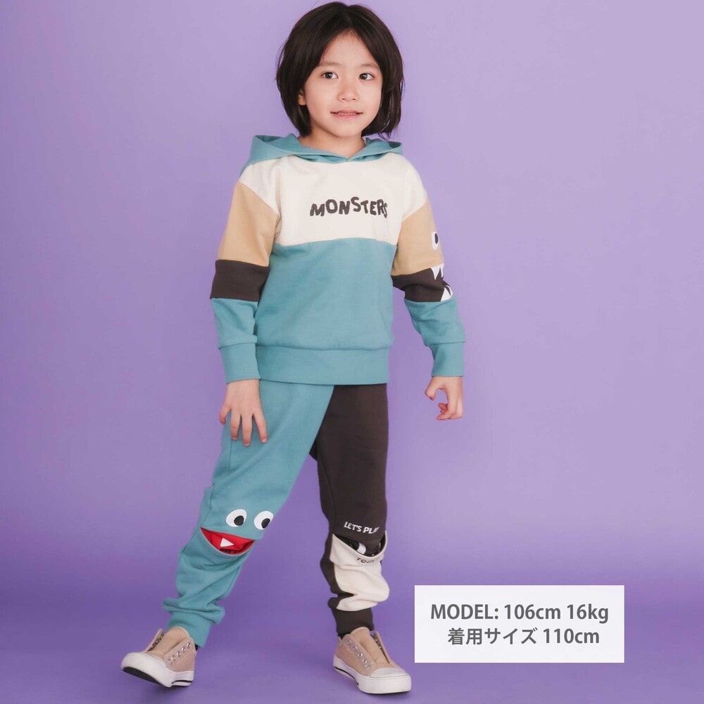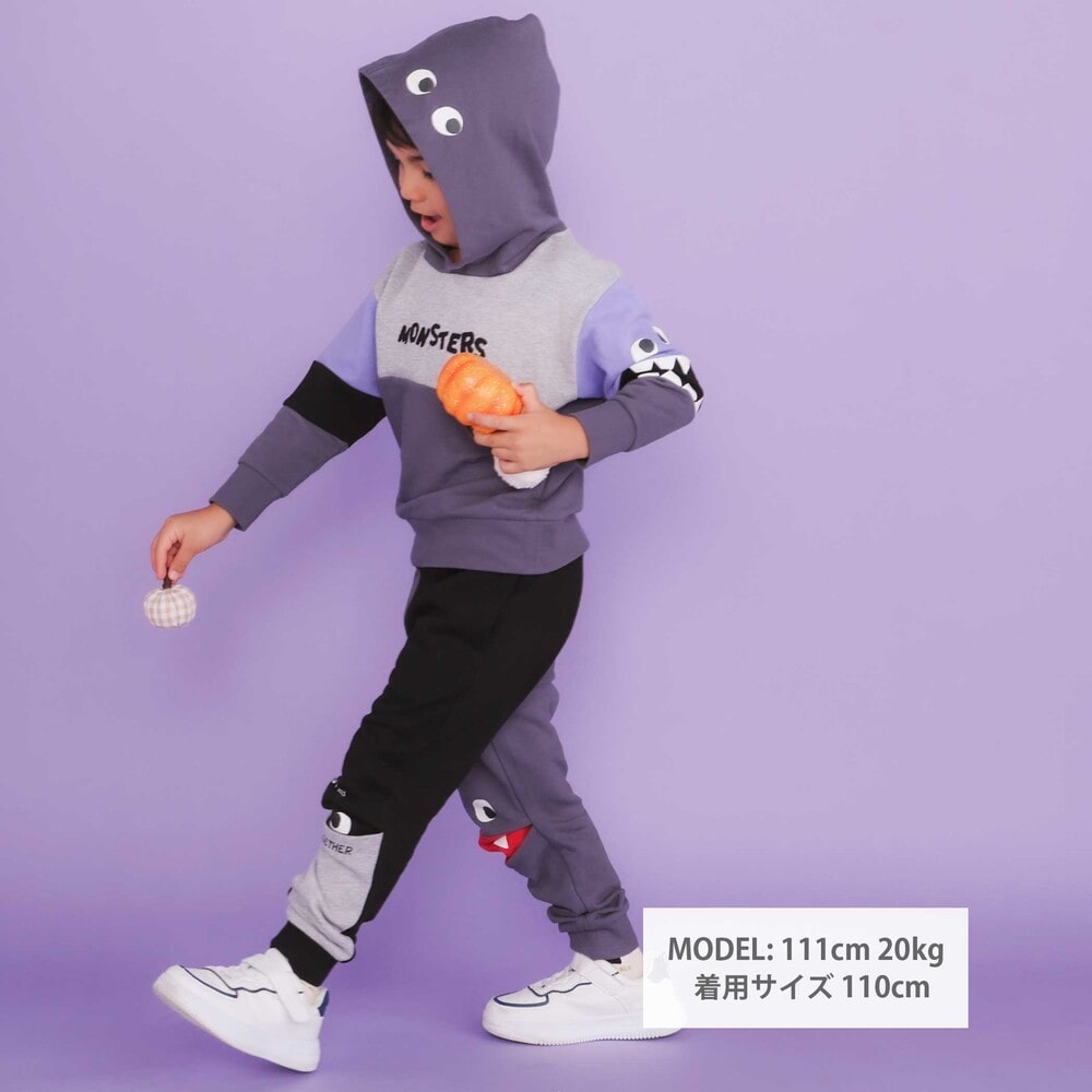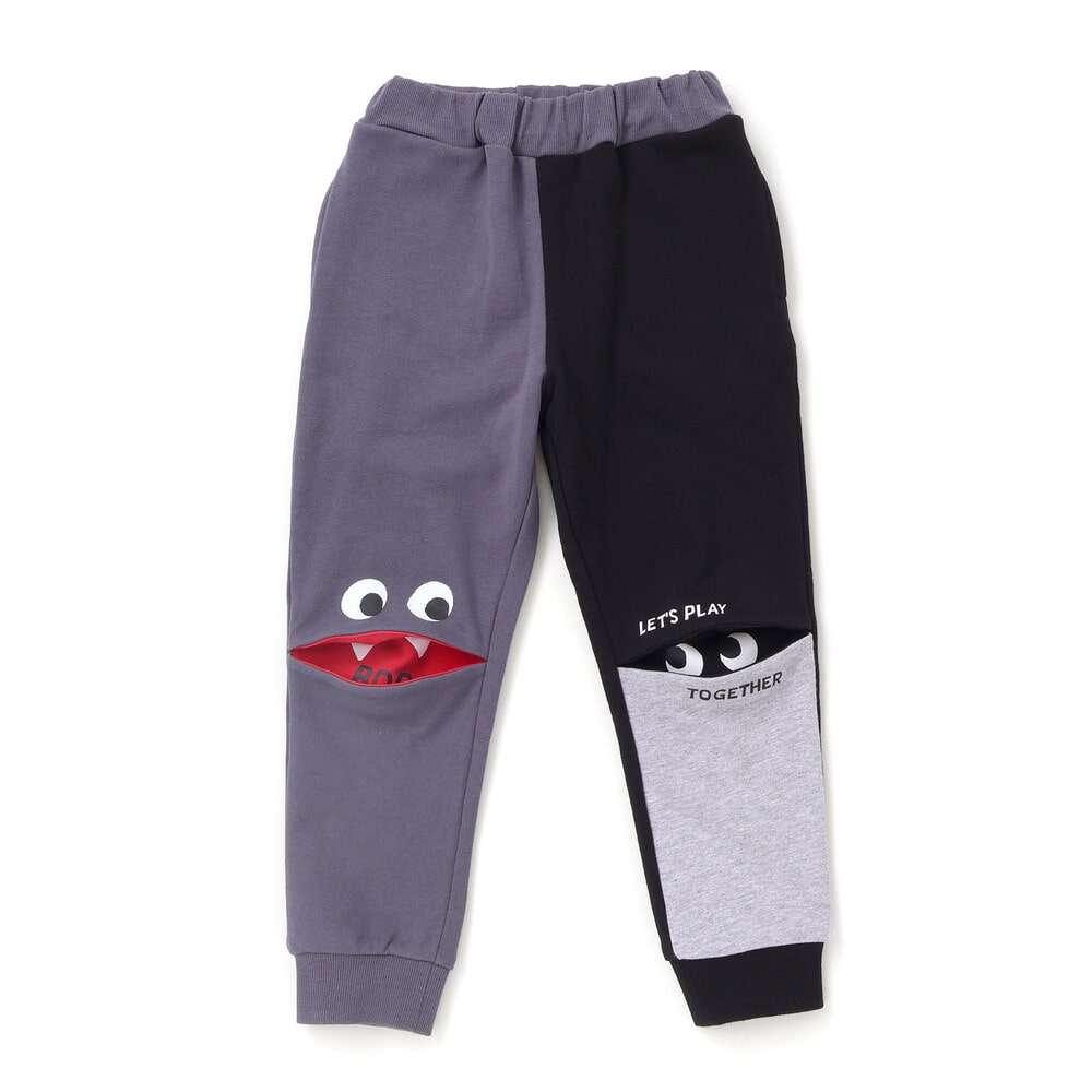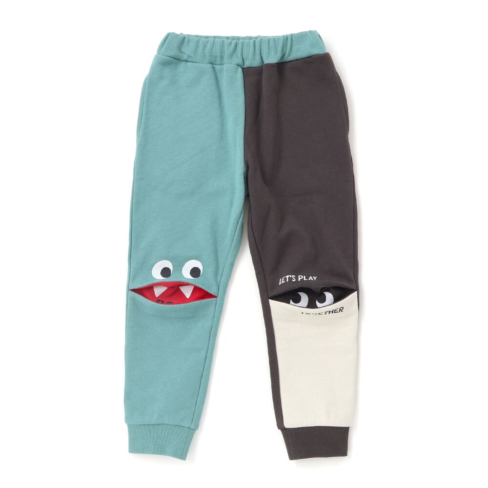 切り替えがおしゃれなアクセントになりつつ、両ひざ部分にモンスターを大胆にあしらった、遊び心満点の一枚です。