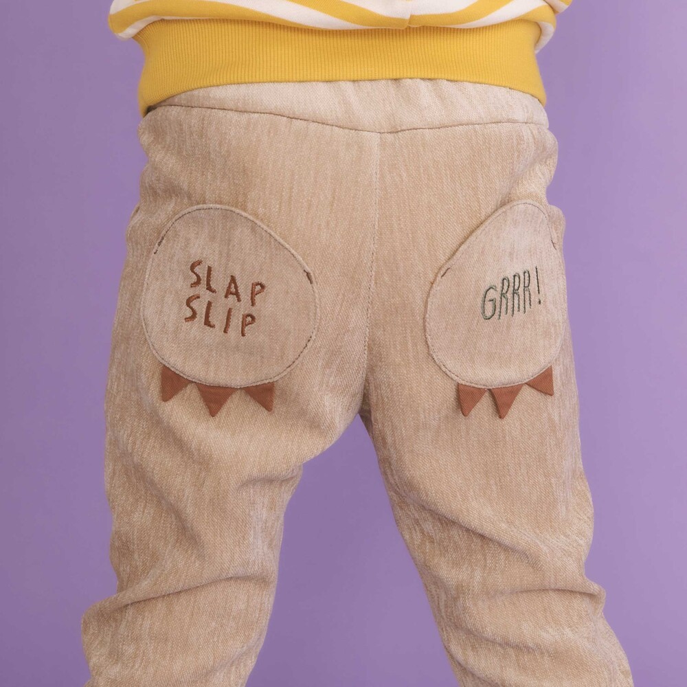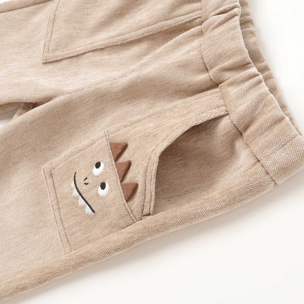 恐竜が大好きな男の子がワクワクするロングパンツ。