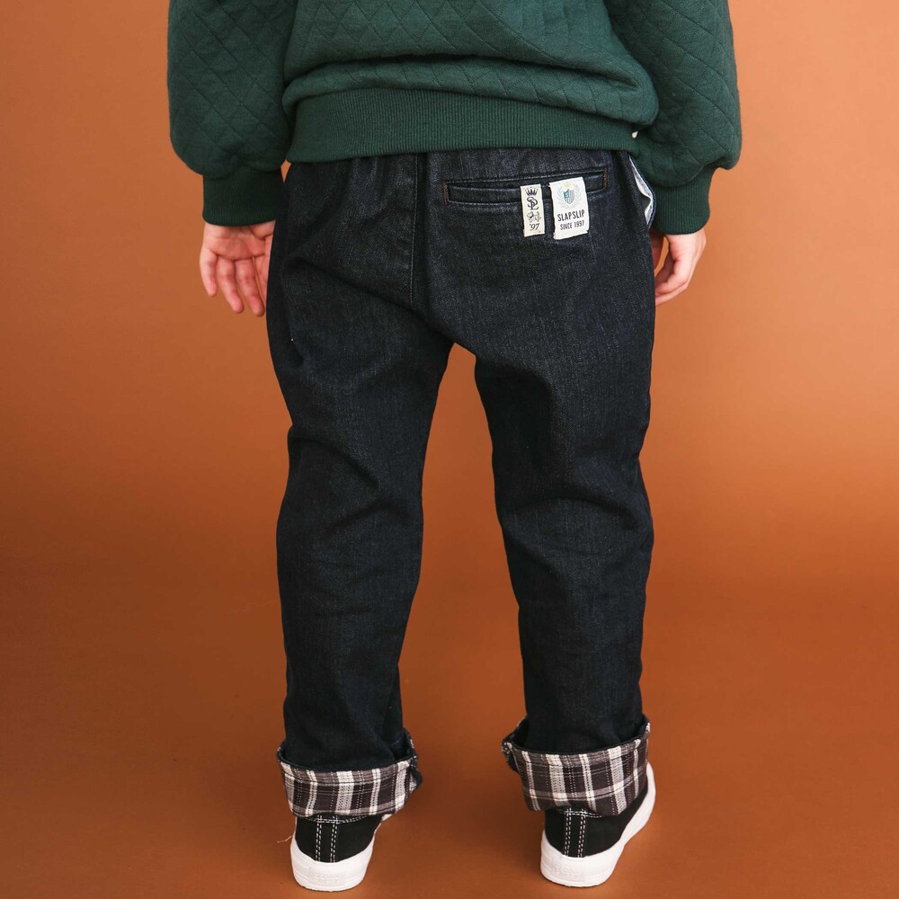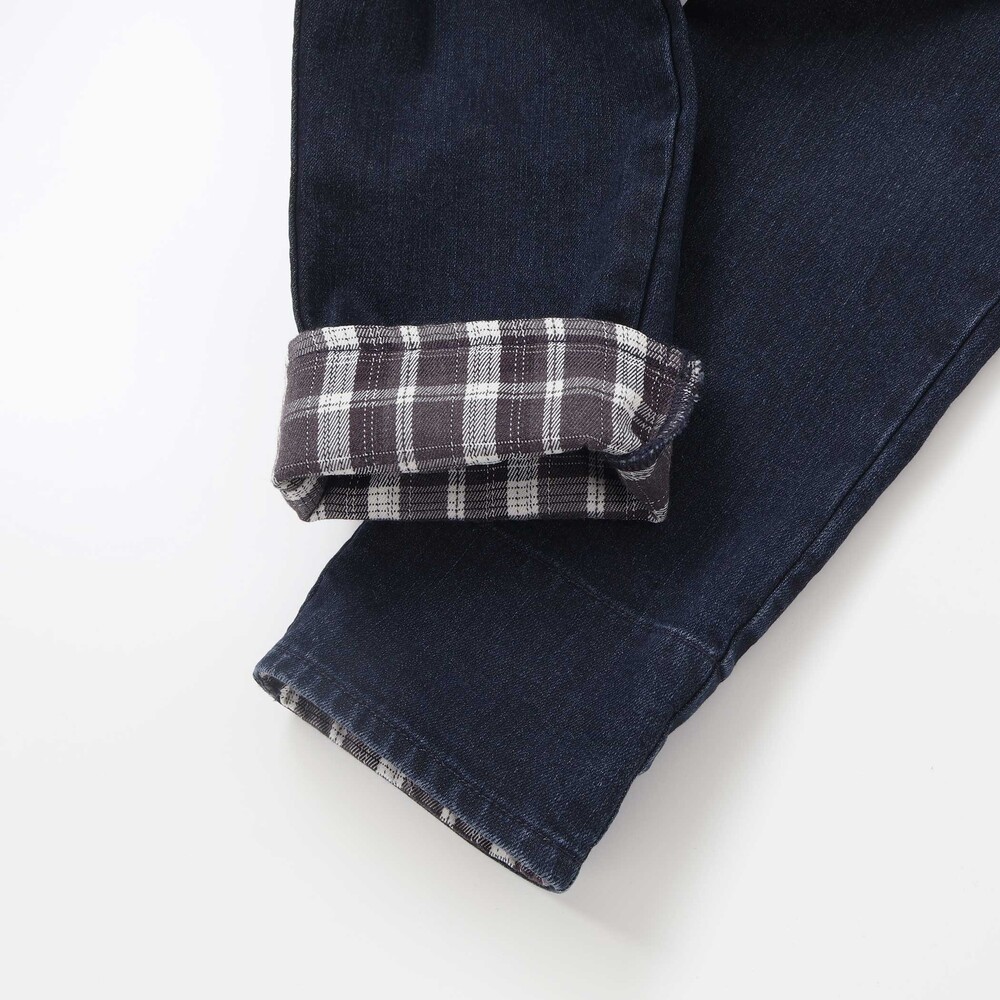 ネイビー:カジュアルなデニム素材にブラック系のチェックがカッコいい
