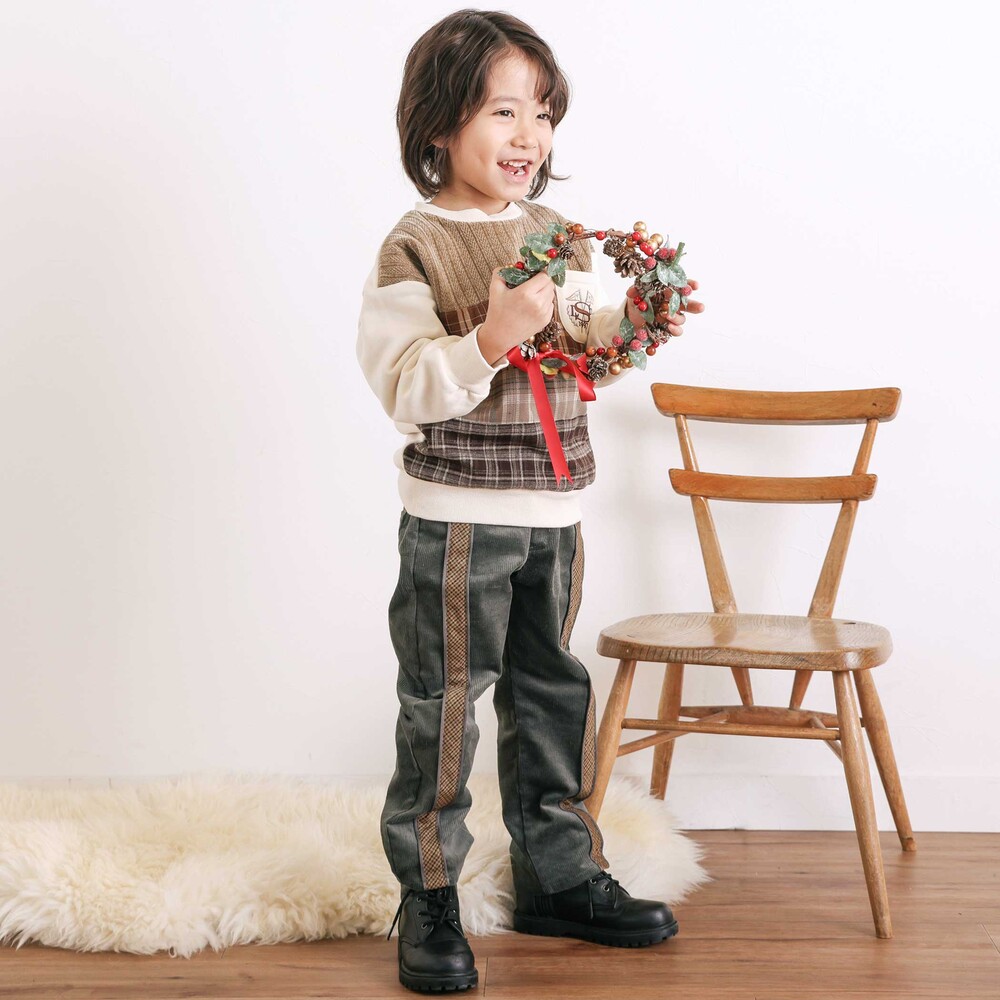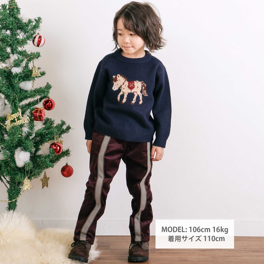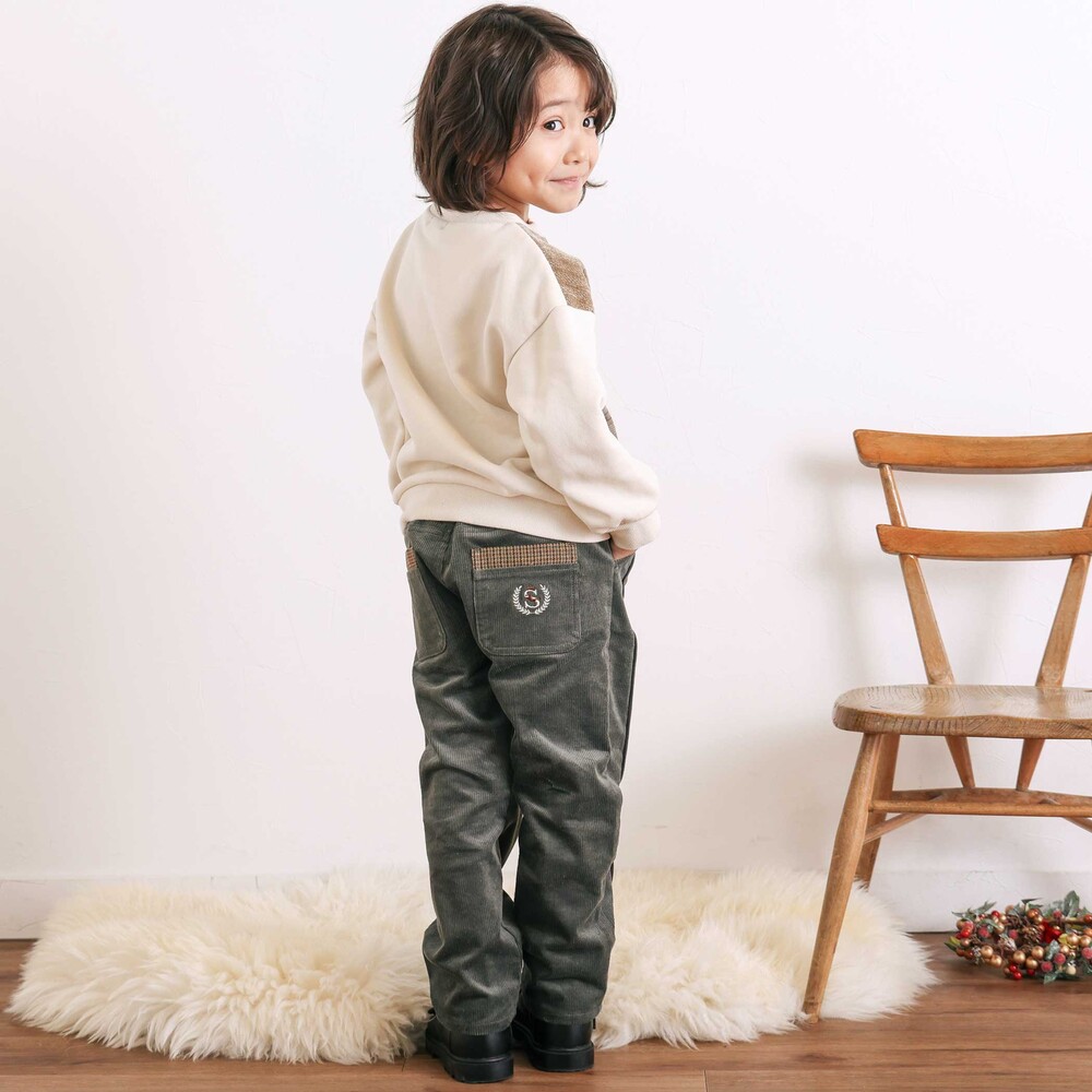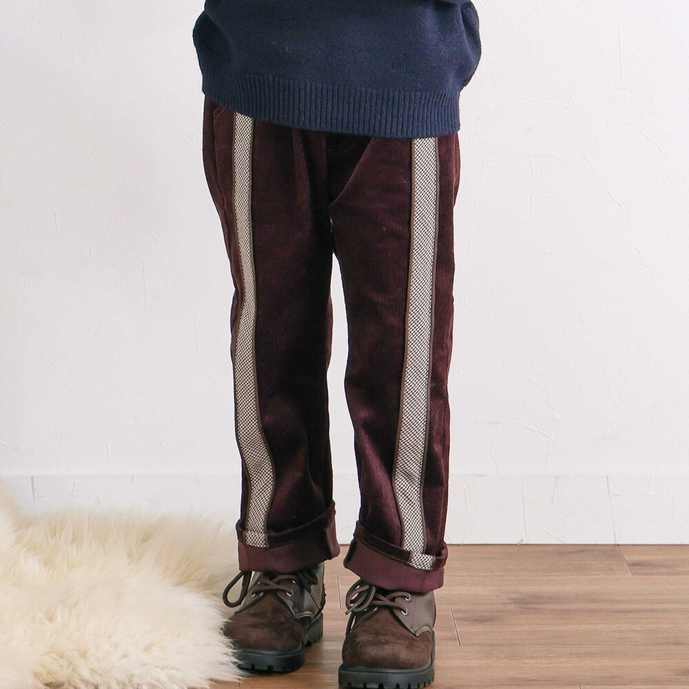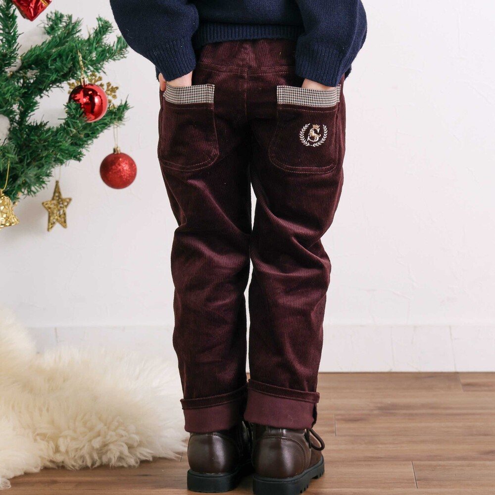 シーズンムードをプラスするコーデュロイ素材を使用した、男の子用ロングパンツ。