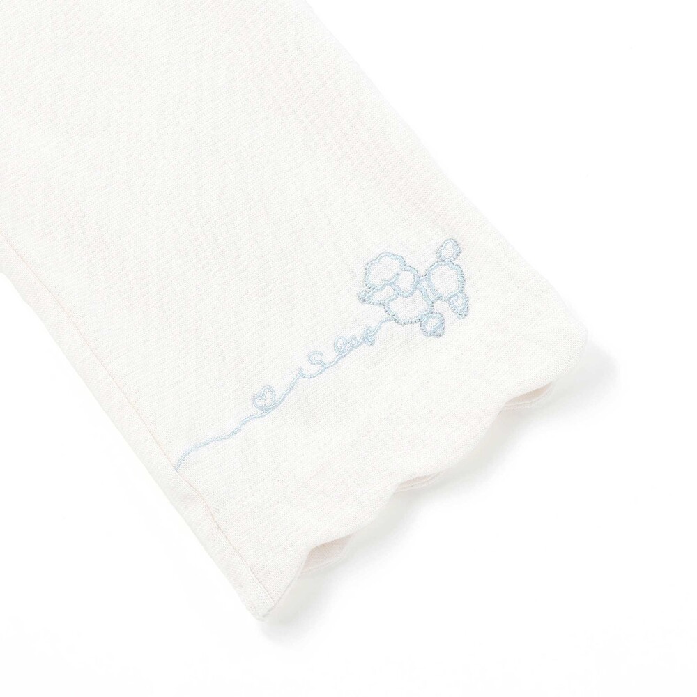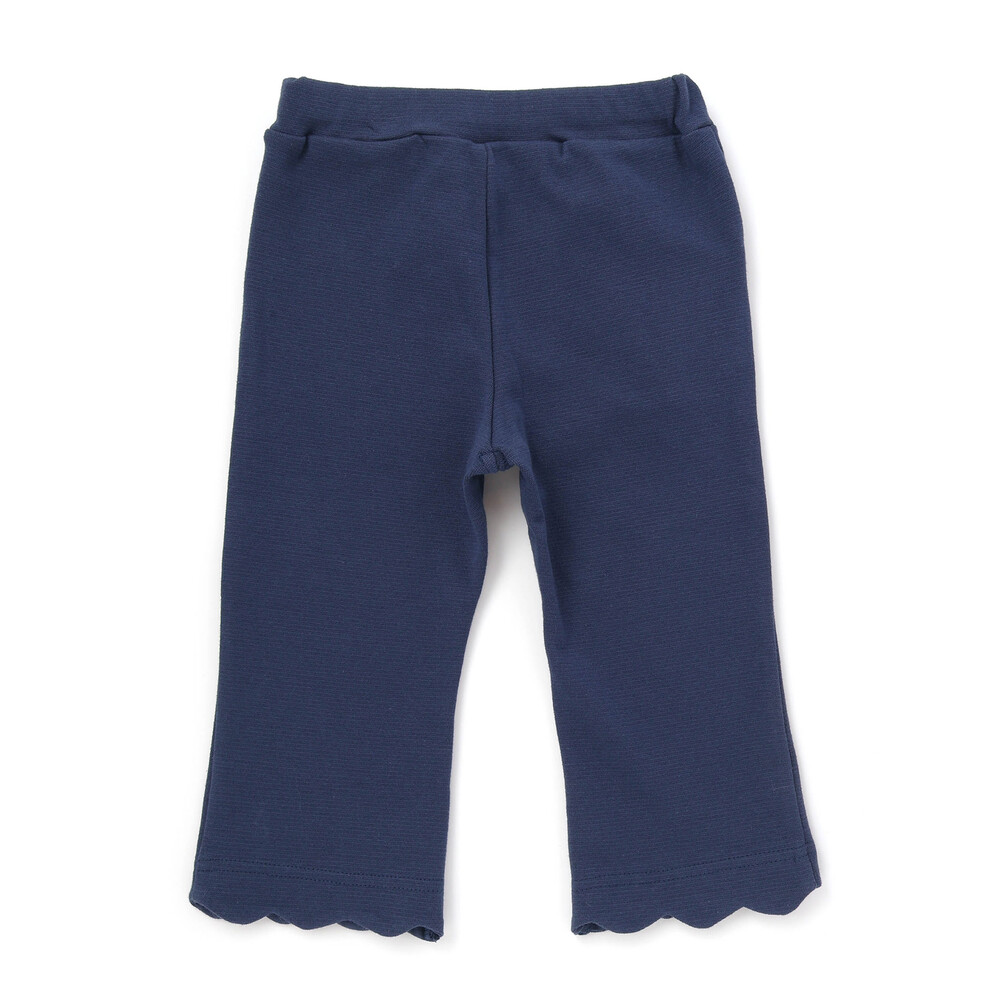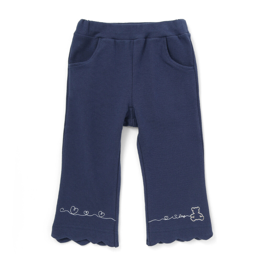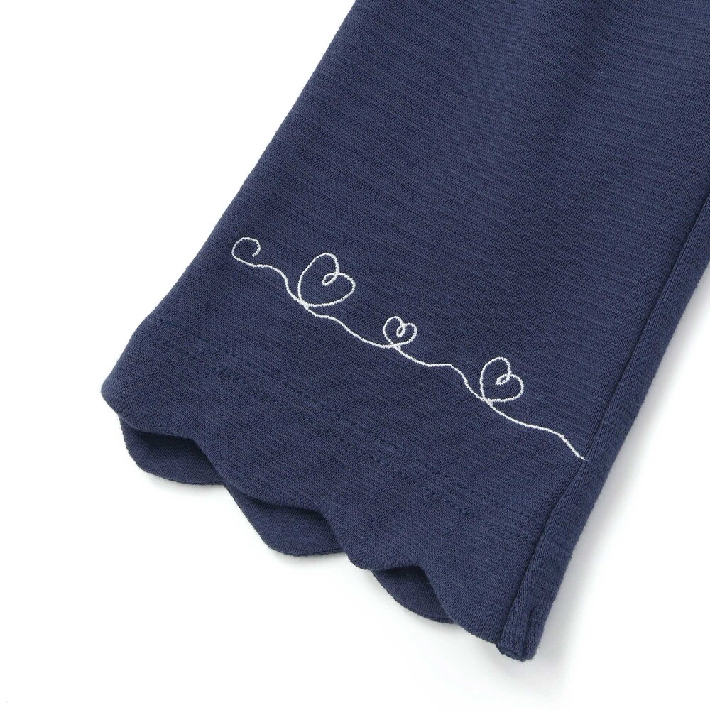 裾のスカラップデザインに、カラーごとに異なる刺しゅうをあしらった、とってもキュートな女の子用7分丈パンツ。