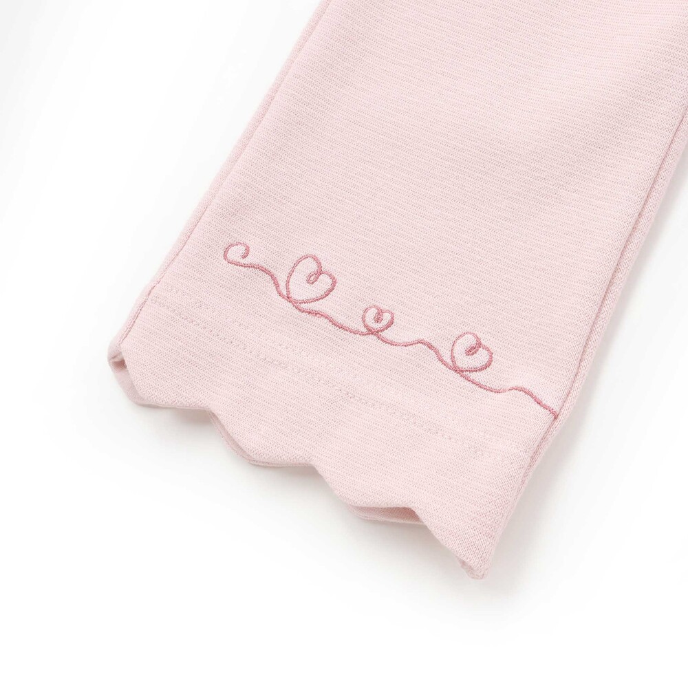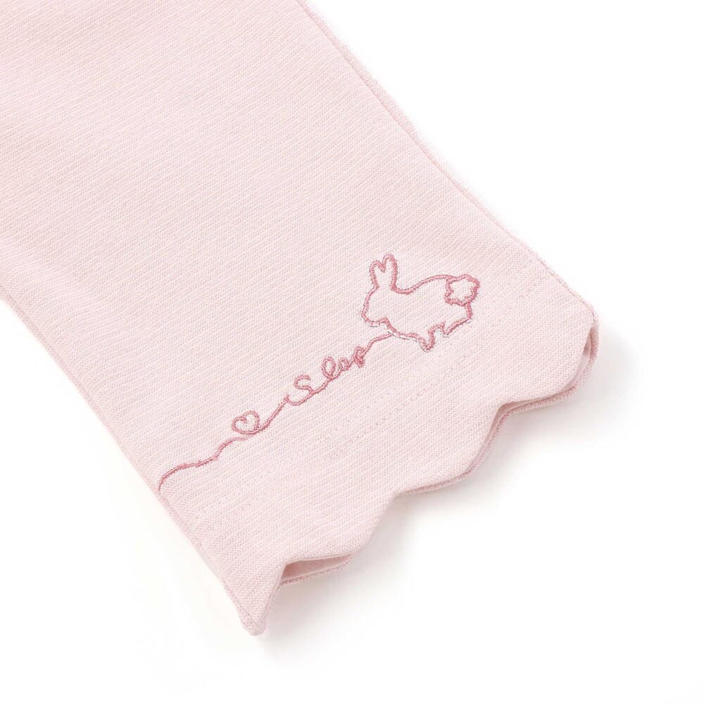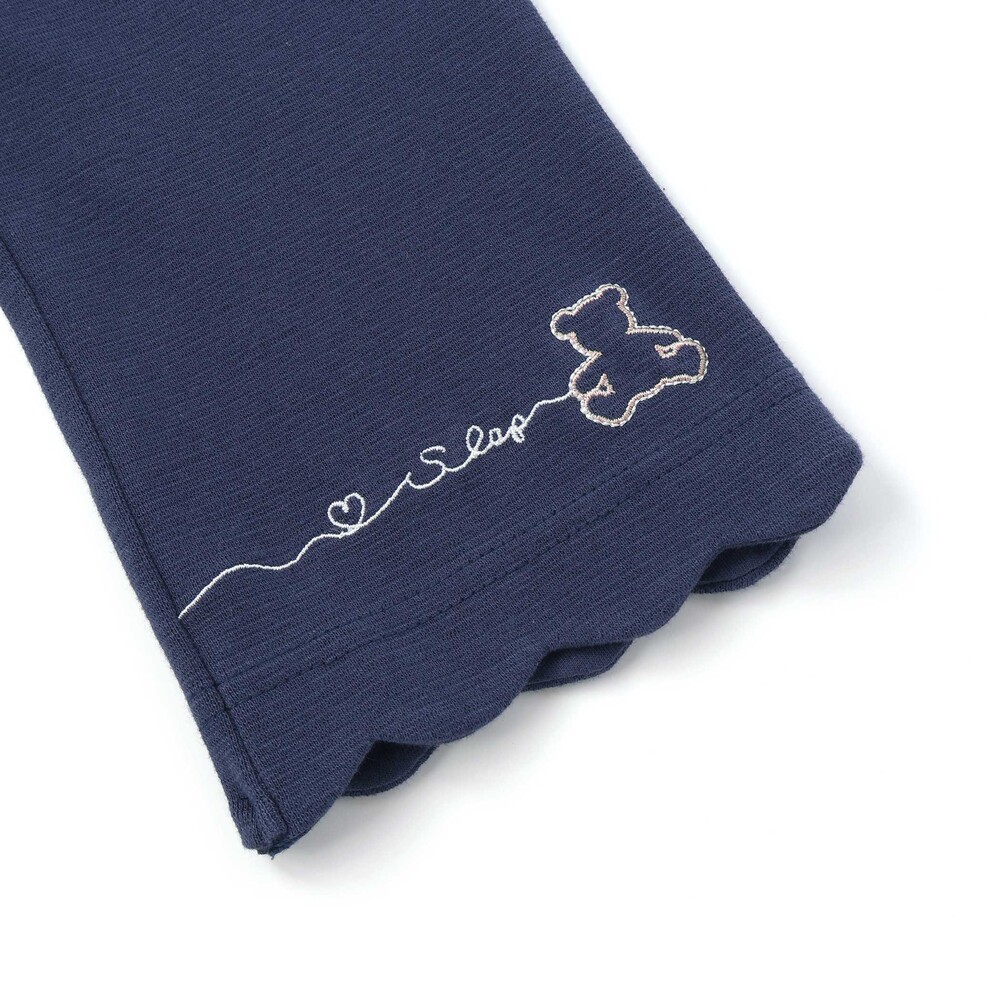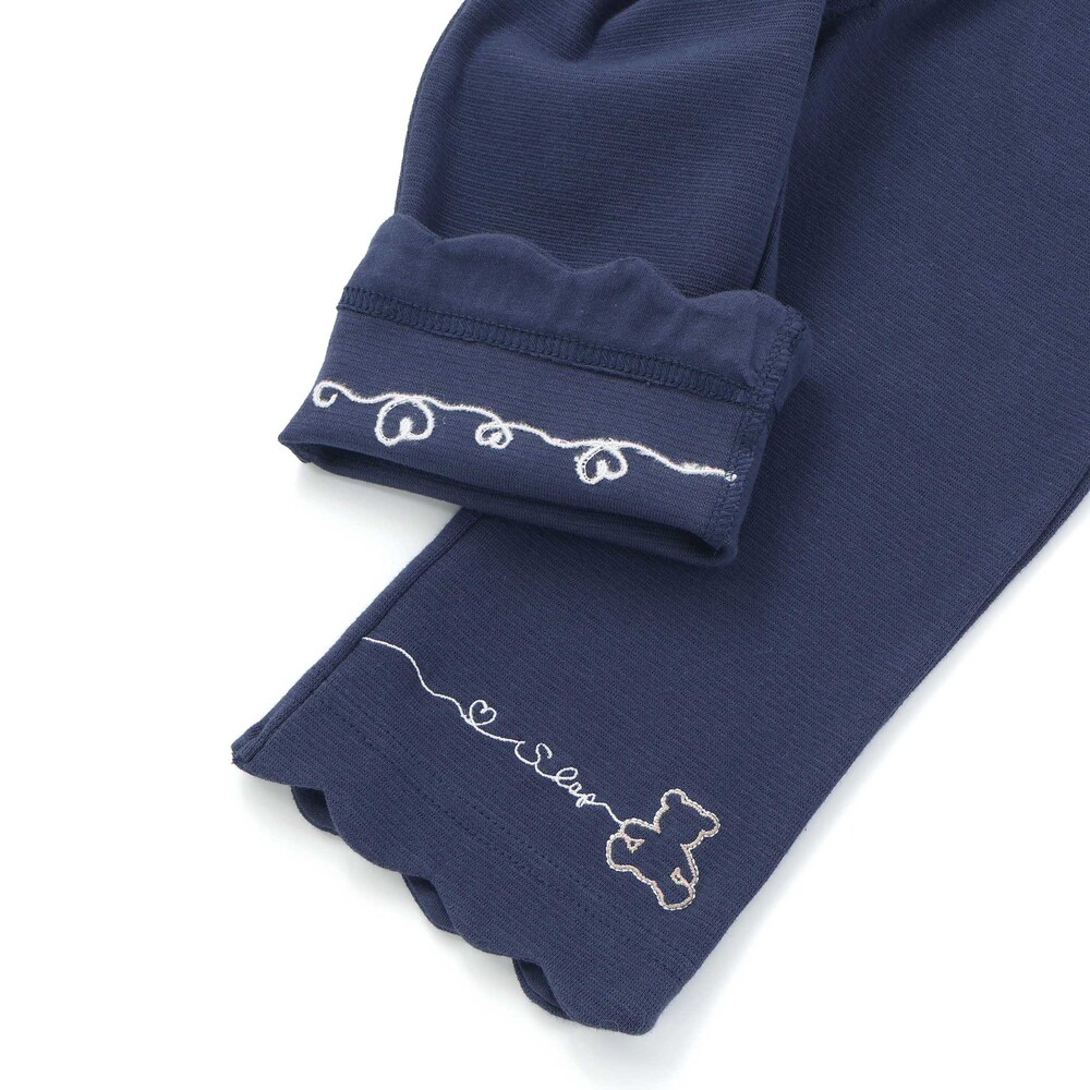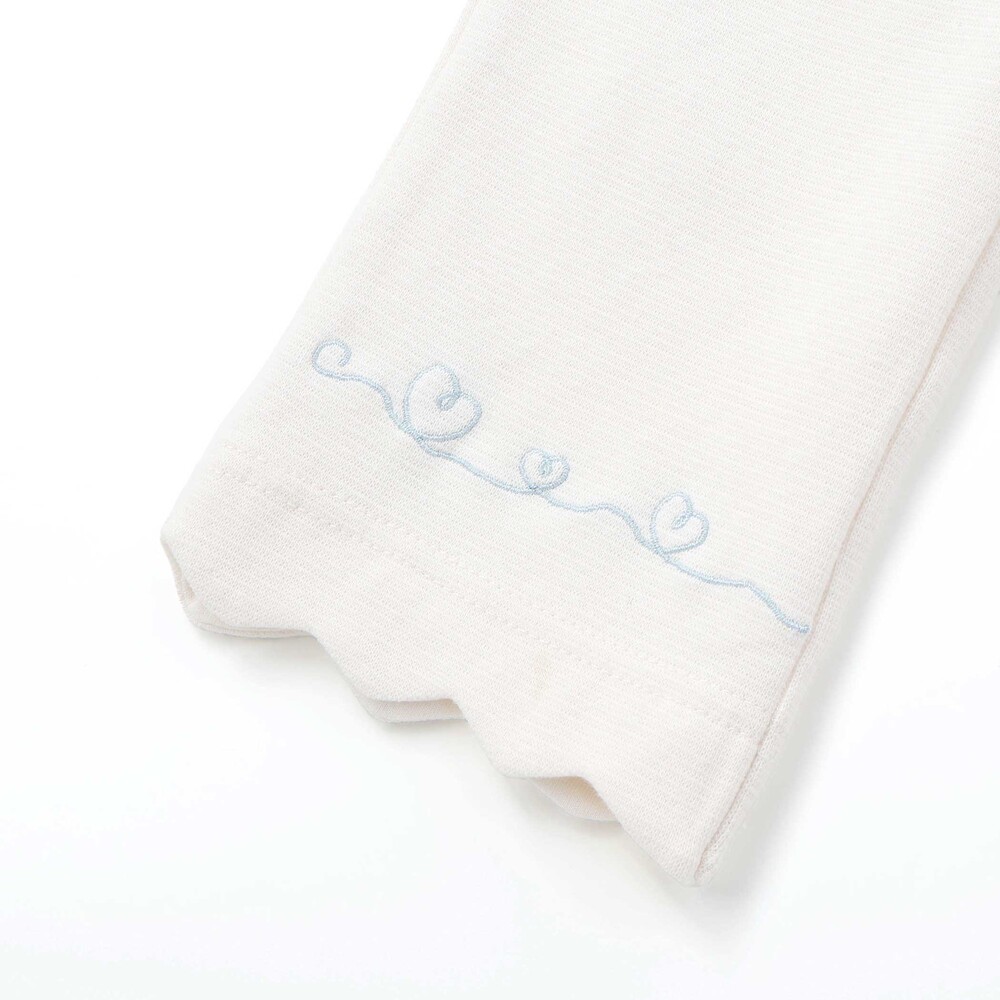 裾のスカラップとキュートな動物+ハート刺しゅうが、足元までガーリーに彩ってくれる一枚です。