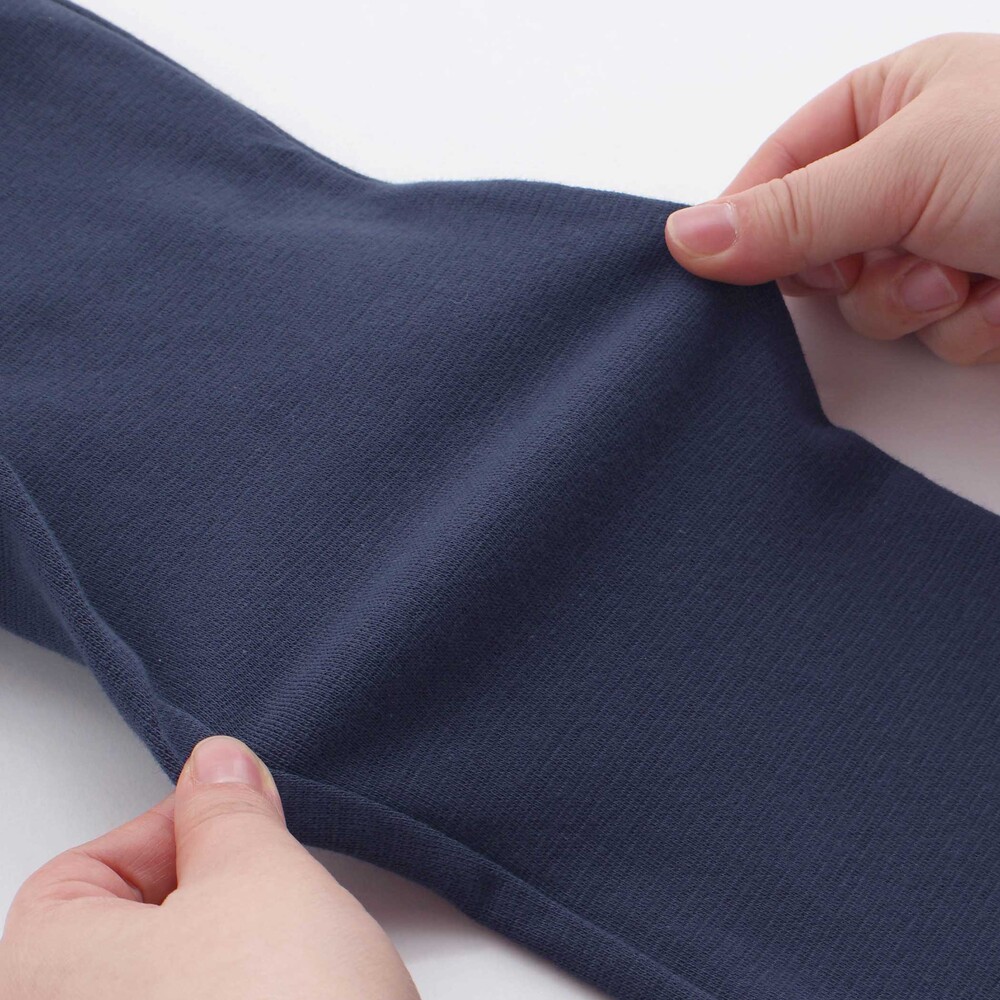 上品な表面感とほどよいハリが魅力のミラノリブ素材を使用。