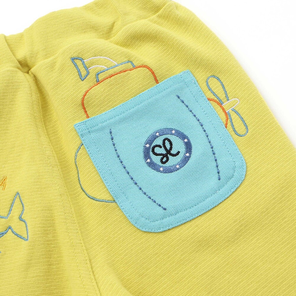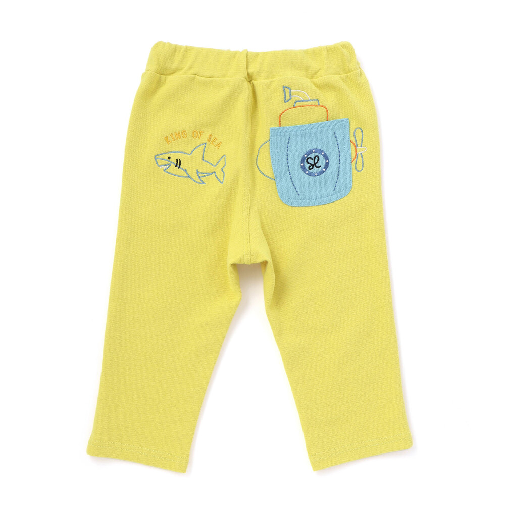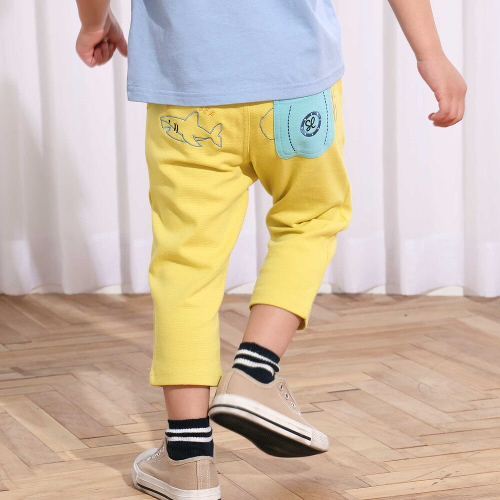 後ろポケットのモチーフがカラーごとに異なり、物語を感じさせるデザインが楽しい男の子用7分丈パンツ。