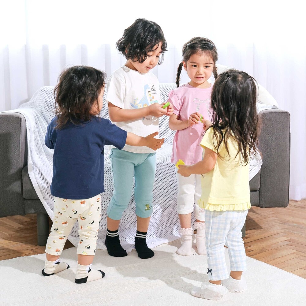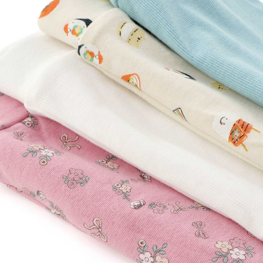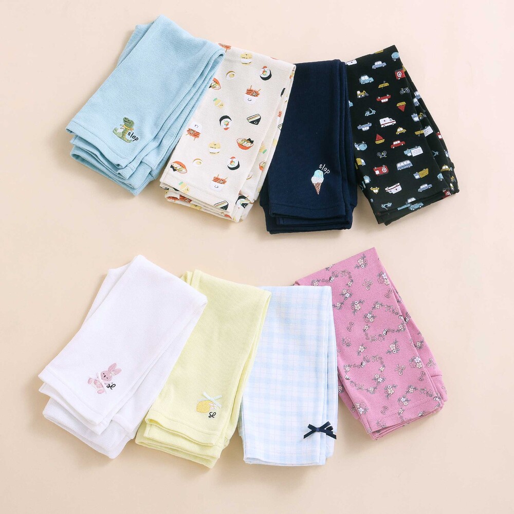 | カラー | ホワイト×うさぎ刺しゅう×リブ、イエロー×レモン刺しゅう×リブ、ピンク×お花リボンハート総柄、水色×チェック柄×リボン、ブルー×恐竜刺しゅう×リブ、ネイビー×アイス刺しゅう×リブ、アイボリー×アジアンフード総柄、ブラック×のりもの総柄 |