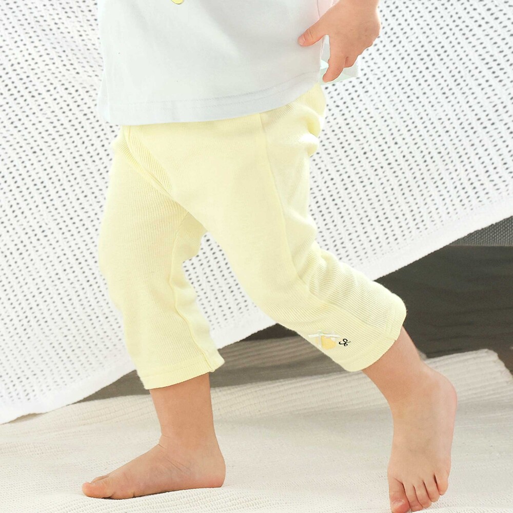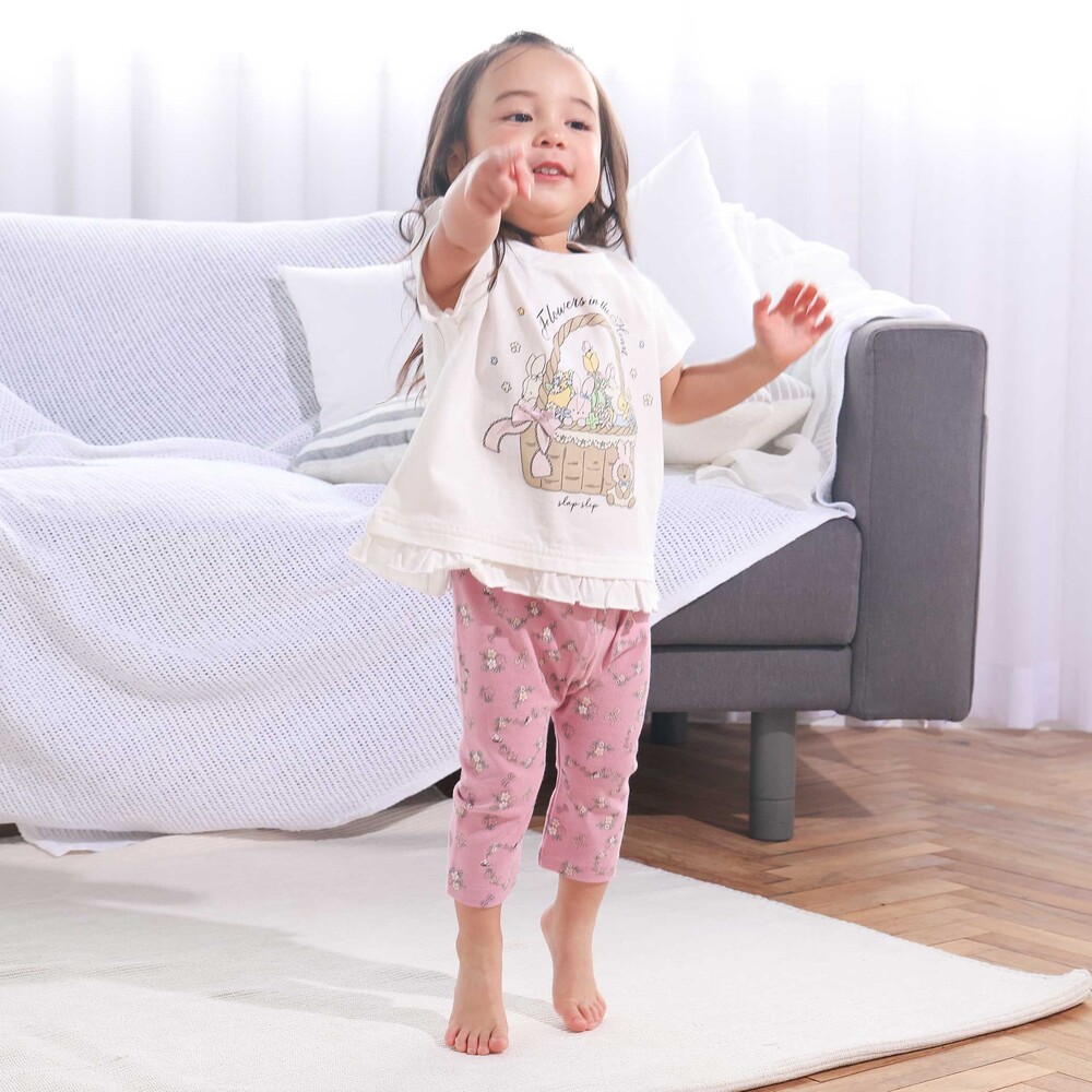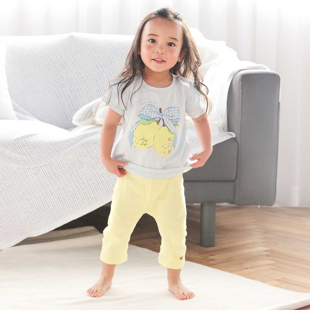 前でも後ろでも、どちらからでもサッとはけるから朝のお着替えも時短でらくらく!よく伸びて動きやすい7分丈パンツ!