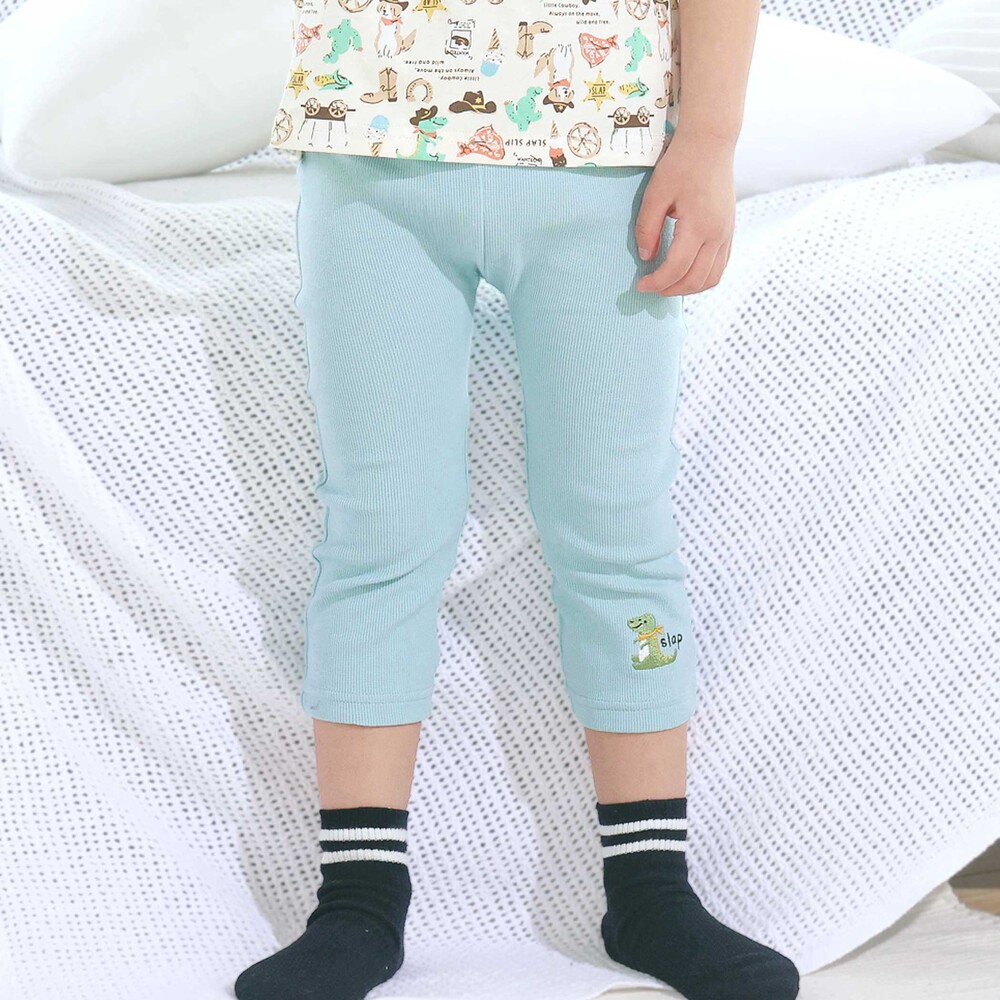 ブルー×恐竜刺しゅう×リブ