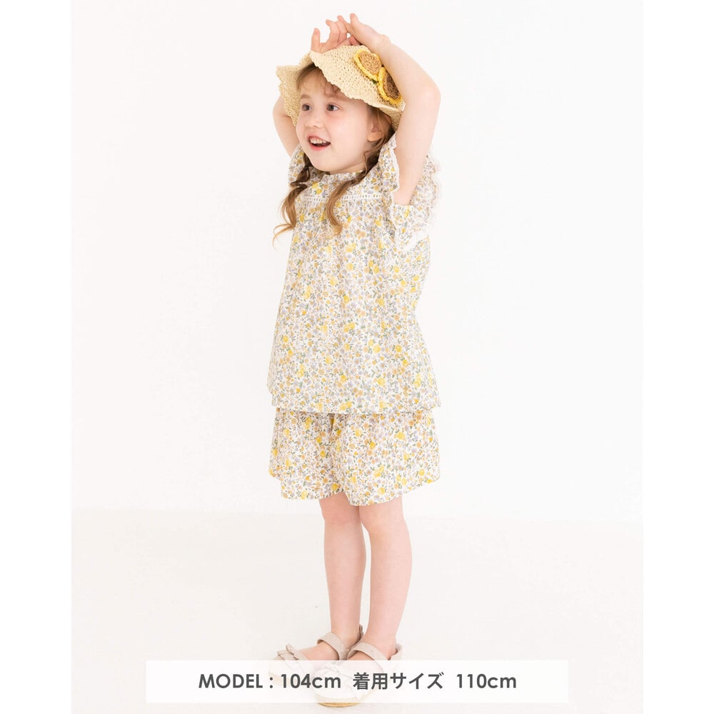 【 お揃い 】 花柄 シェル シルエット 布帛 ショートパンツ (90~130cm)