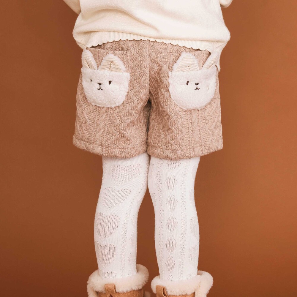 女の子にぴったりな、ケーブルニット素材のショートパンツ。