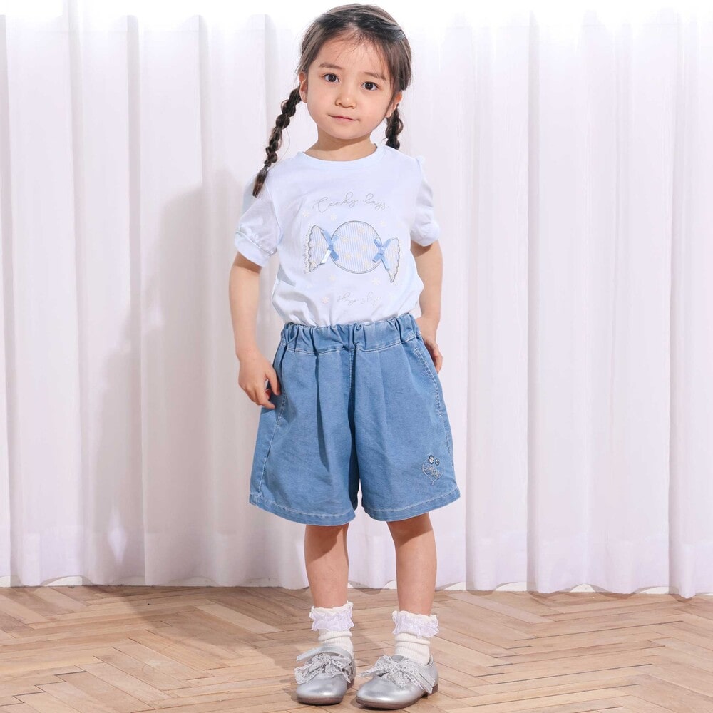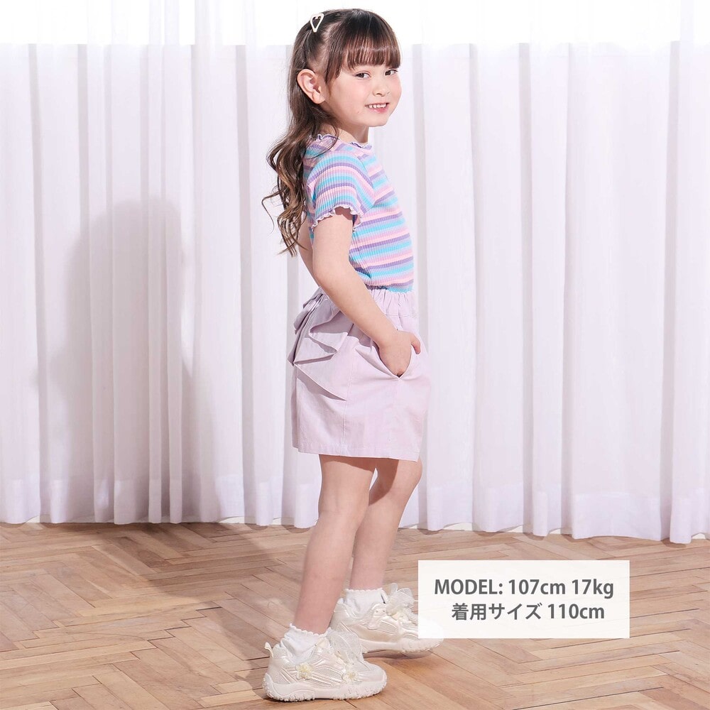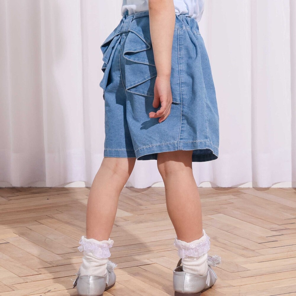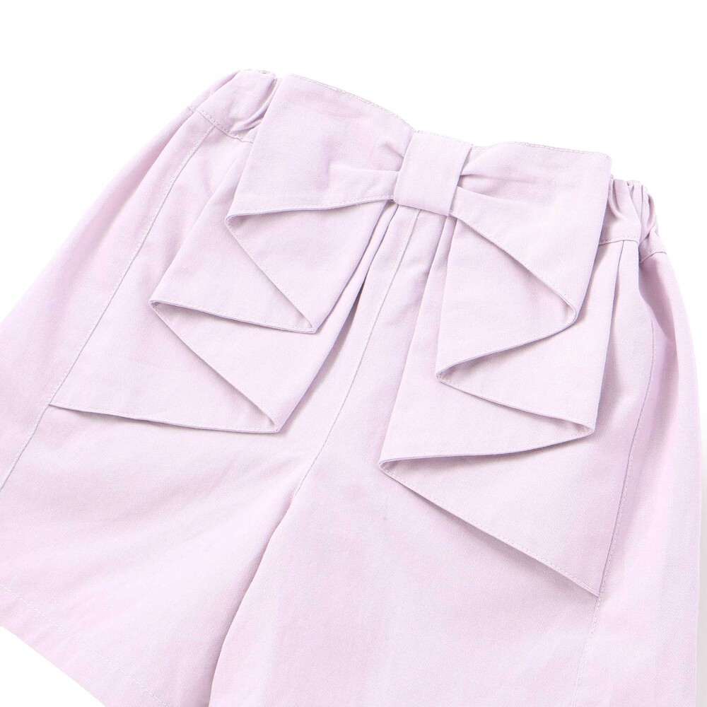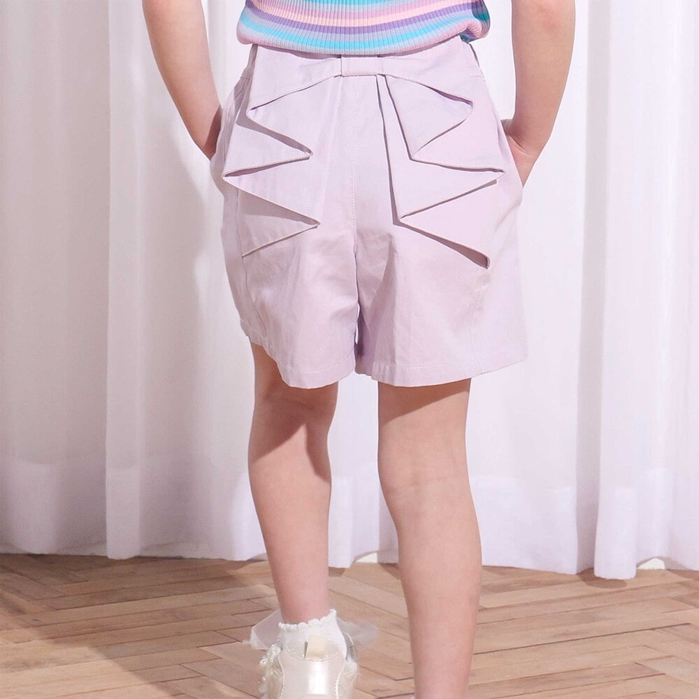 バックスタイルにふんわり広がるフリルが、そのまま大きなリボンのように見える、女の子らしさ満点のショートパンツ。