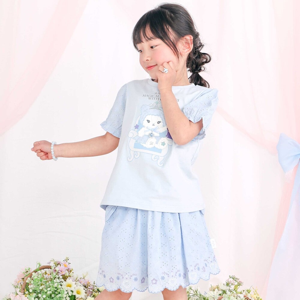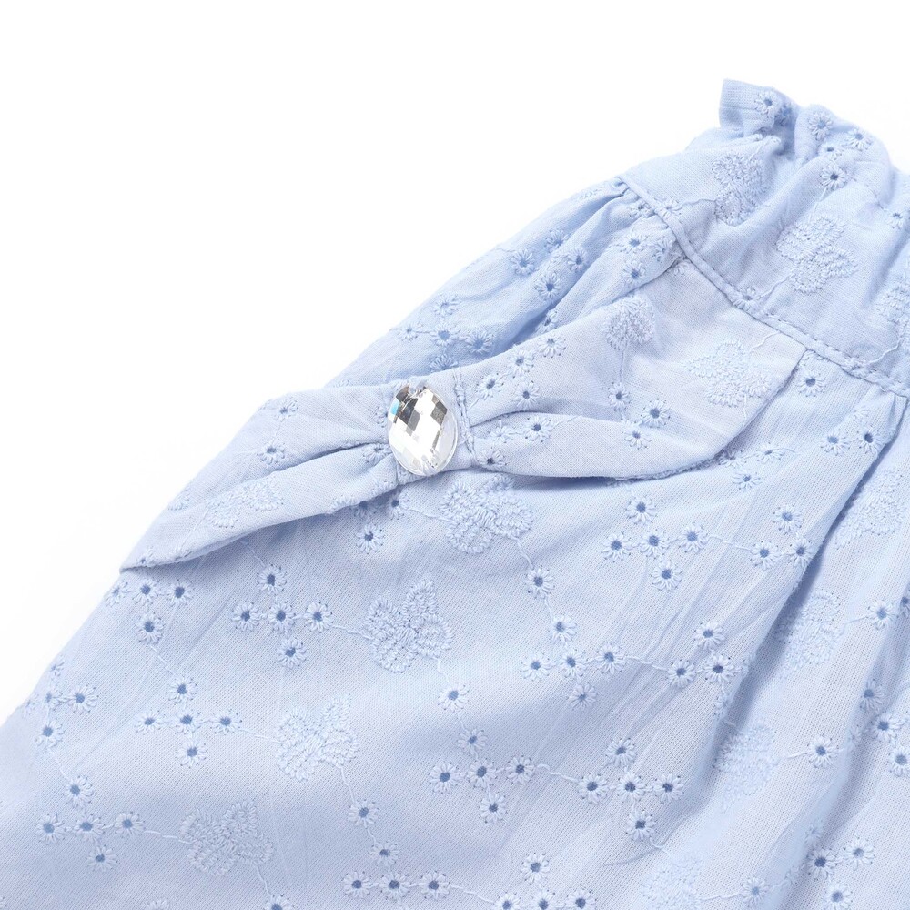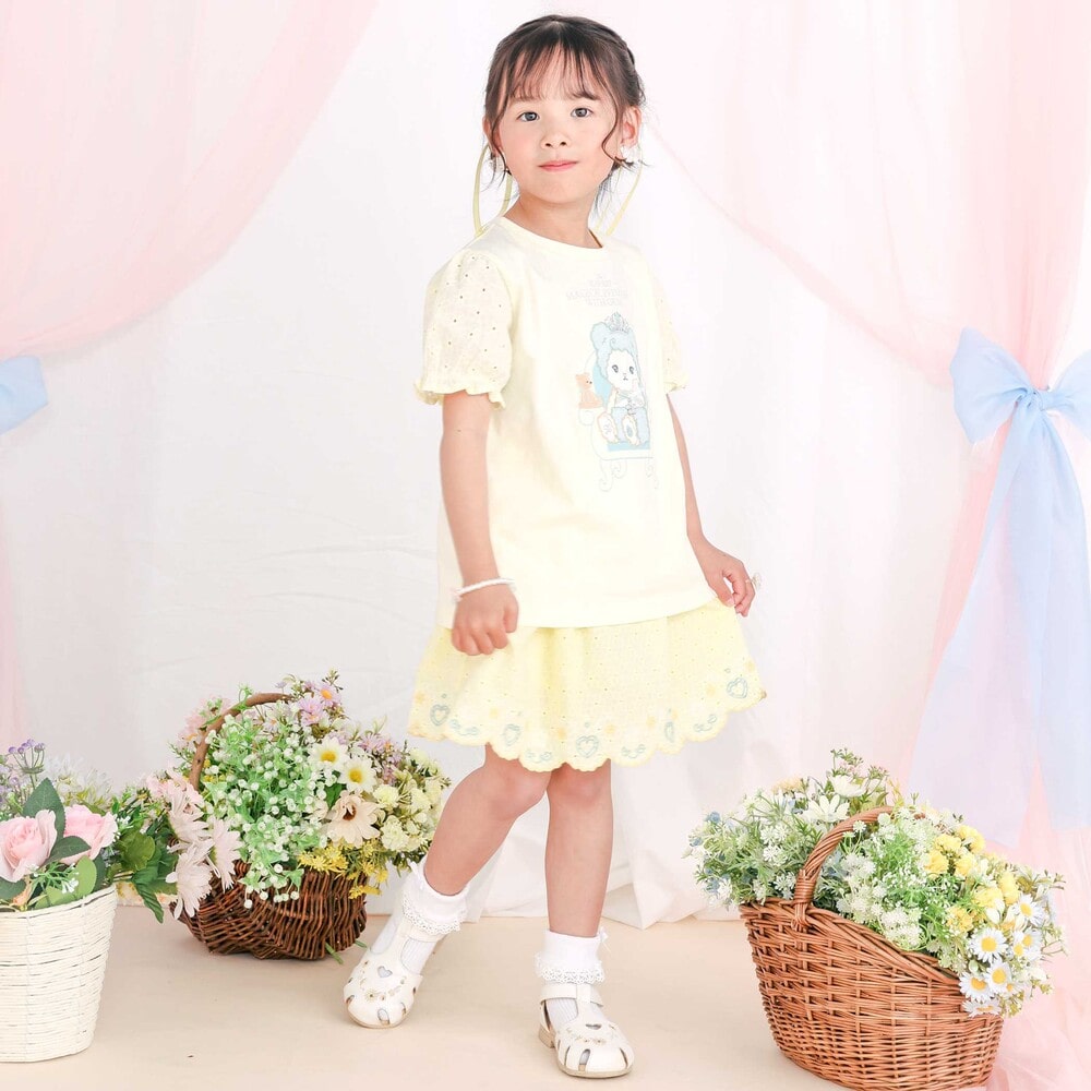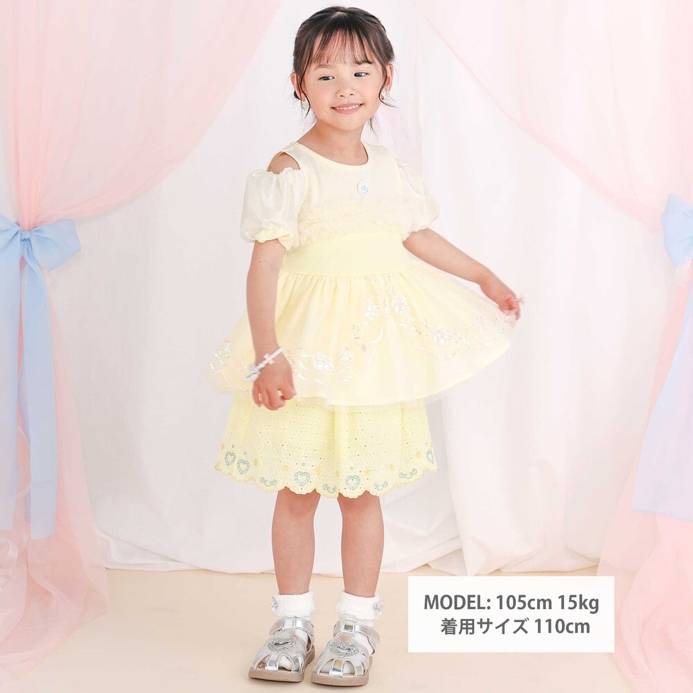 ふんわり華やかなレースときらめくビジューが目を引く、女の子用スカパン。