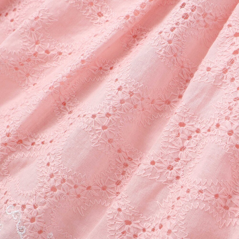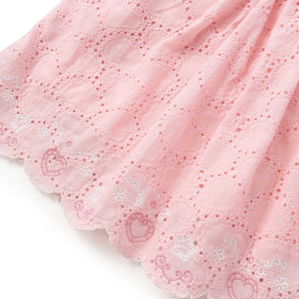 裾はスカラップ仕様で、リボン・ハート・星の刺しゅうを散りばめ、後ろ姿までぬかりなく可愛らしく仕上げました。