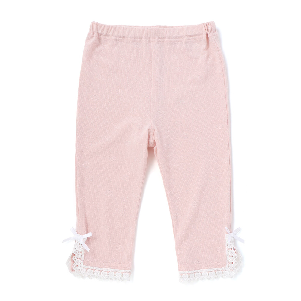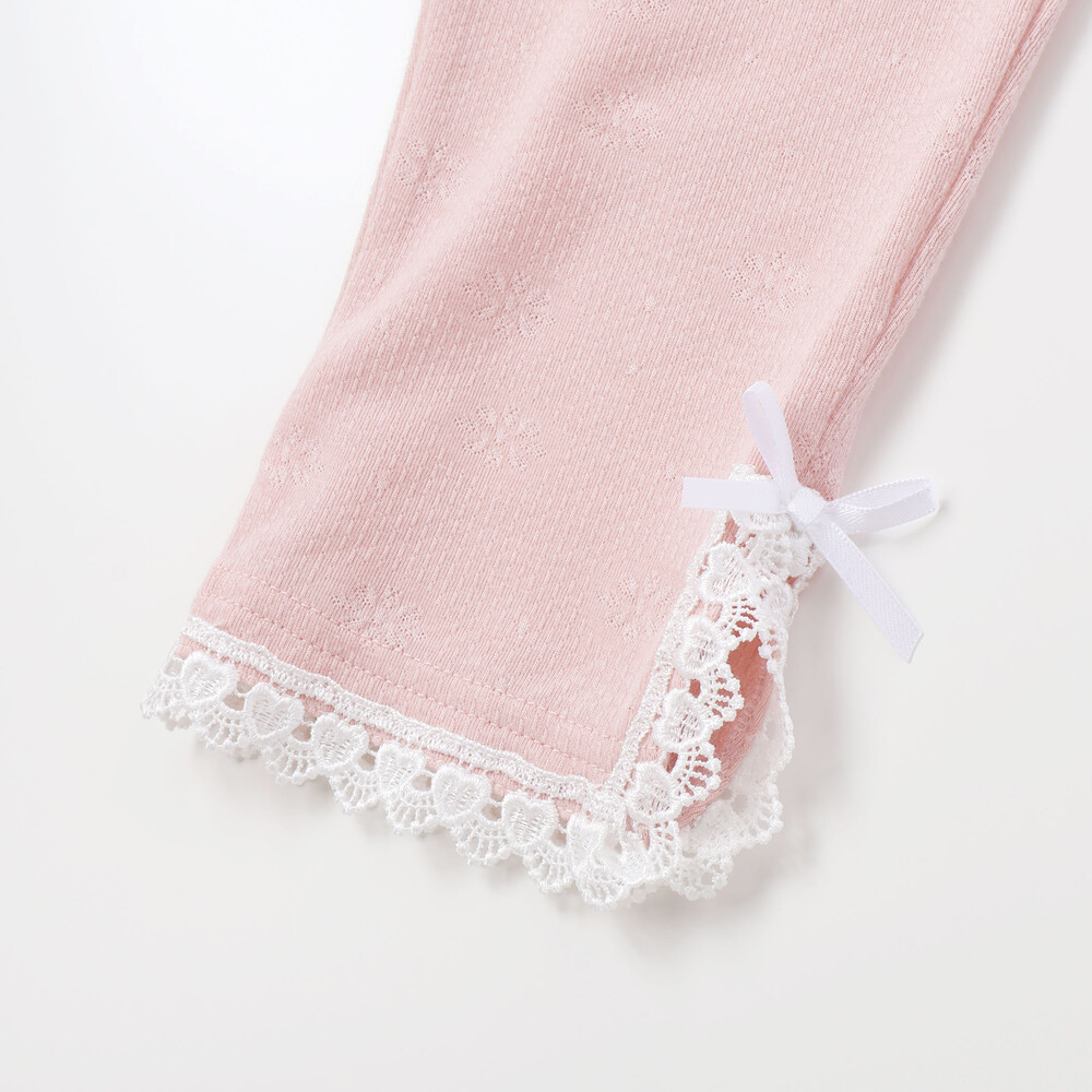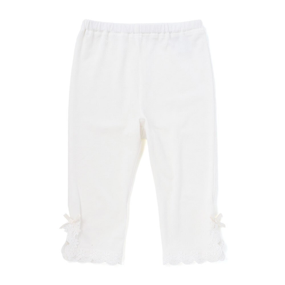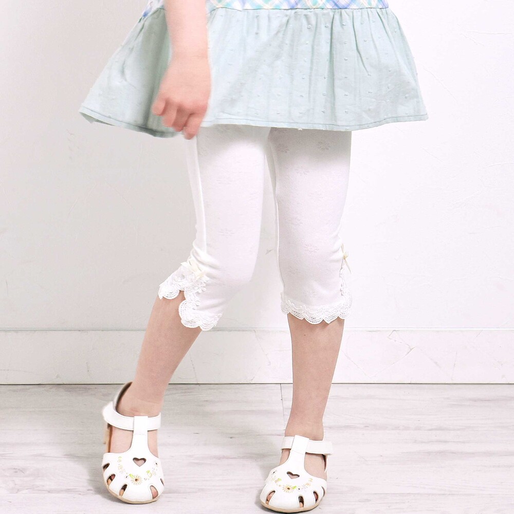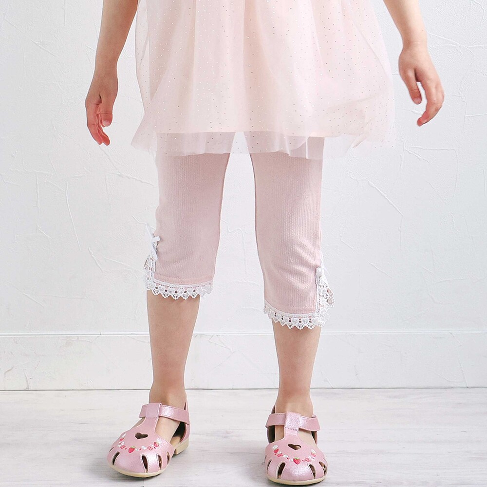 裾にあしらったレースが、さりげなく可愛らしさを添えてくれる女の子用レギンス。