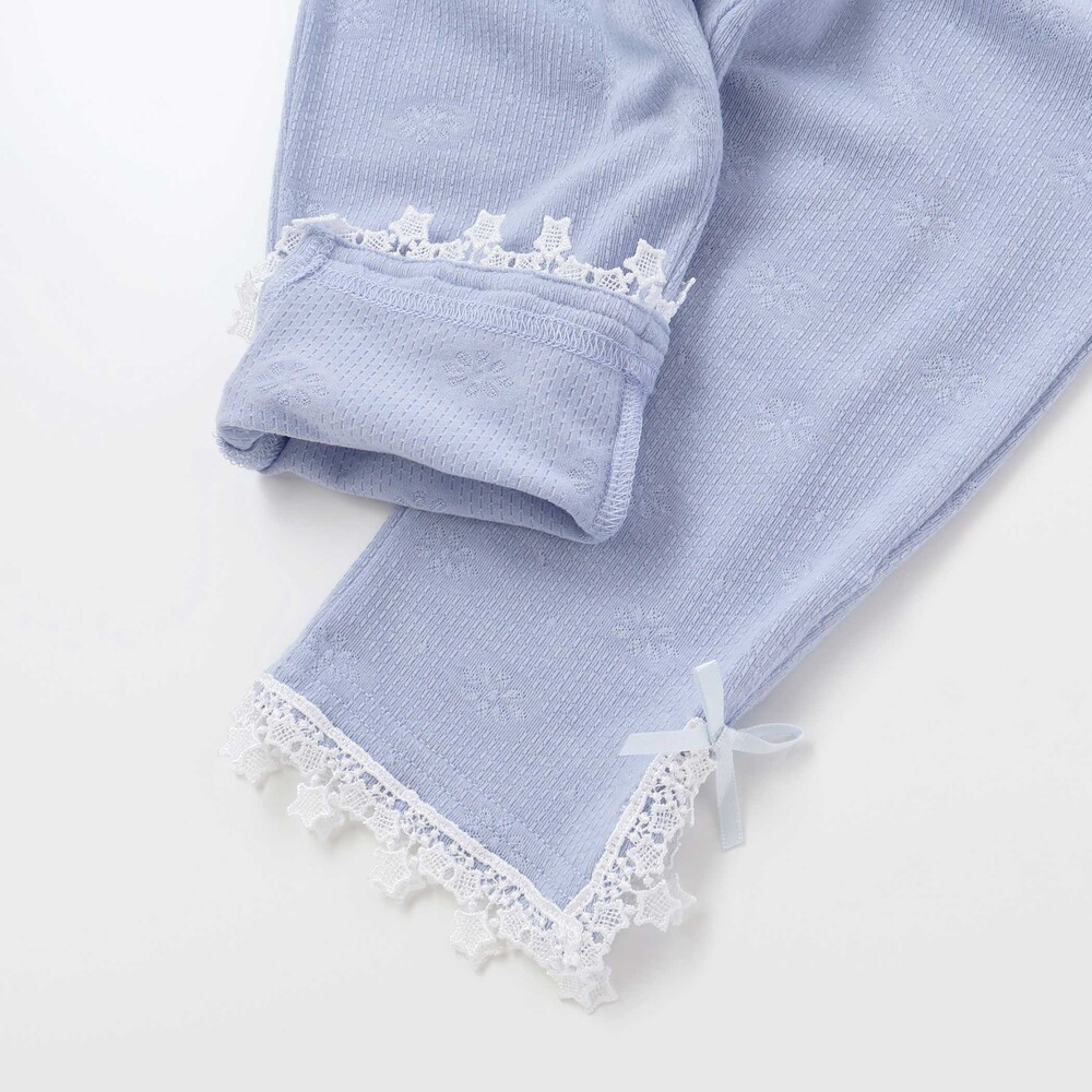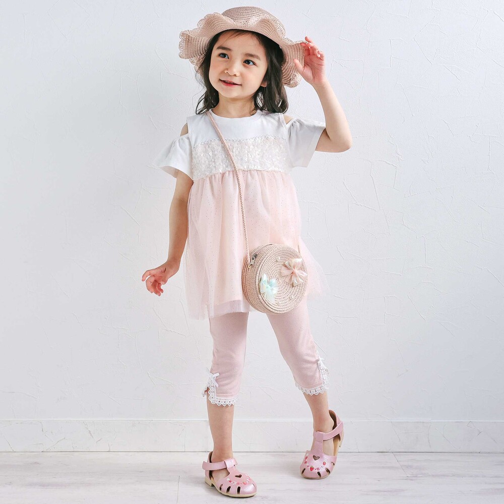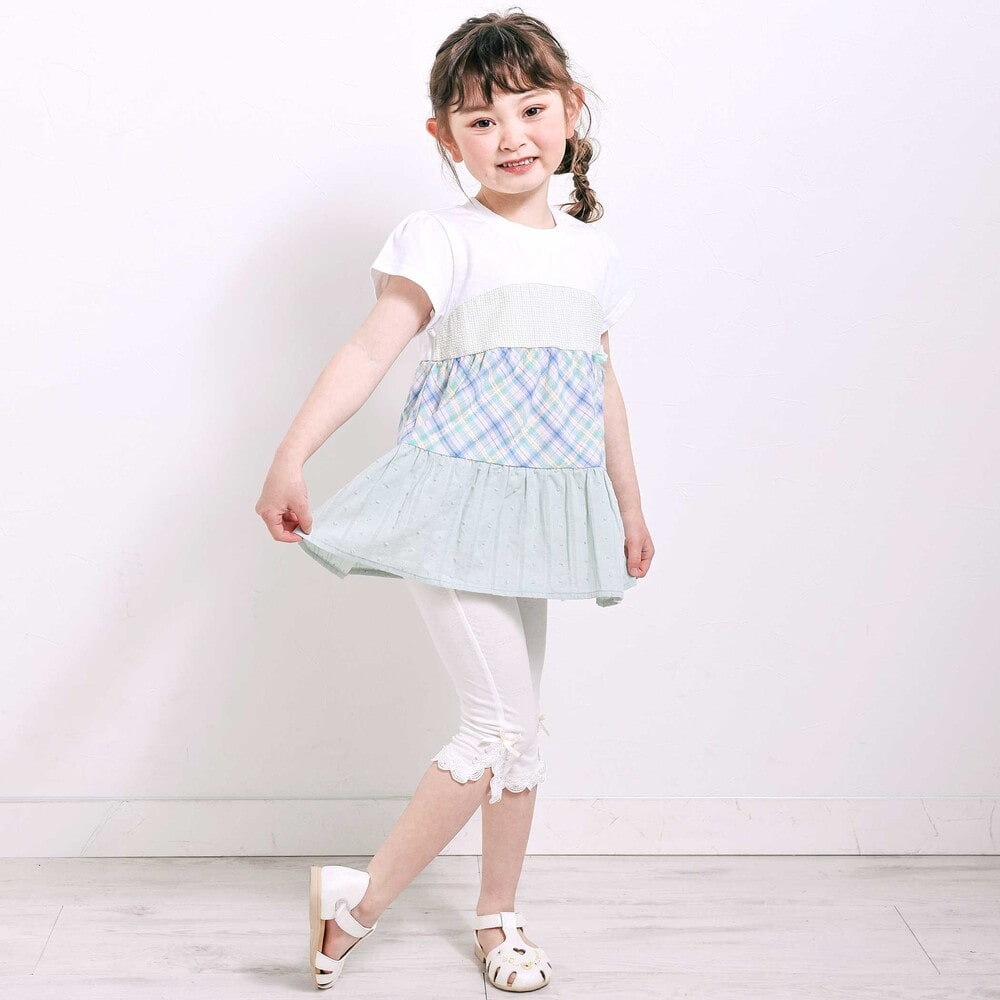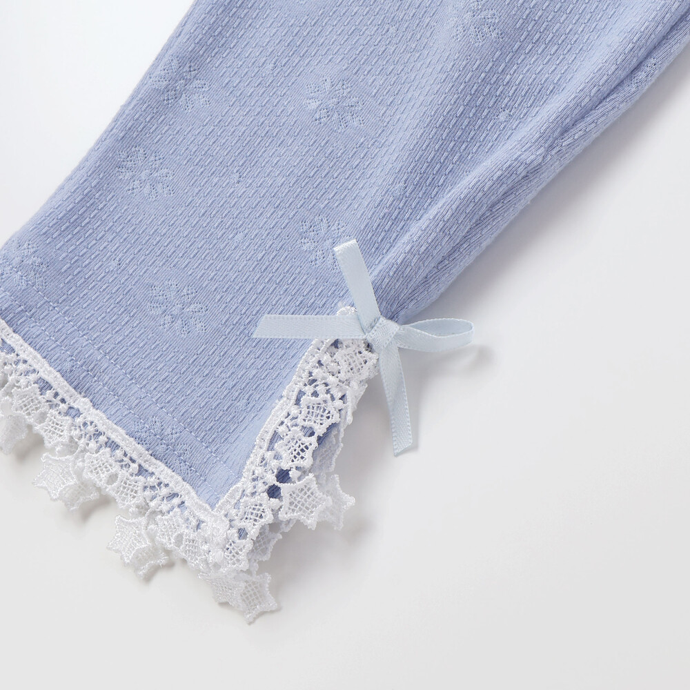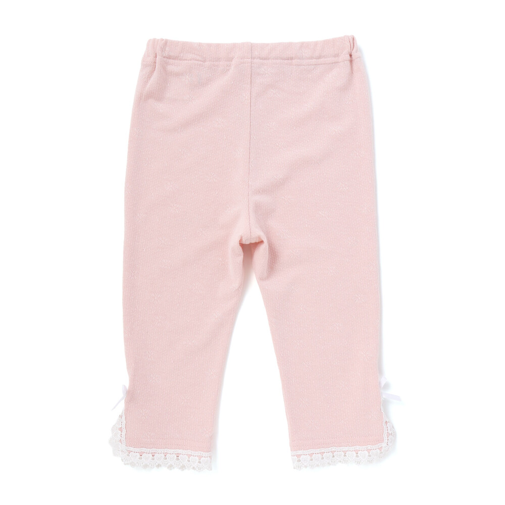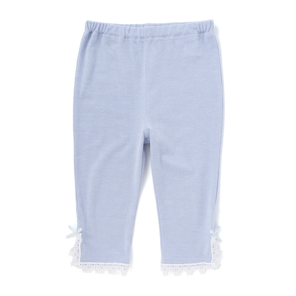 裾にあしらったレースが、さりげなく可愛らしさを添えてくれる女の子用レギンス。