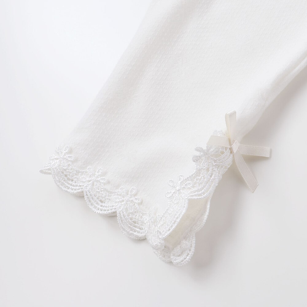身生地には、花柄模様が浮かぶレーシーベア天竺素材を使用。
