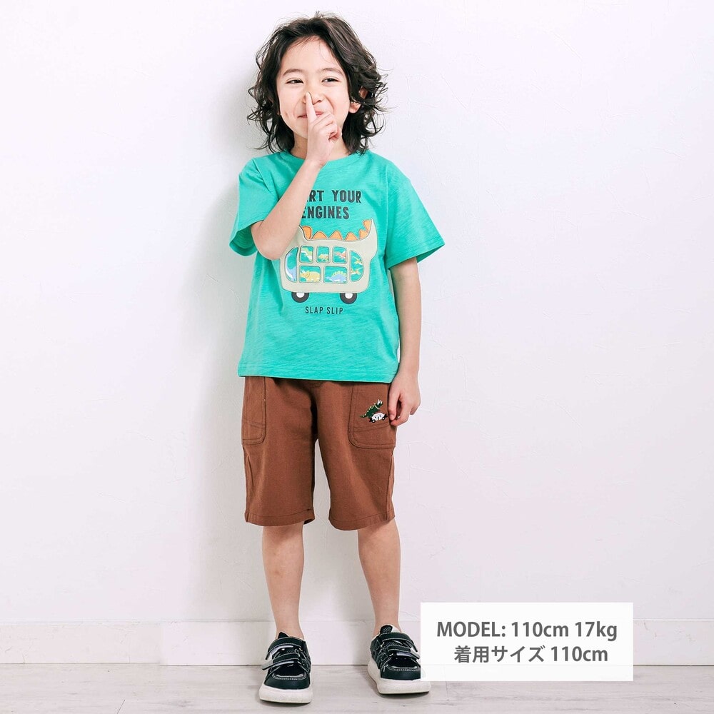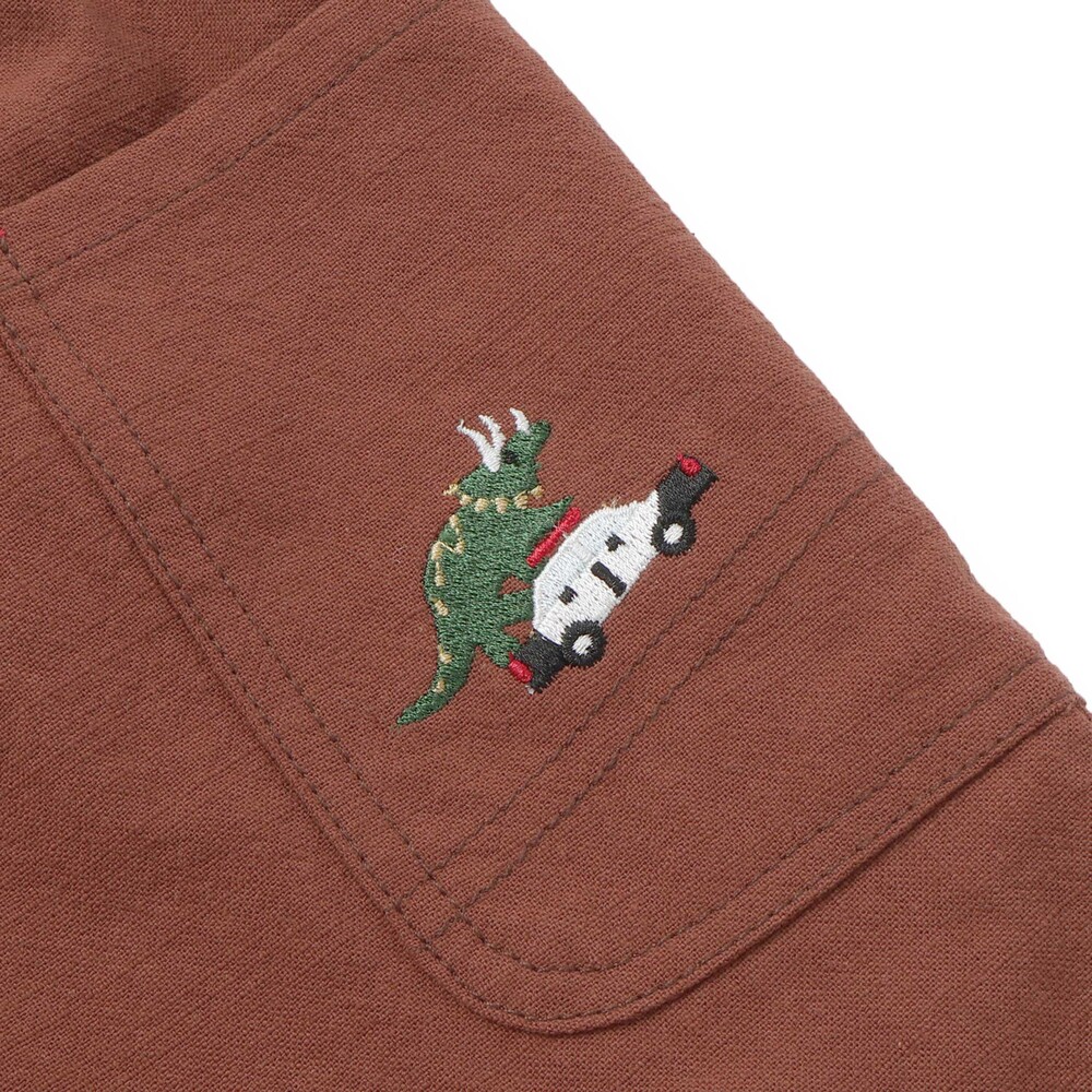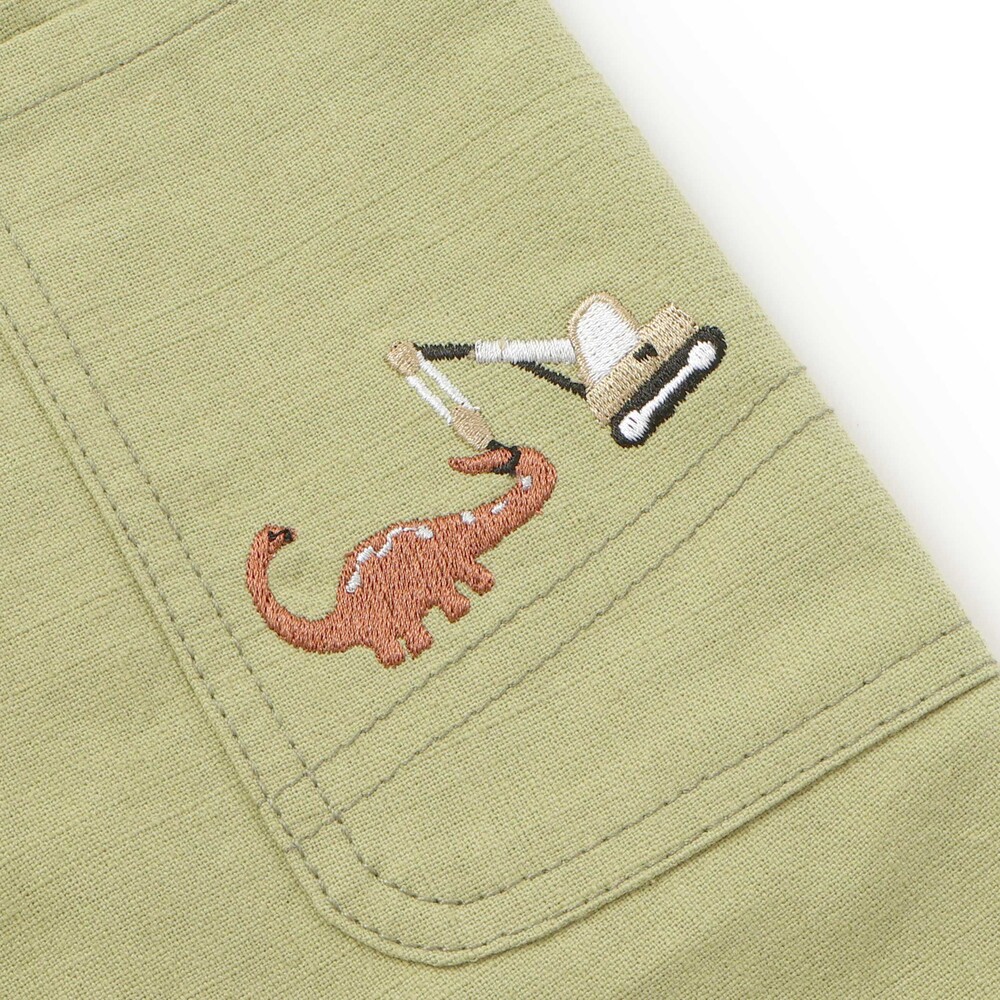 はたらくくるまと恐竜の刺しゅうがポイント!男の子用ショートパンツ。
