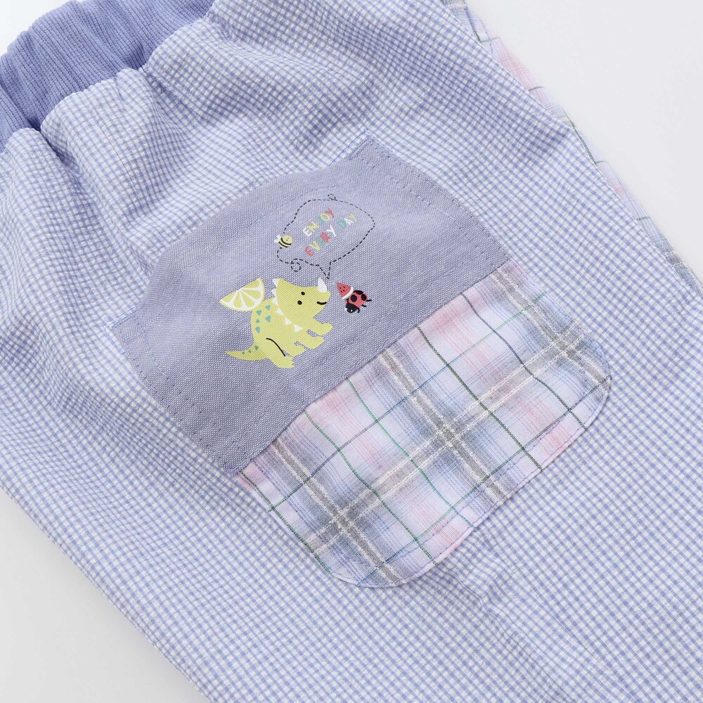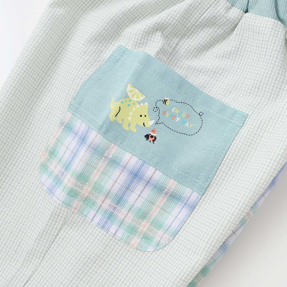 右サイドポケットには、恐竜とてんとう虫のプリントをあしらい、さりげないアクセントに。