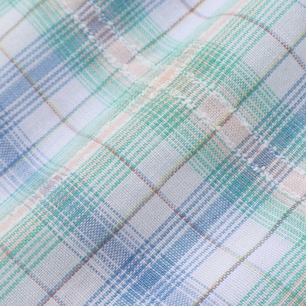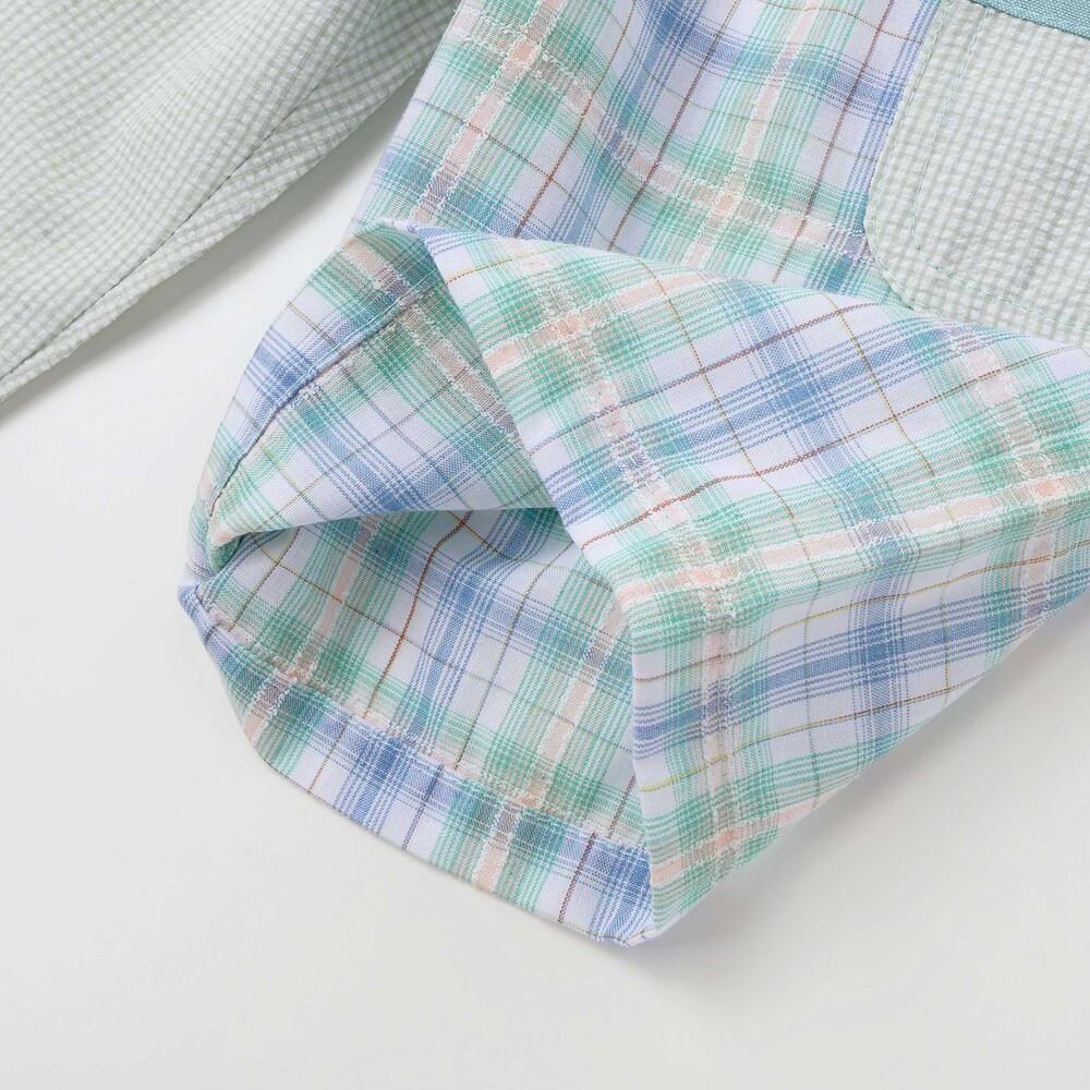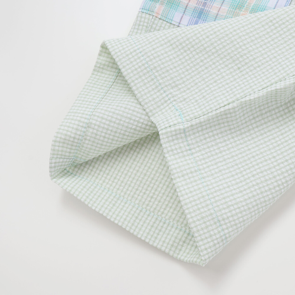 細かなチェック柄にマドラスチェックを組み合わせた切り替えデザインで、動きのある表情に仕上げました。