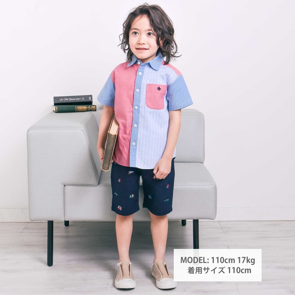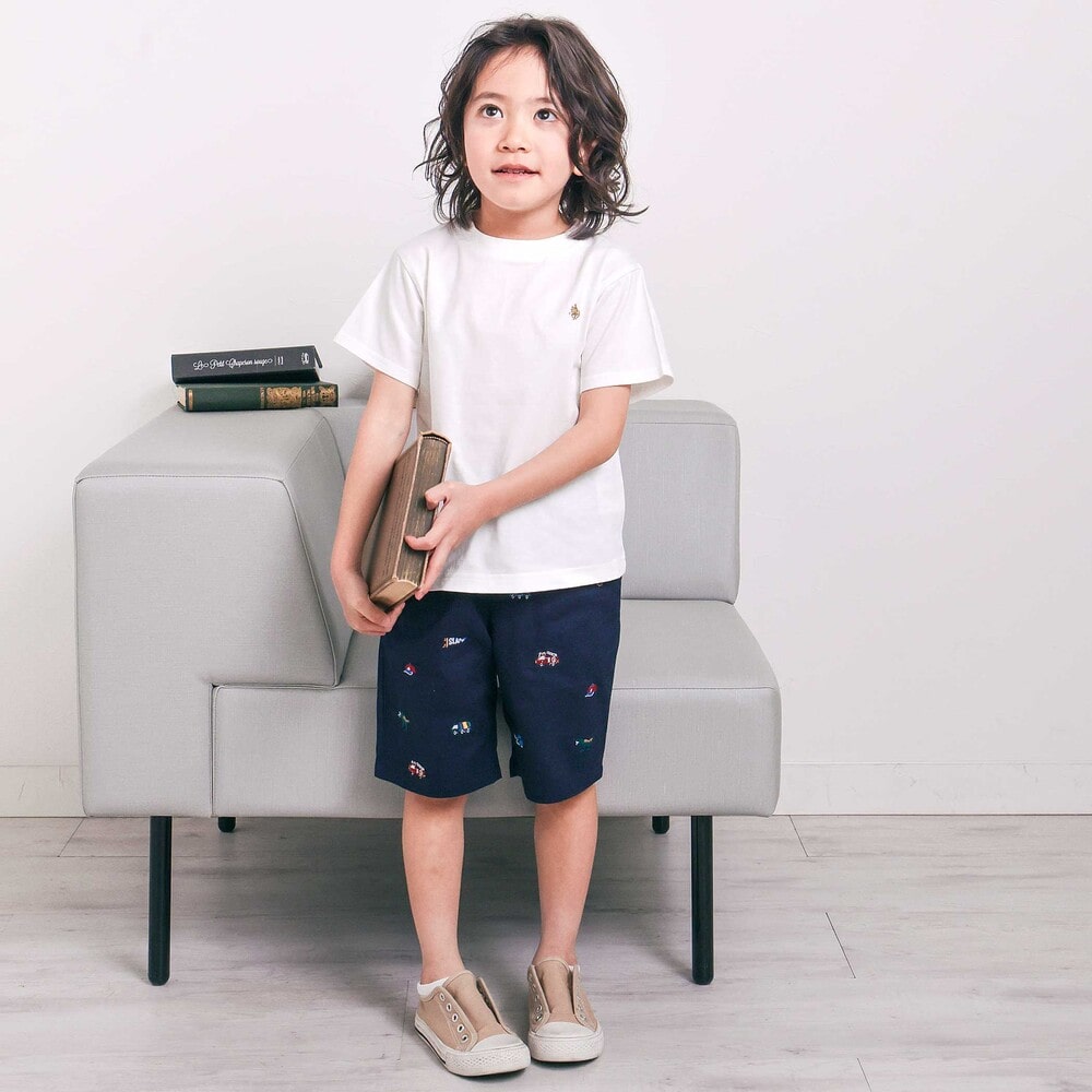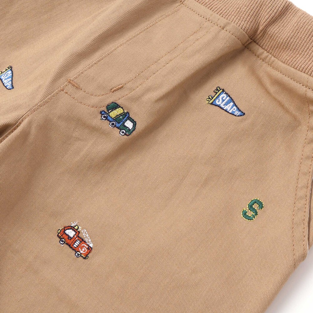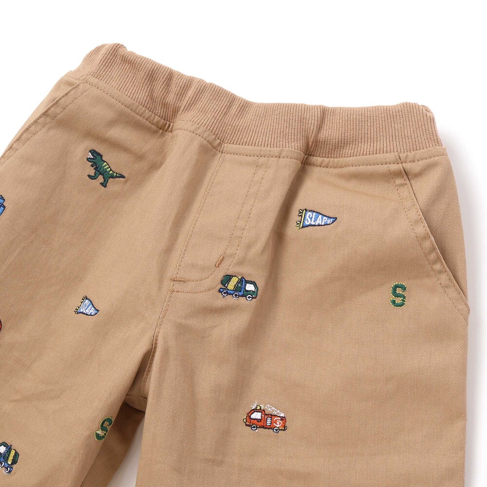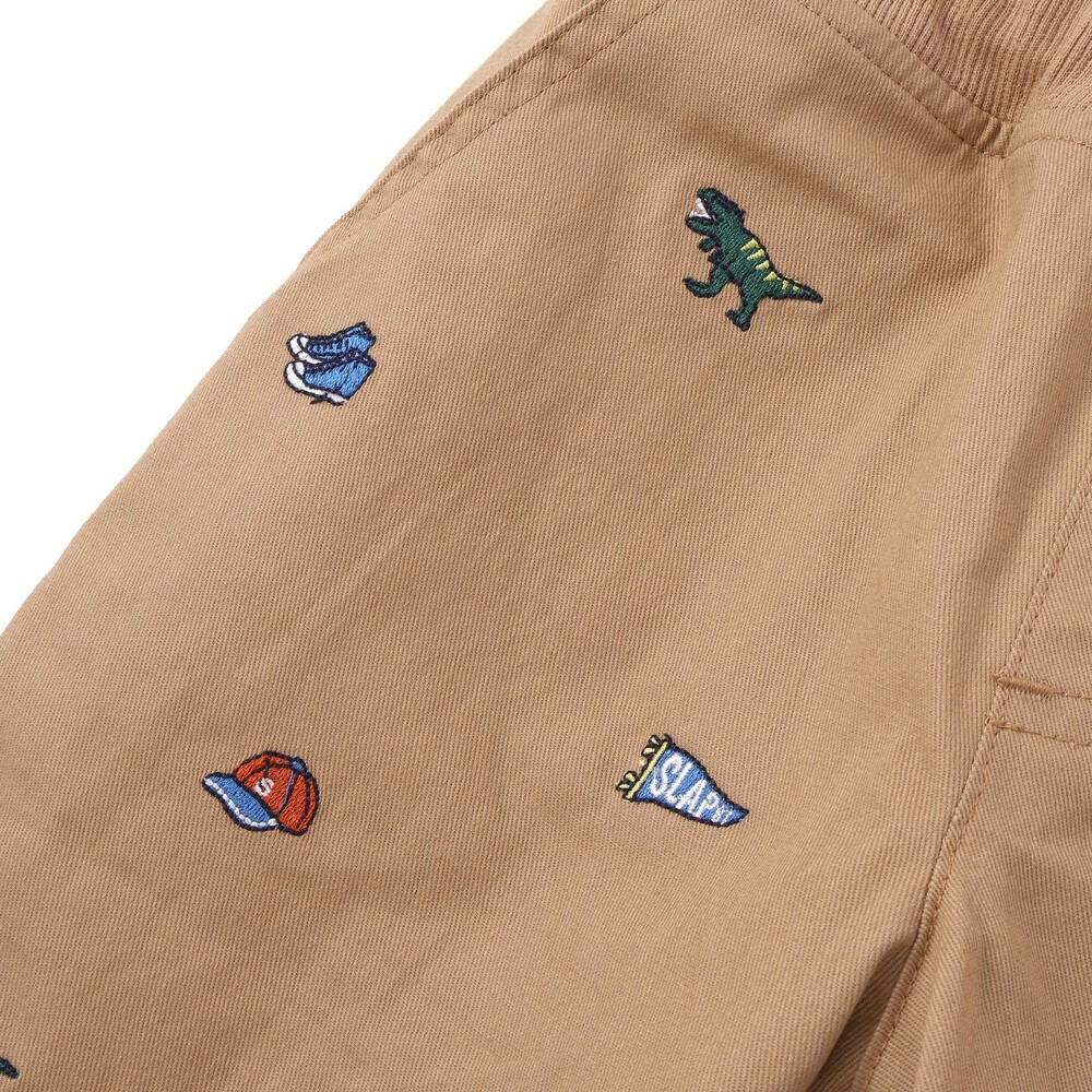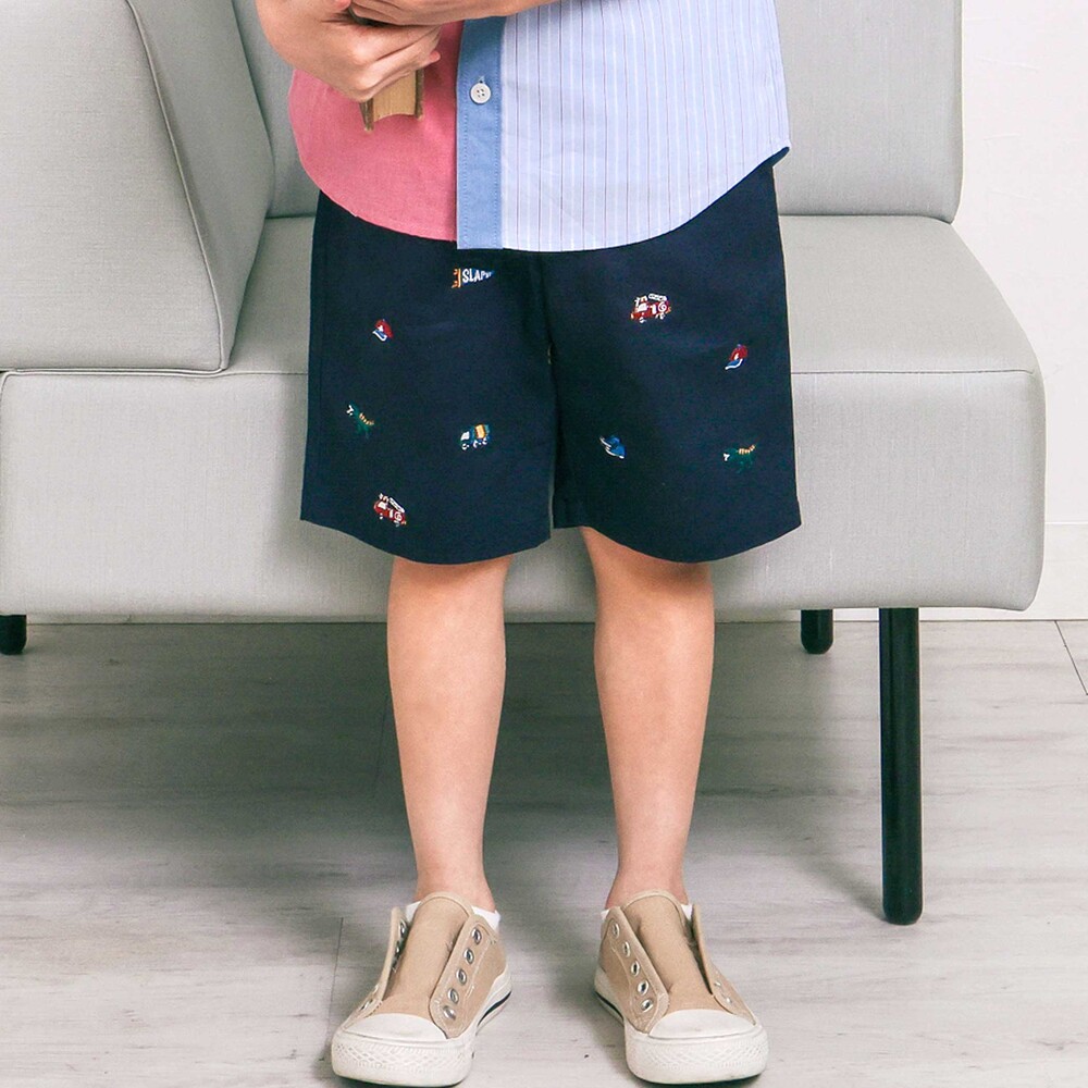 はたらくくるまや恐竜、帽子やスニーカーなど、男の子の「好き」をぎゅっと詰め込んだ刺しゅうが散りばめられたショートパンツ。