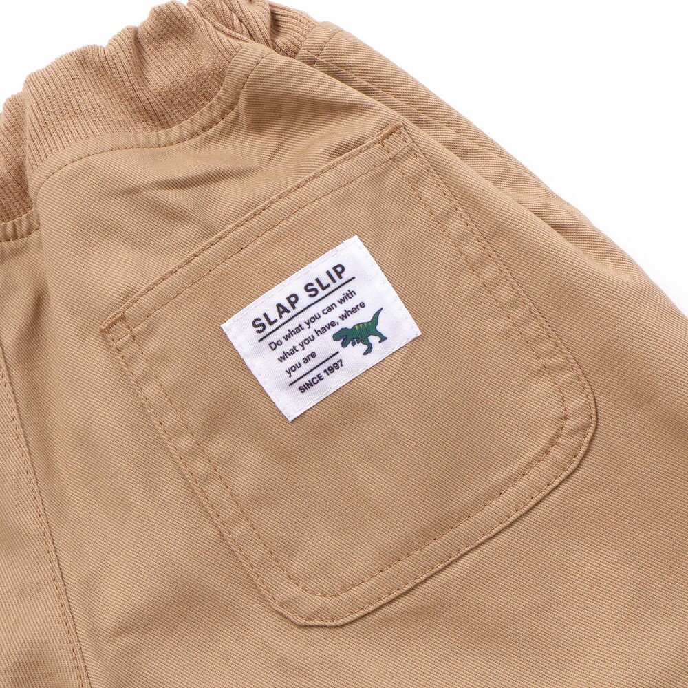 後ろポケットには、さりげなく恐竜モチーフの織りネームタグをプラス。
