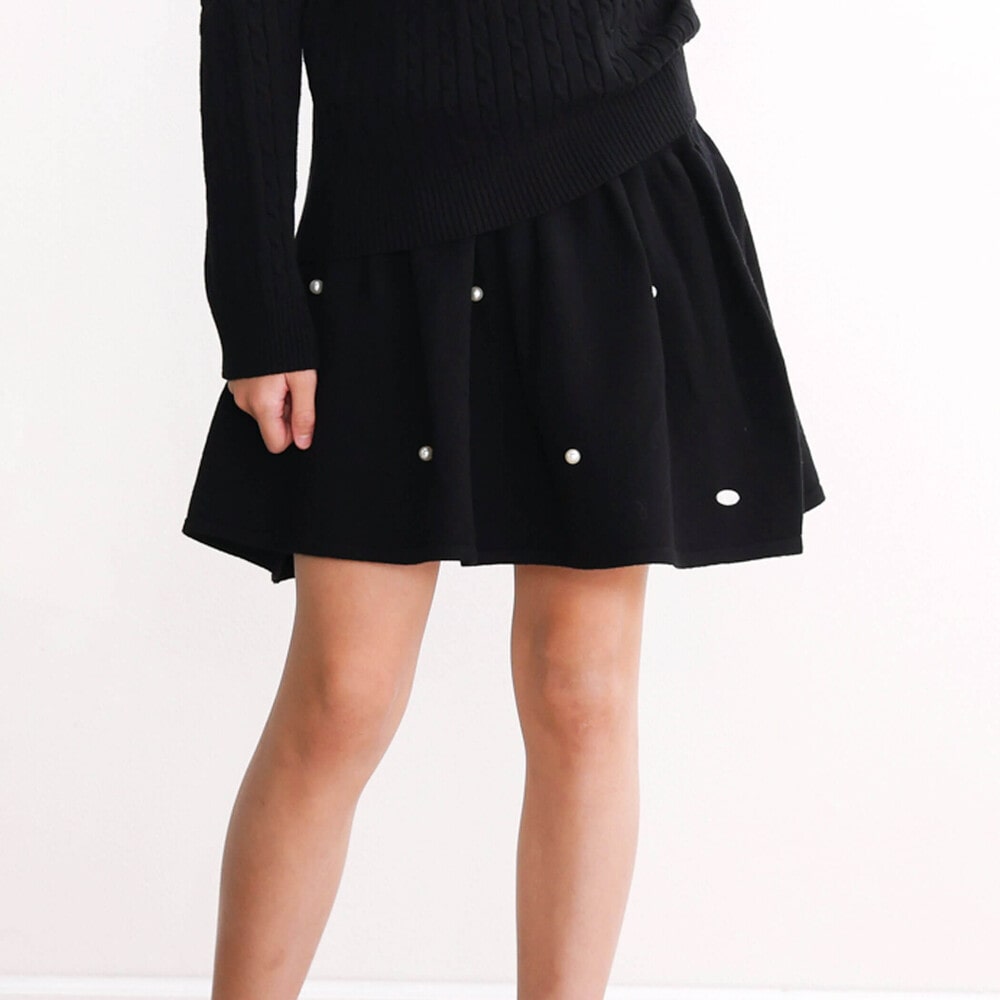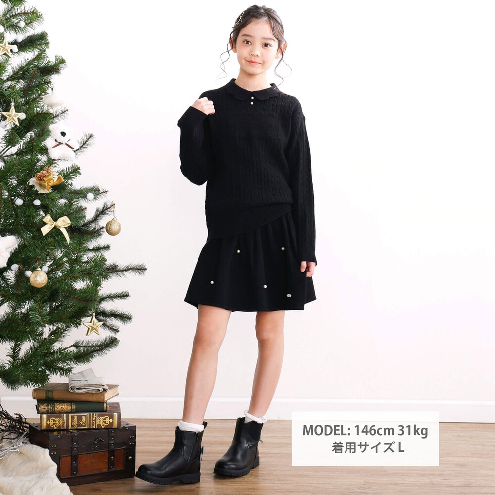 パール風ビーズ付きフレアニットスカート(75~155cm)