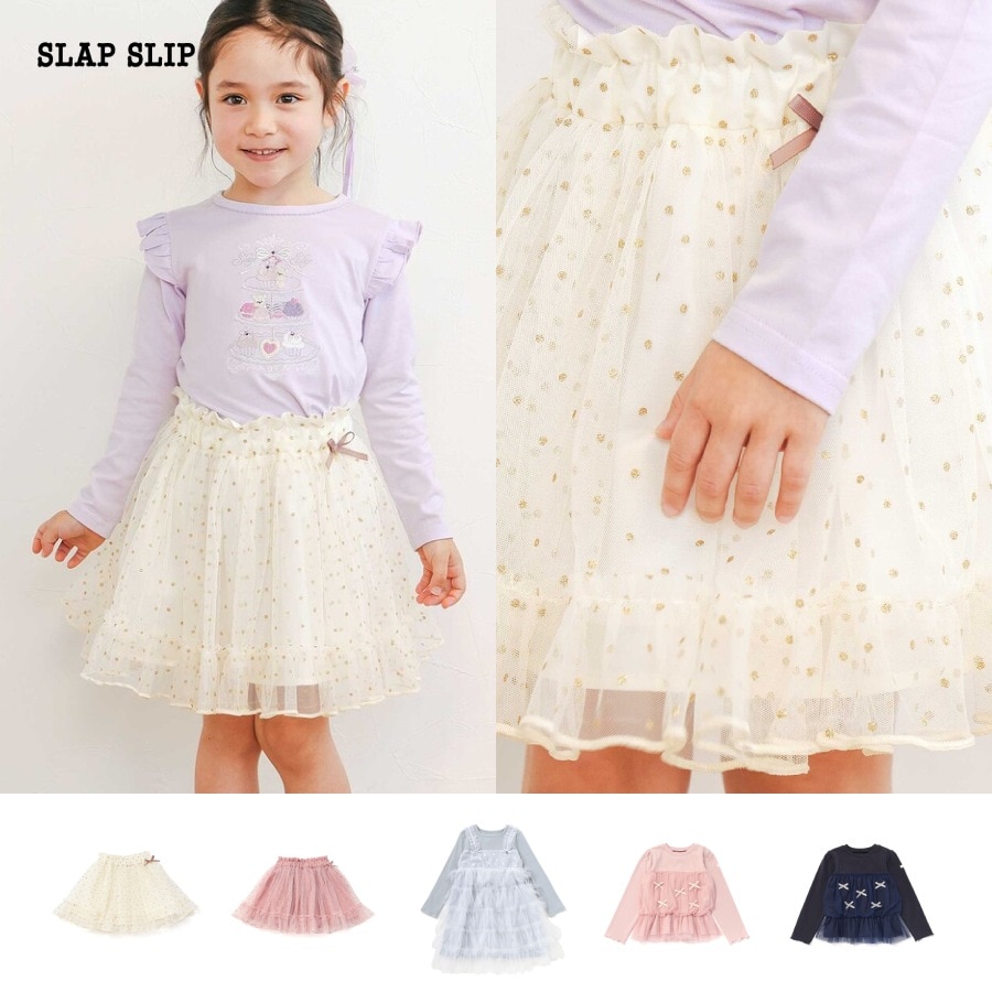 キラキラのラメを使用したドット柄がパッと目を引く女の子用スカート。