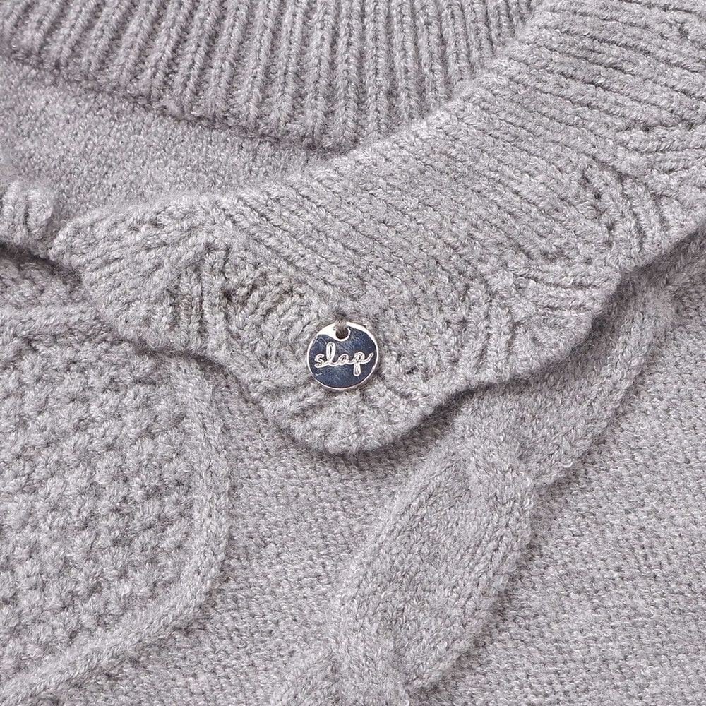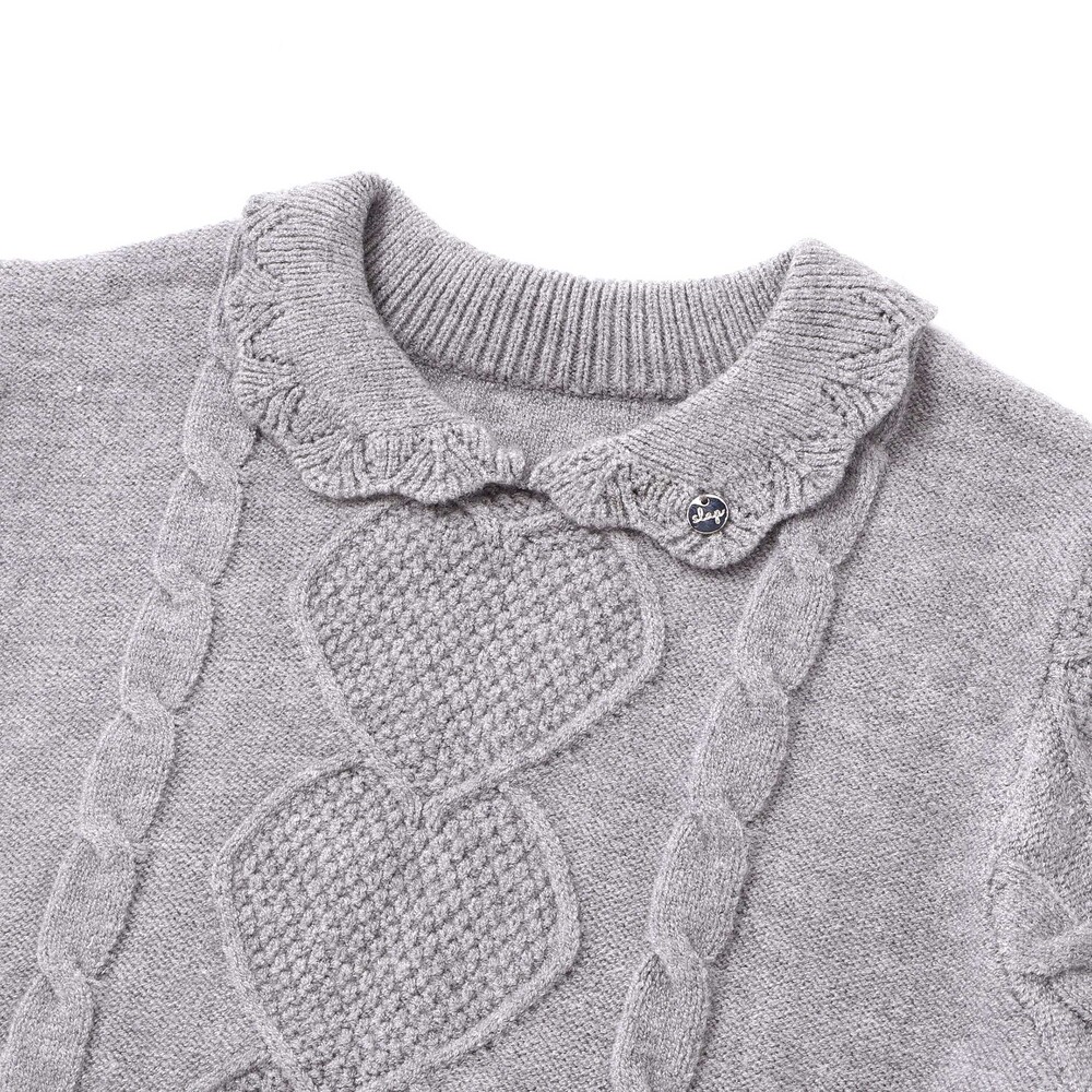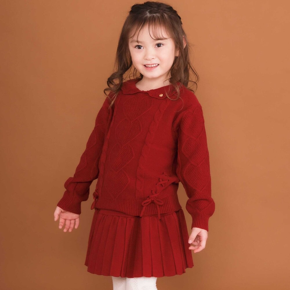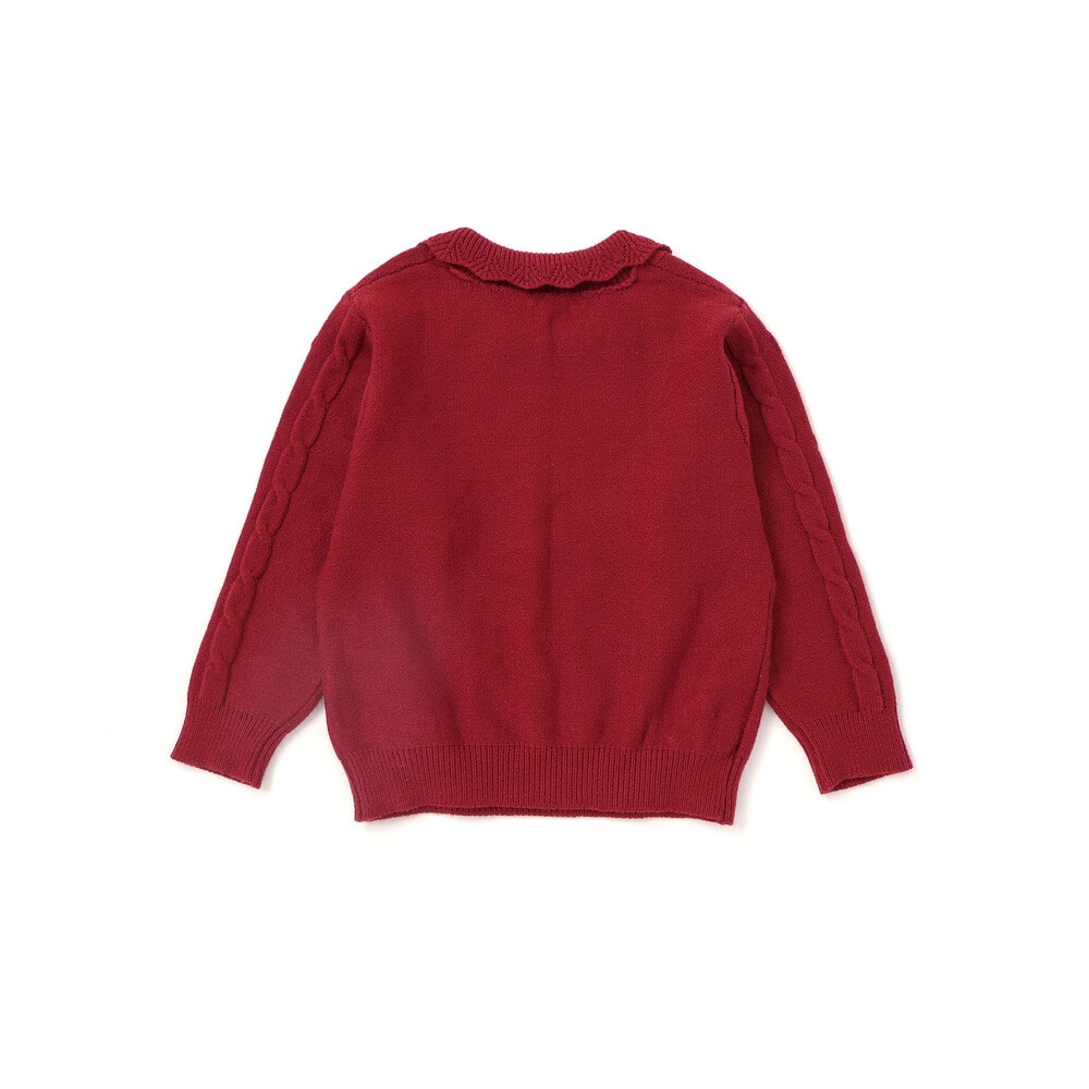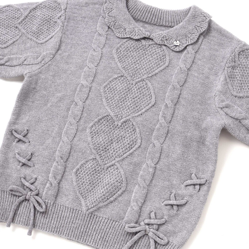 女の子らしいデザインを詰め込んだ襟付きの長袖ニットトップス。