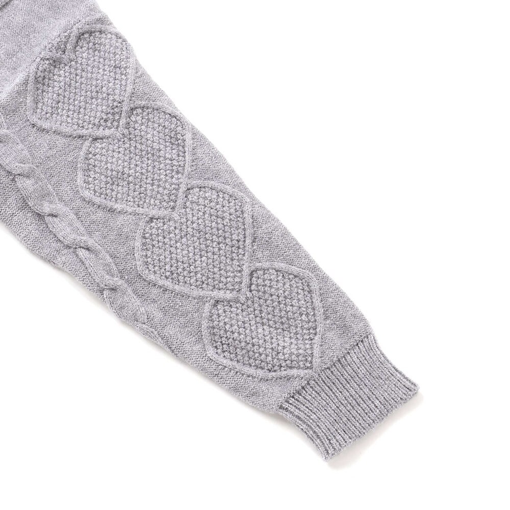 縦に並んだハート模様、ケーブル編み、編み込み…華やかでかわいらしいデザインをフロントにオン!